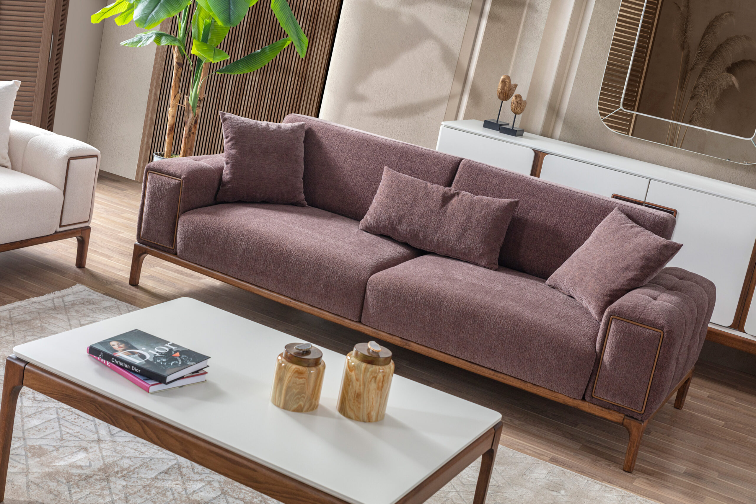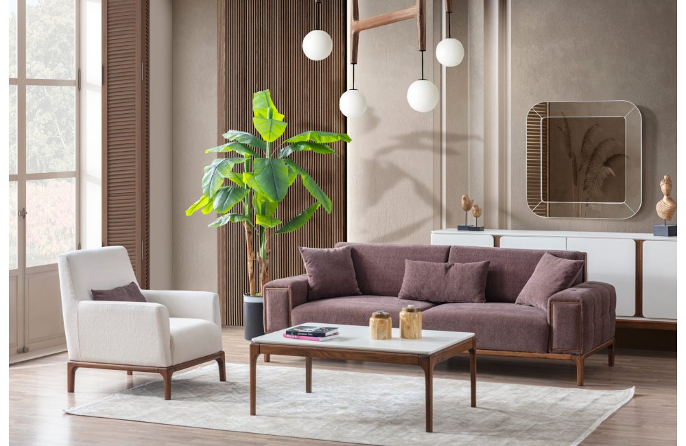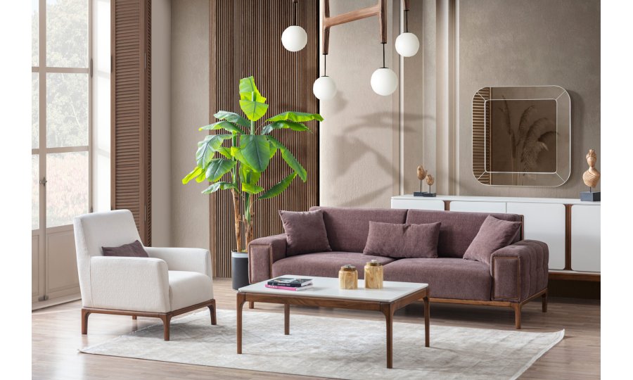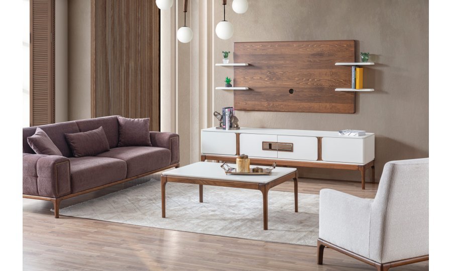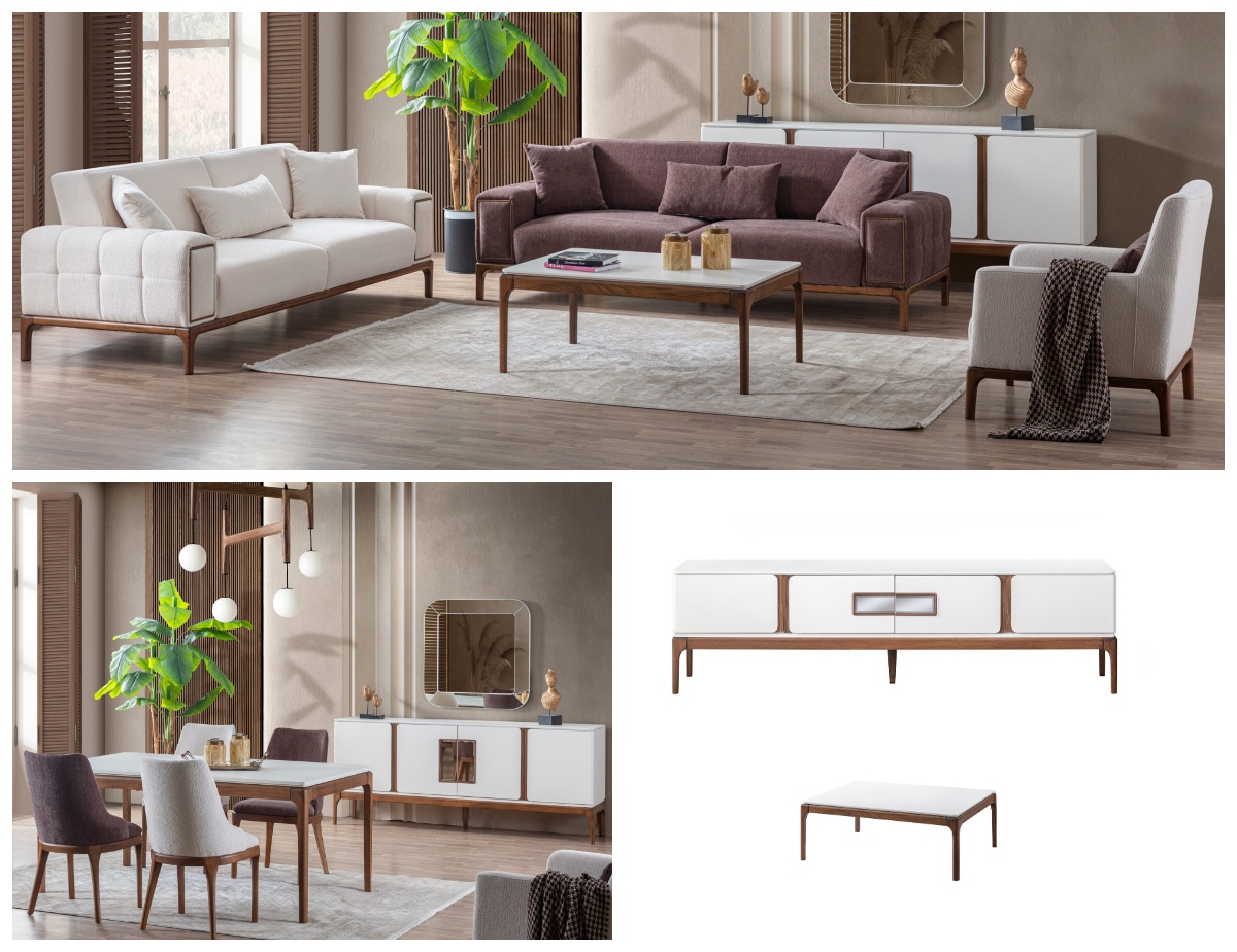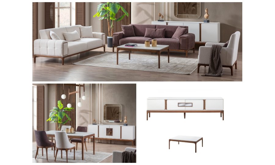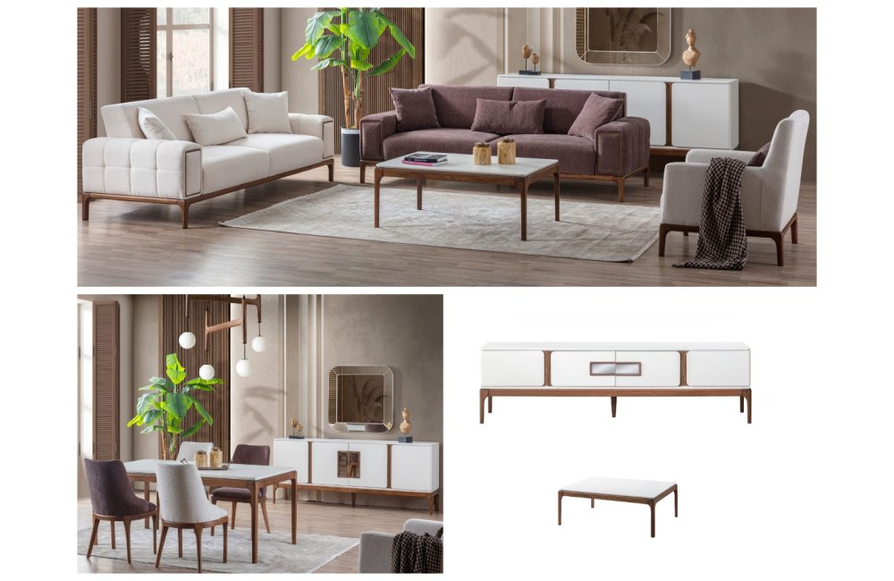 Koltuk Takımı(3+3+1), Yemek Odası(Konsol+ayna+masa+6ad.sandalye), Tv Sehpası ve Orta Sehpadan oluşmaktadır.