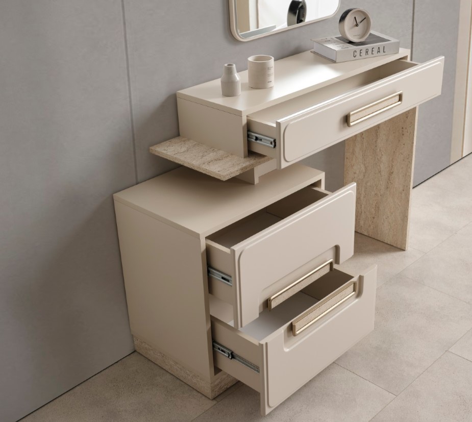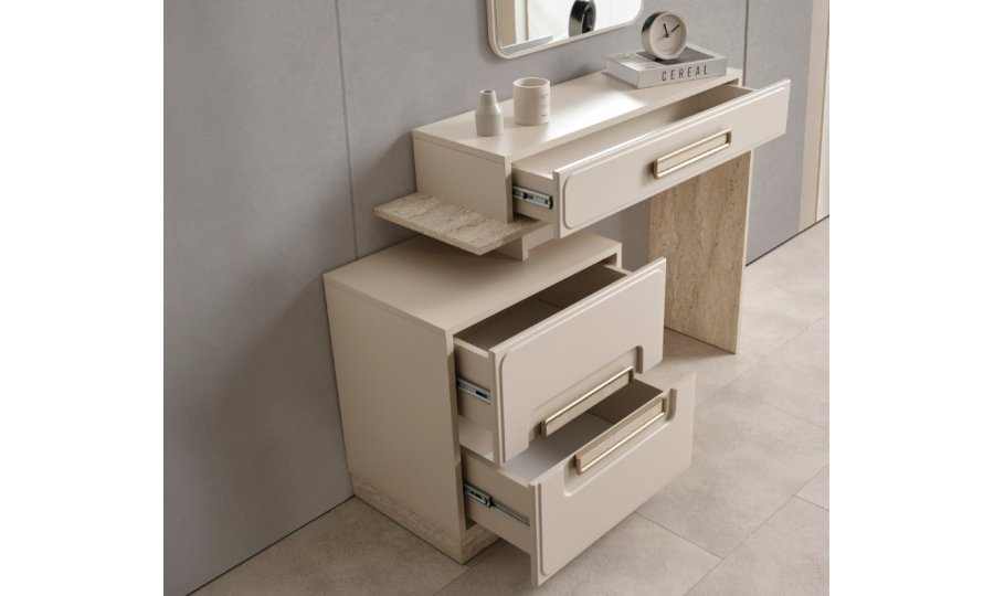 • Şifonyeri makyaj masası şeklinde tasarlanmıştır.