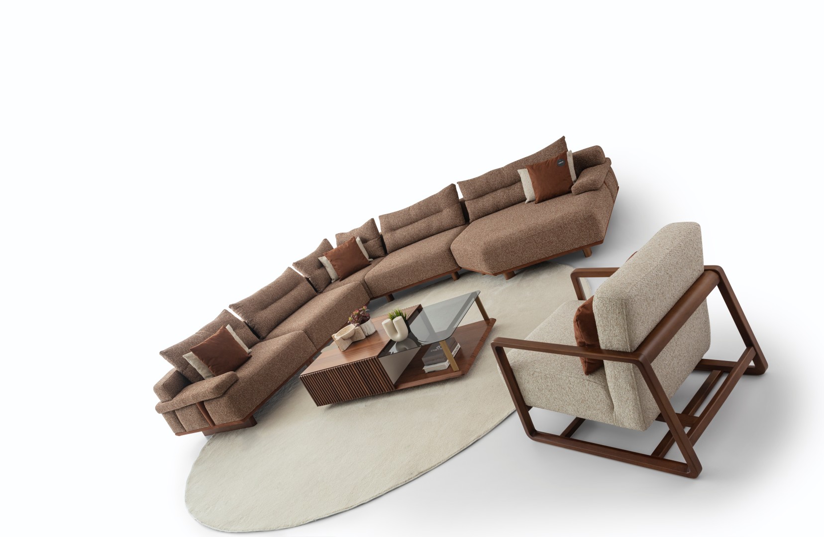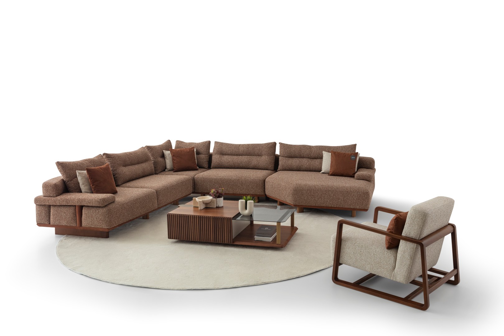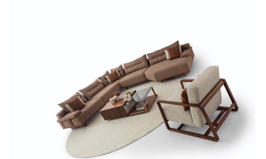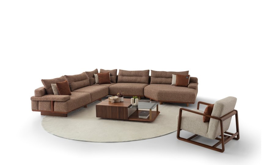 1 Ad. 3'lü Kollu Modül, 1 Ad. Köşe Modül, 1 Ad. Tekli Kolsuz Modül ve 1 Ad. Relax Modülden oluşmaktadır.