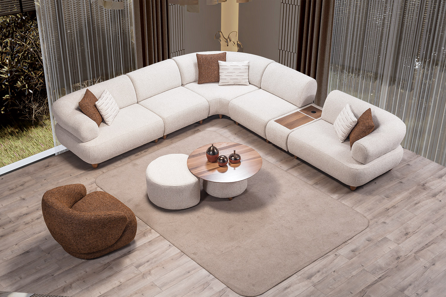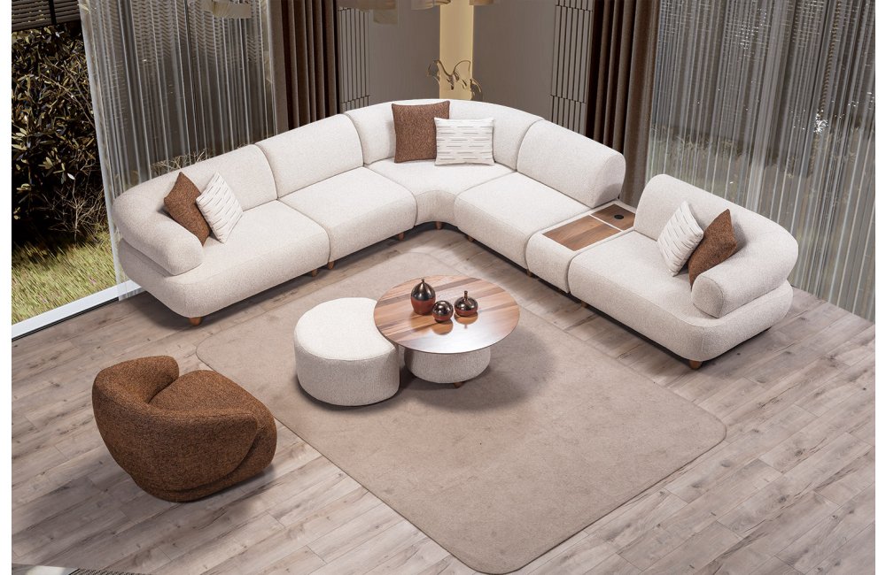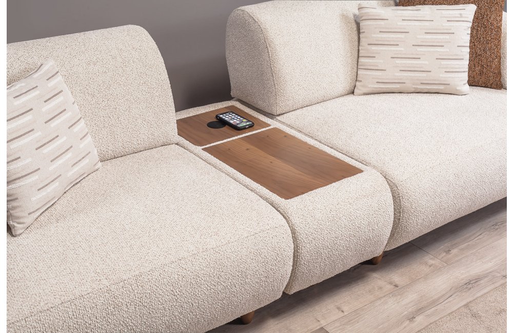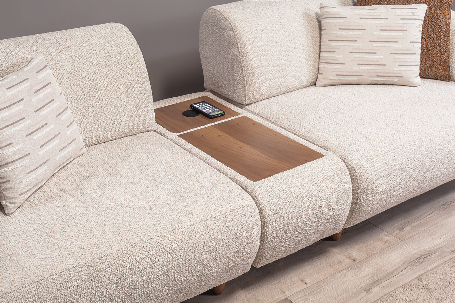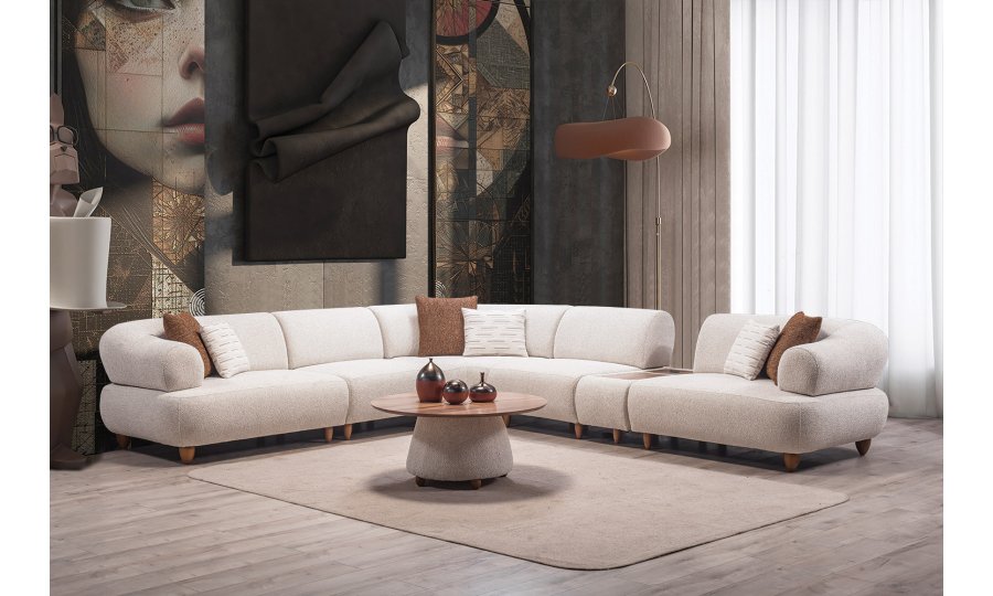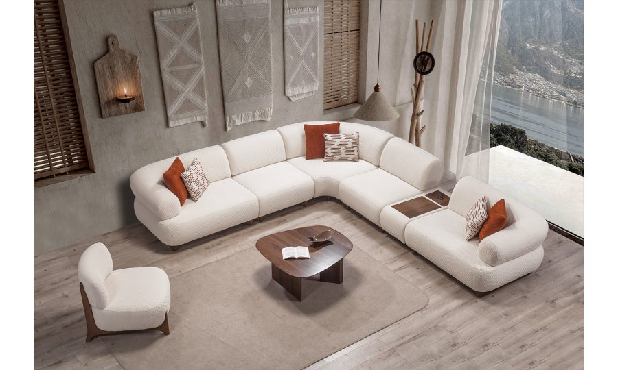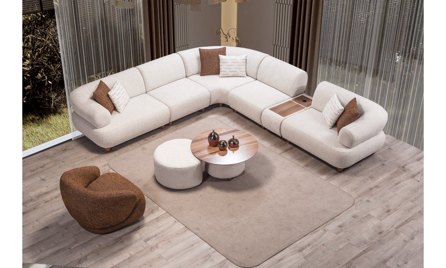 2ad. kollu modül, 1ad. köşe modül, 2ad. ara piyon, 1ad. ara sehpadan oluşmaktadır. Diğer parçalar opsiyonel satılmaktadır.