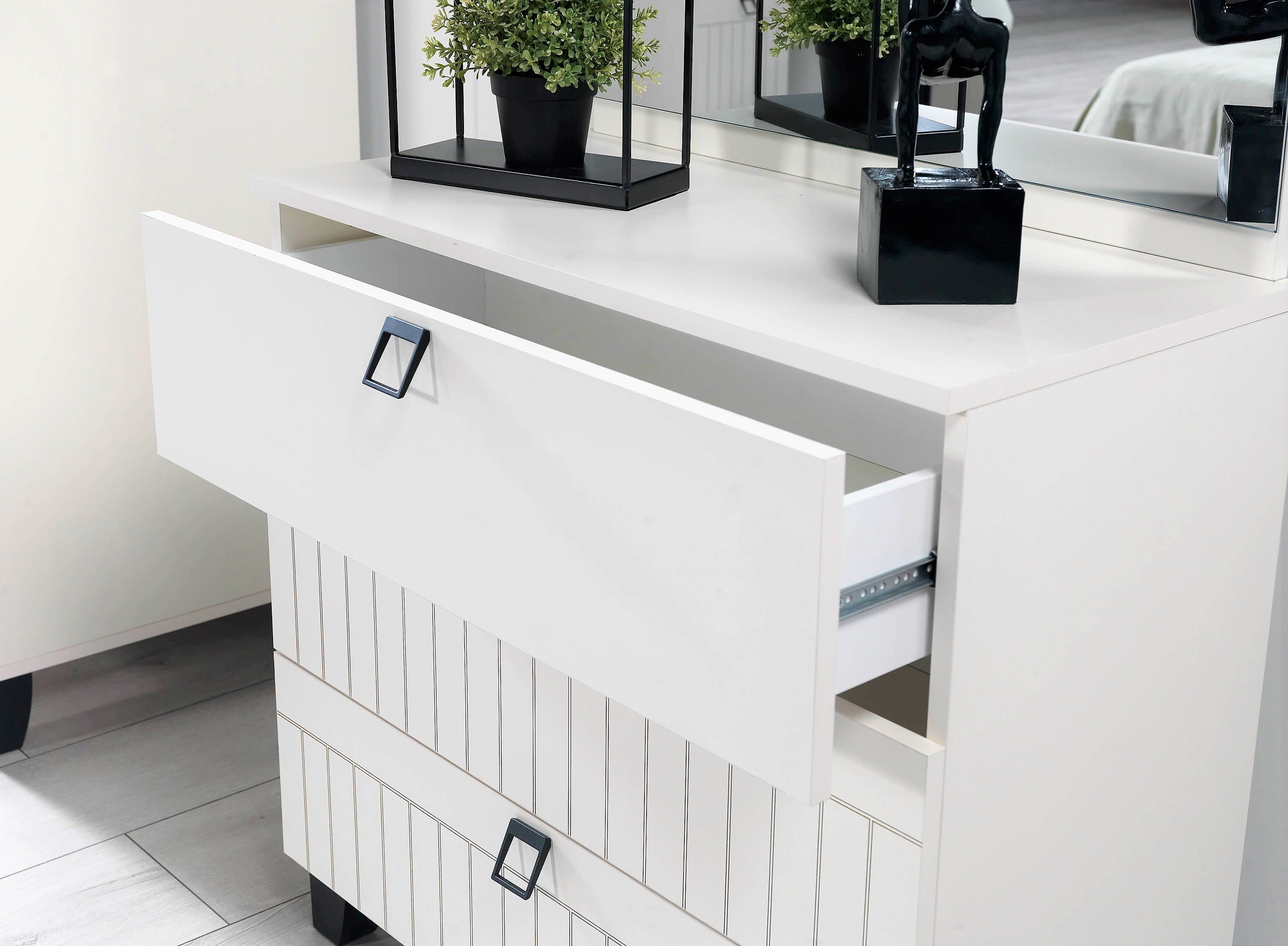 1ad.3 kapılı dolap,1ad.100X200 karyola, 1ad.100 lük başlık ve 1ad.komodinden oluşmaktadır. 2 kapılı dolap, 4 kapılı dolap, sürgülü dolap, çalışma masası, şifonyer, şifonyer aynası opsiyonel olarak satışa sunulmuş parçalardır.