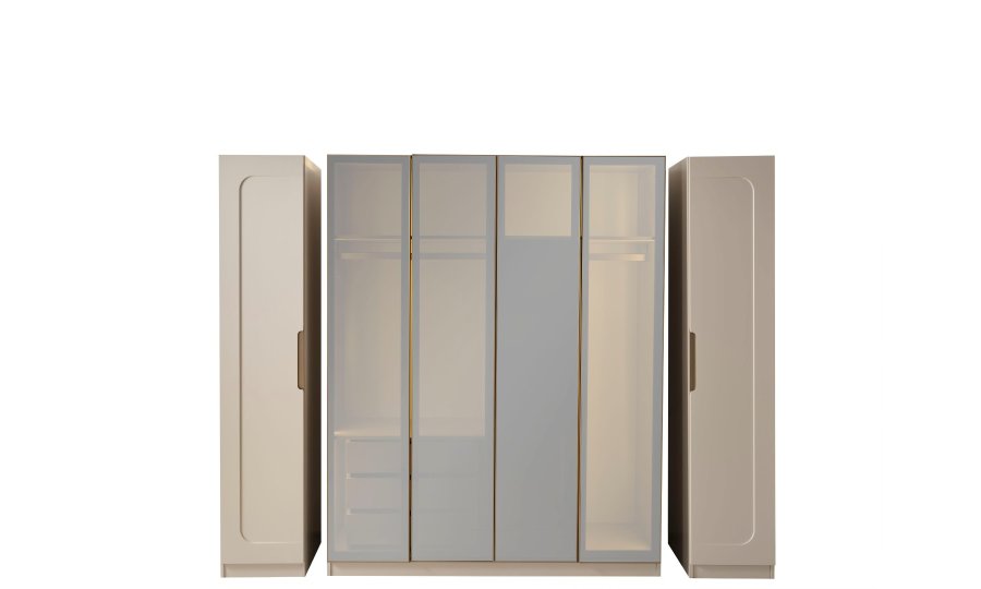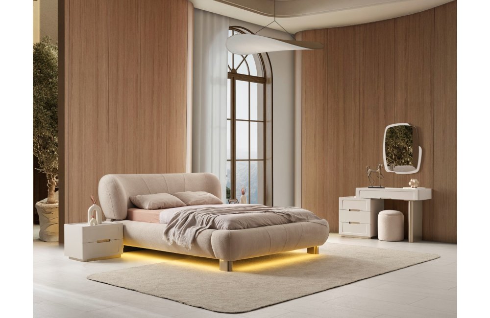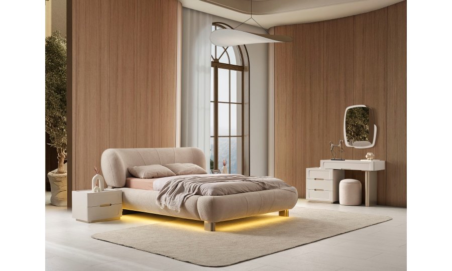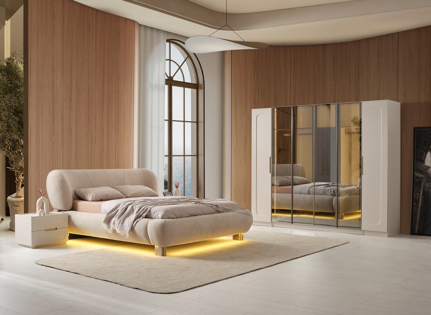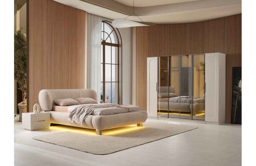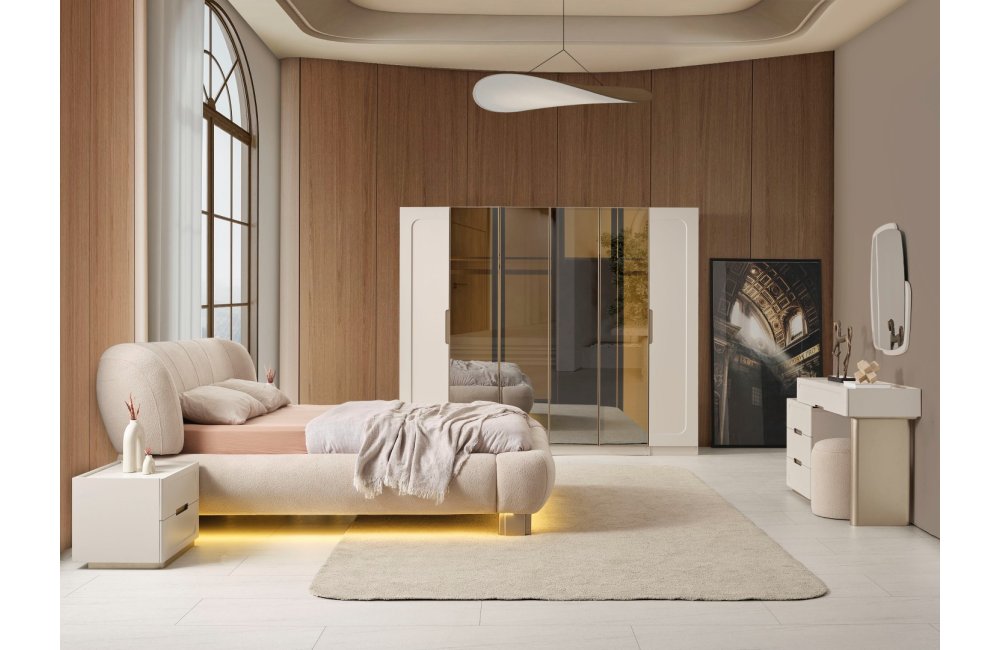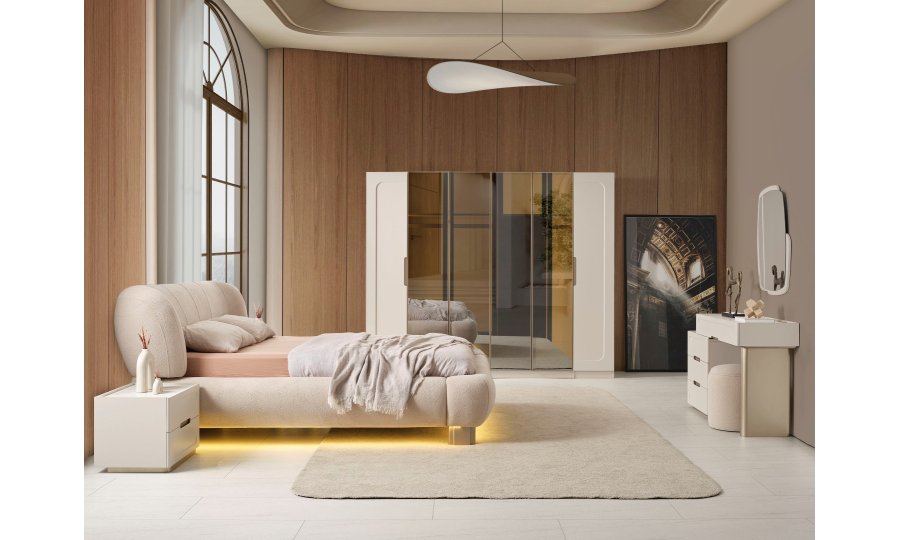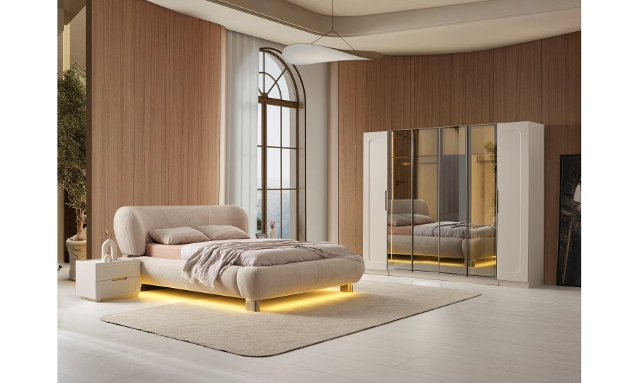 1 ad. dolap (4 cam kapak+1+1 ahşap kapak), 1 ad. bazalı karyola, 1 ad. şifonyer, 1 ad. şifonyer aynası ve 2 ad. komodinden oluşmaktadır.