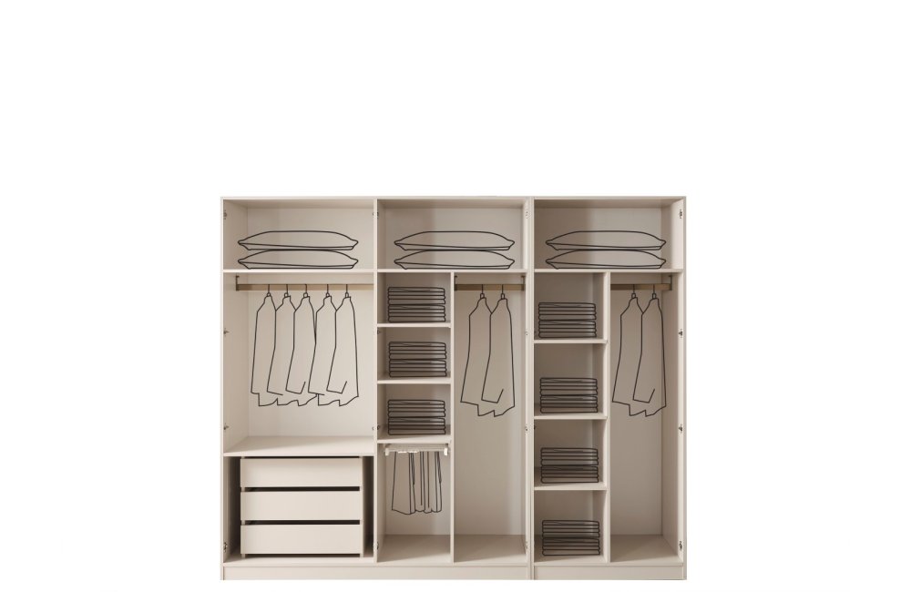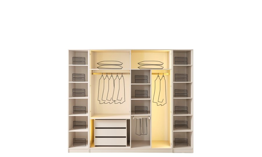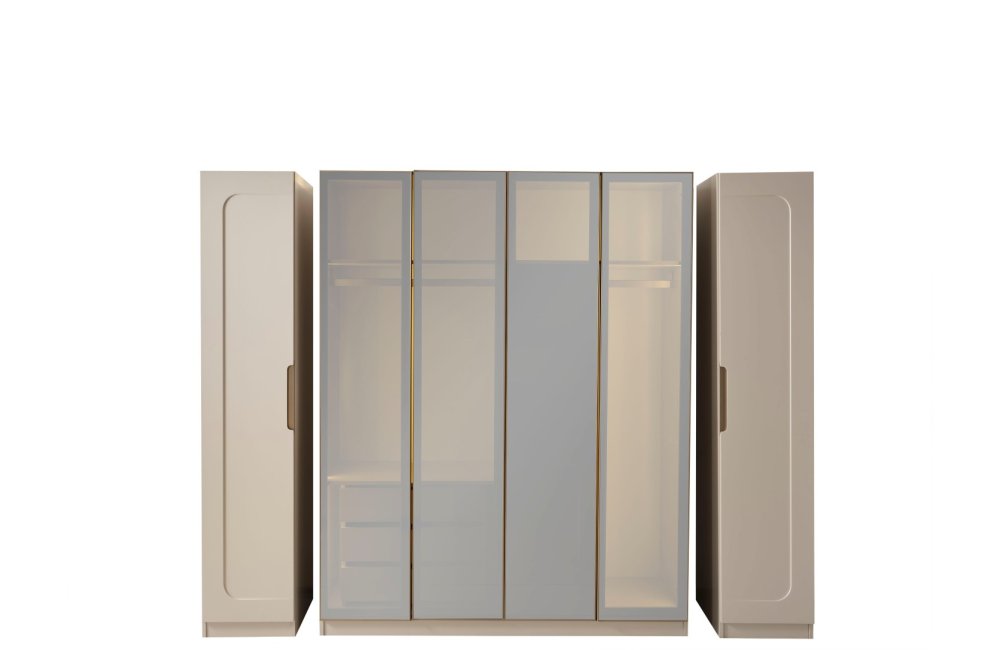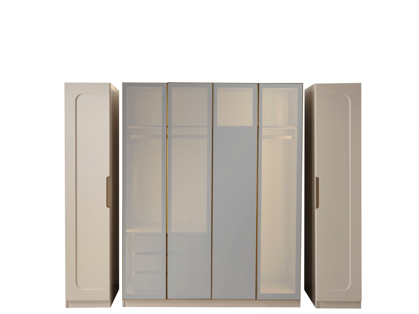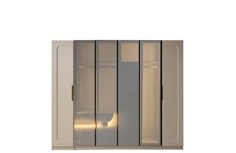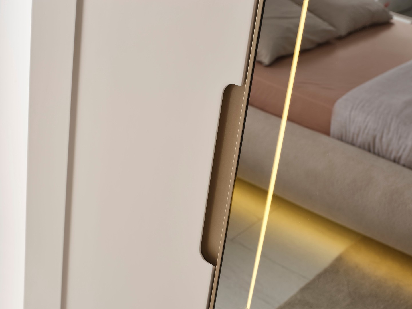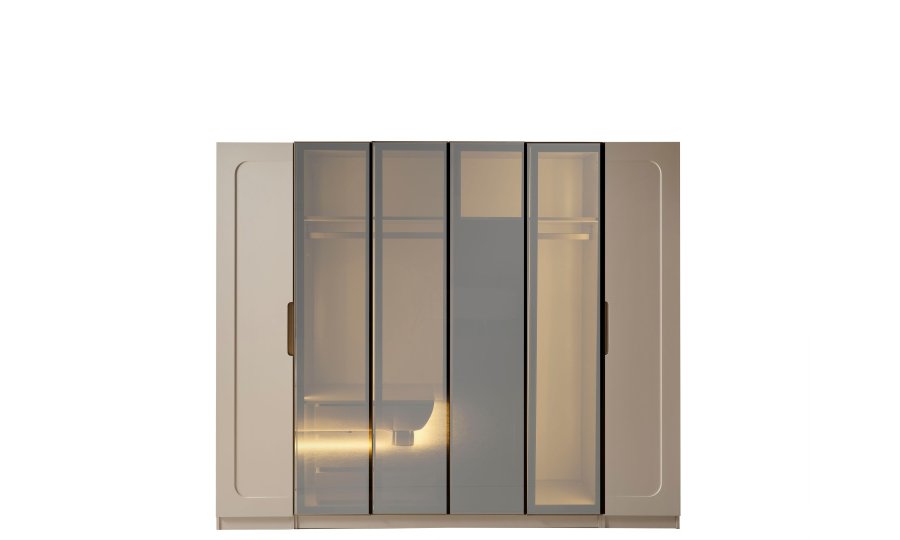 1 ad. dolap (4 cam kapak+1+1 ahşap kapak), 1 ad. bazalı karyola, 1 ad. şifonyer, 1 ad. şifonyer aynası ve 2 ad. komodinden oluşmaktadır.