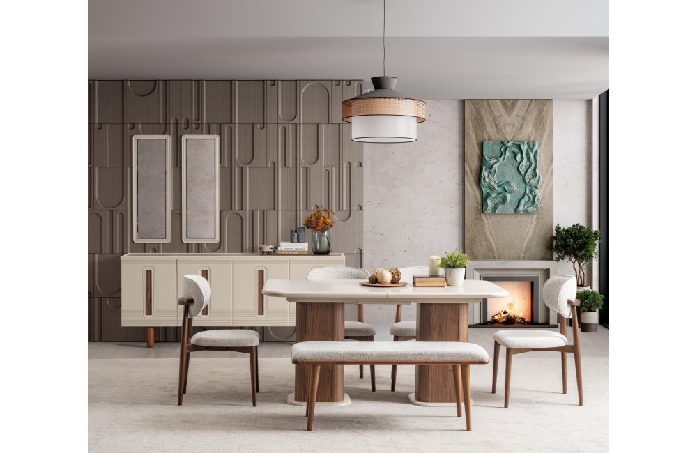 1ad.konsol,2ad.konsol aynası, 1ad masa, 4ad.sandalye ve 1ad bençten oluşmaktadır.