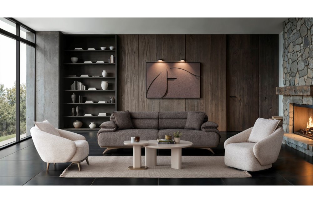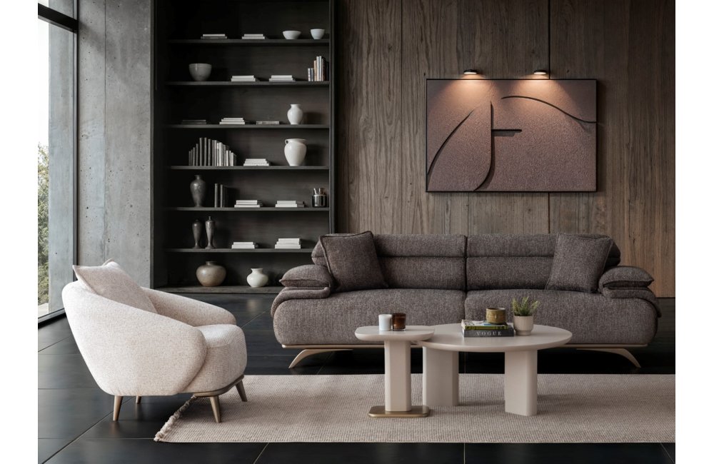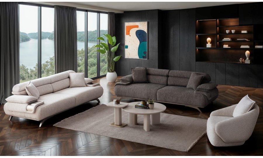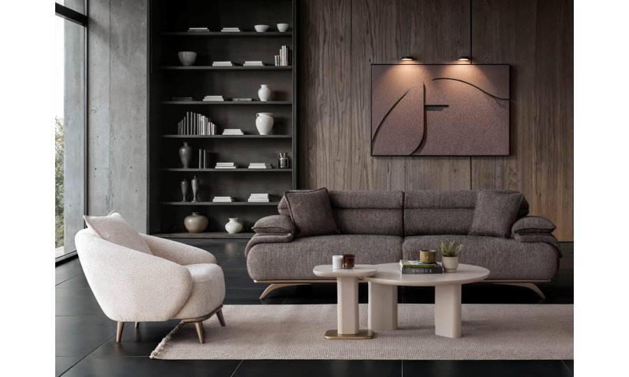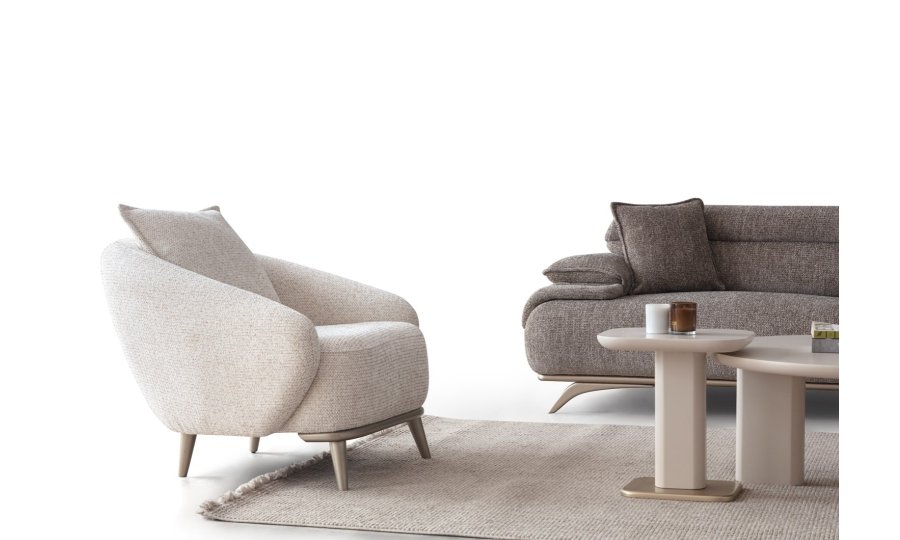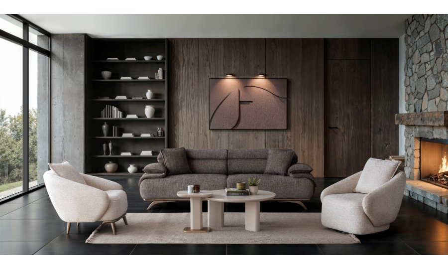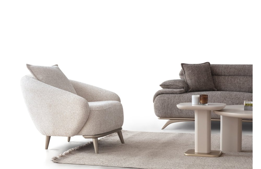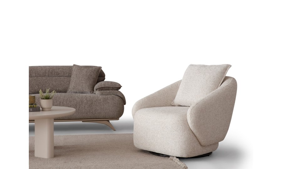 2ad. üçlü koltuk ve 1ad. döner berjerden oluşmaktadır. Ayaklı berjer opsiyonel satılmaktadır.