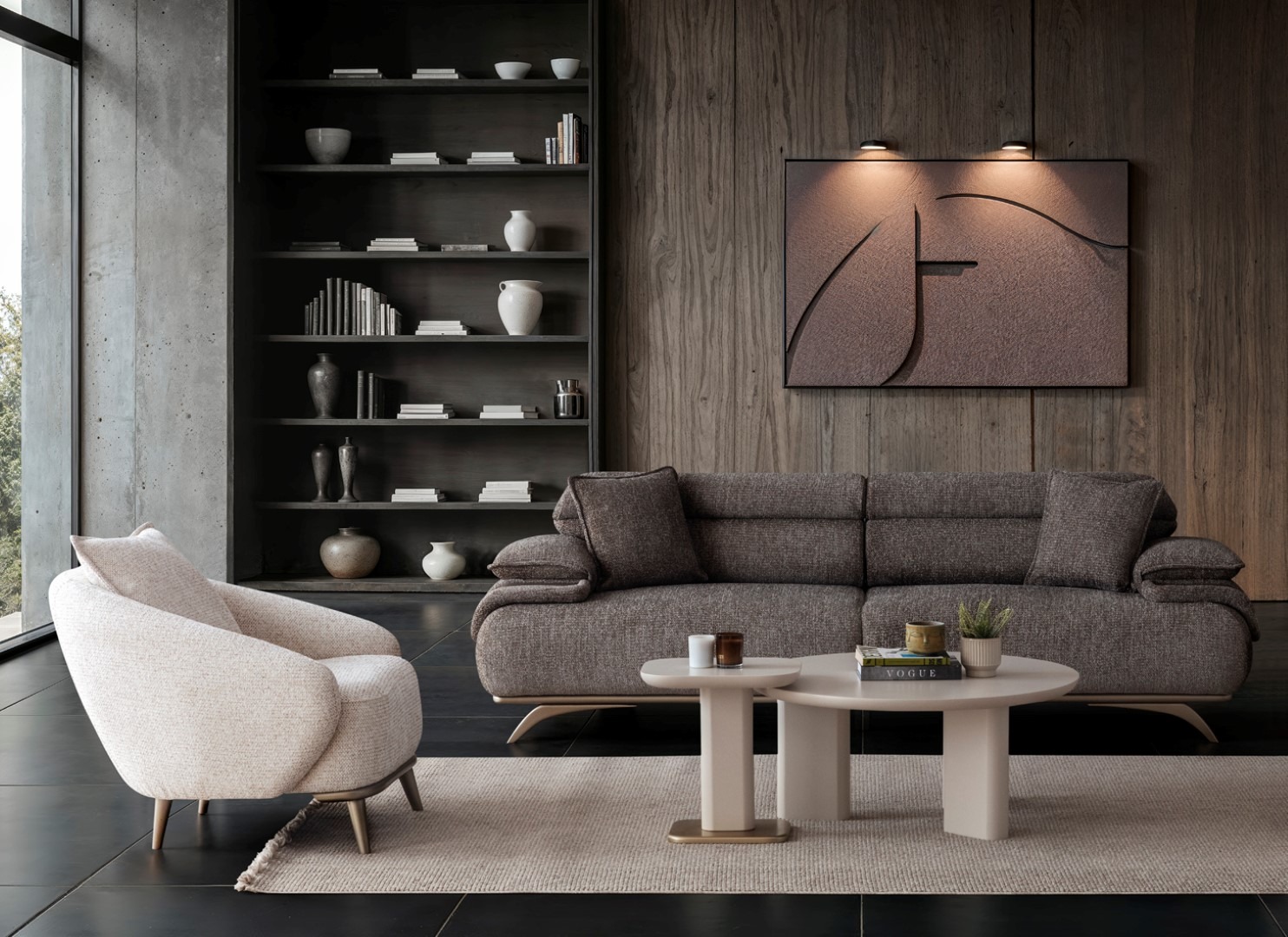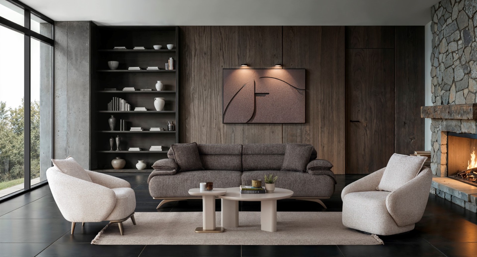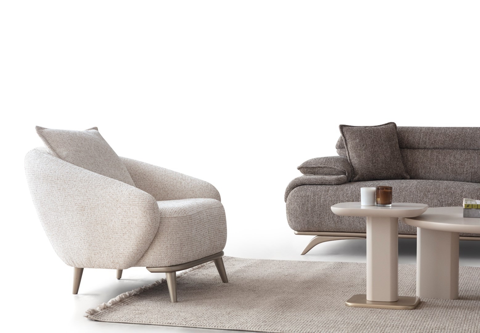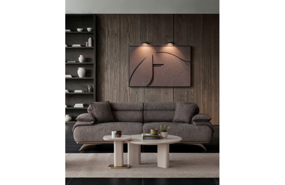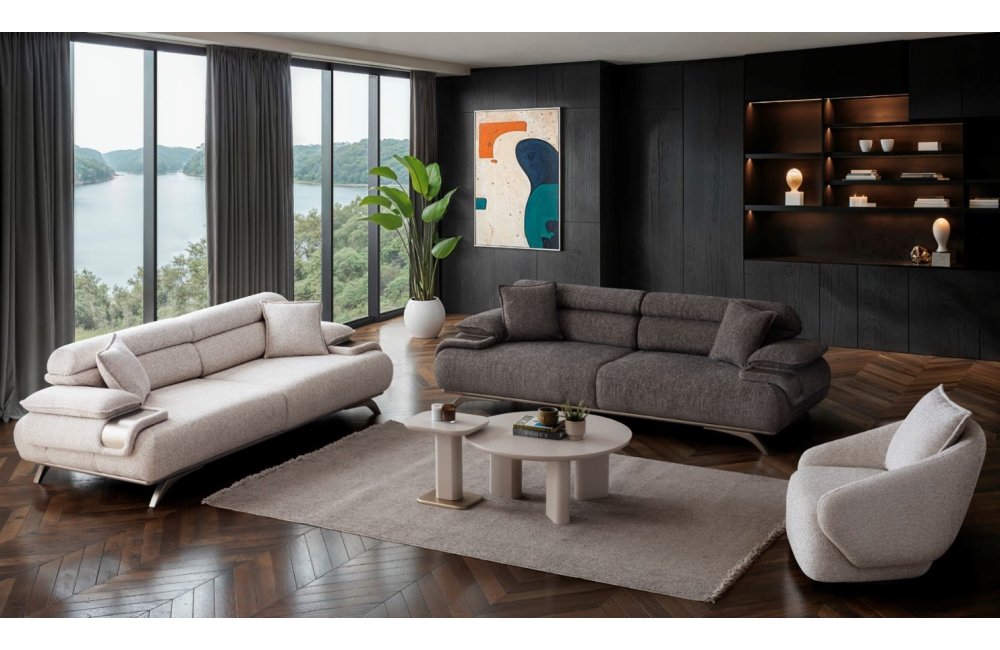 2ad. üçlü koltuk ve 1ad. döner berjerden oluşmaktadır. Ayaklı berjer opsiyonel satılmaktadır.