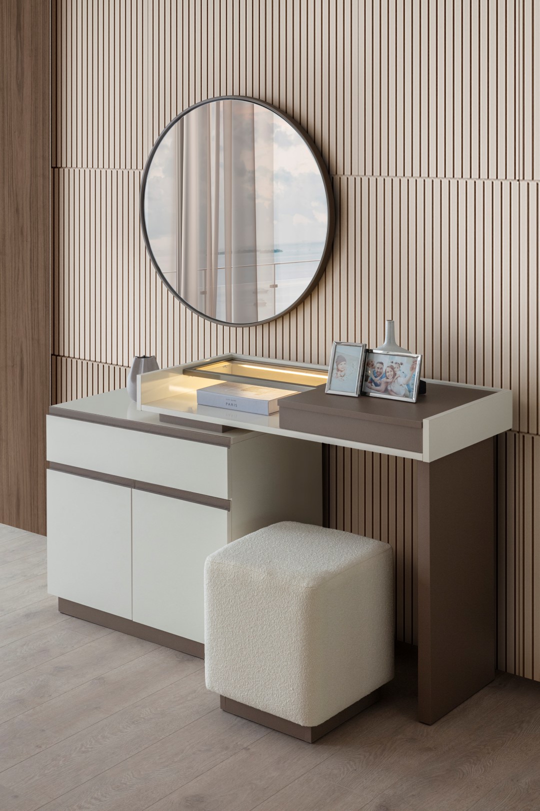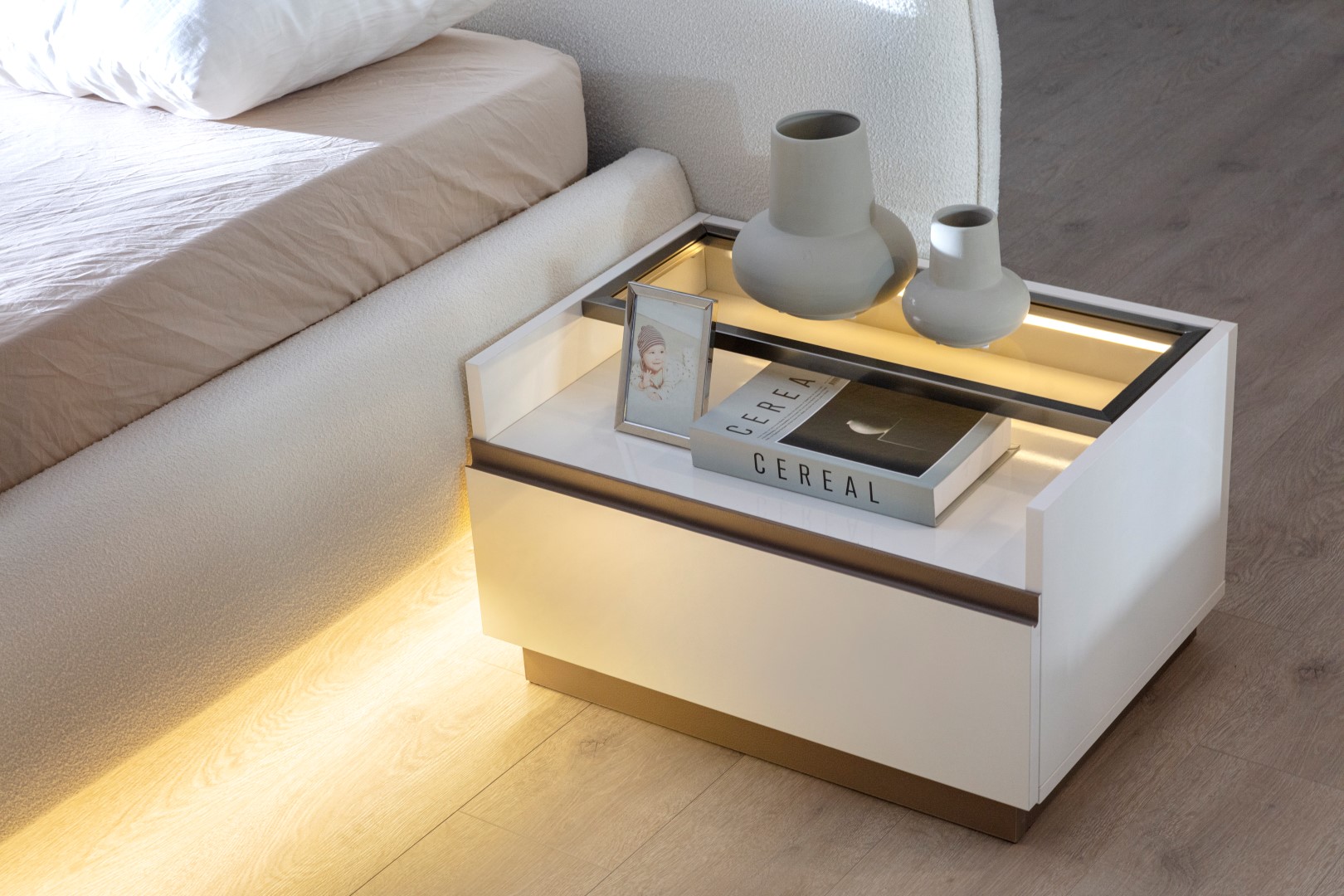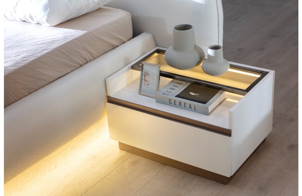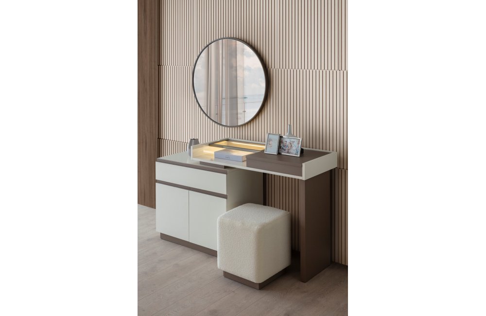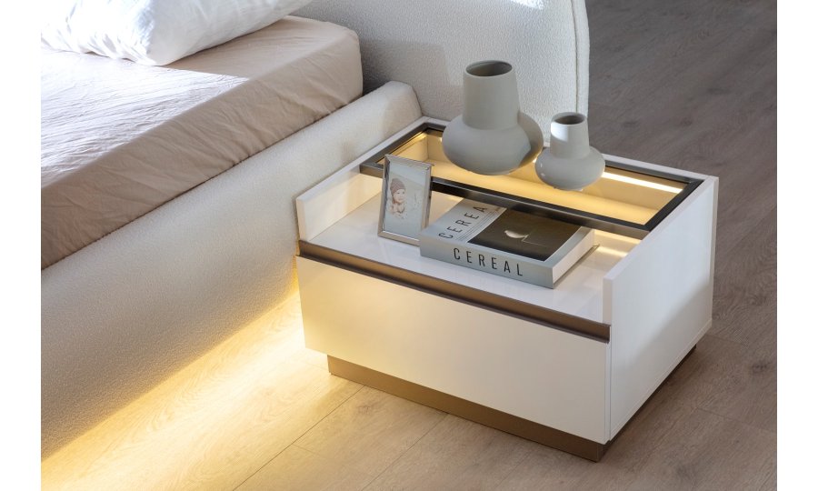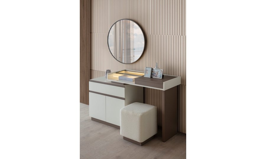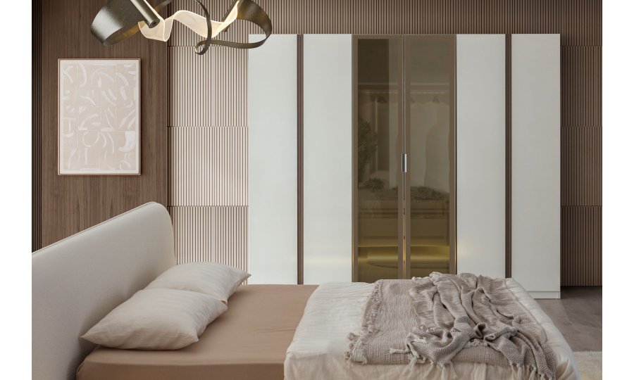 Dolap(2li Çekmeceli Modül, 2li Pantolonluklu Modül, 2li Raflı-Pantolonluklu Modül), bellat Karyola, 2 ad. komodin, şifonyer ve aynasından oluşmaktadır. Baza sistemi, çamaşırlık, ada şifonyer, puf opsiyonel satılmaktadır.