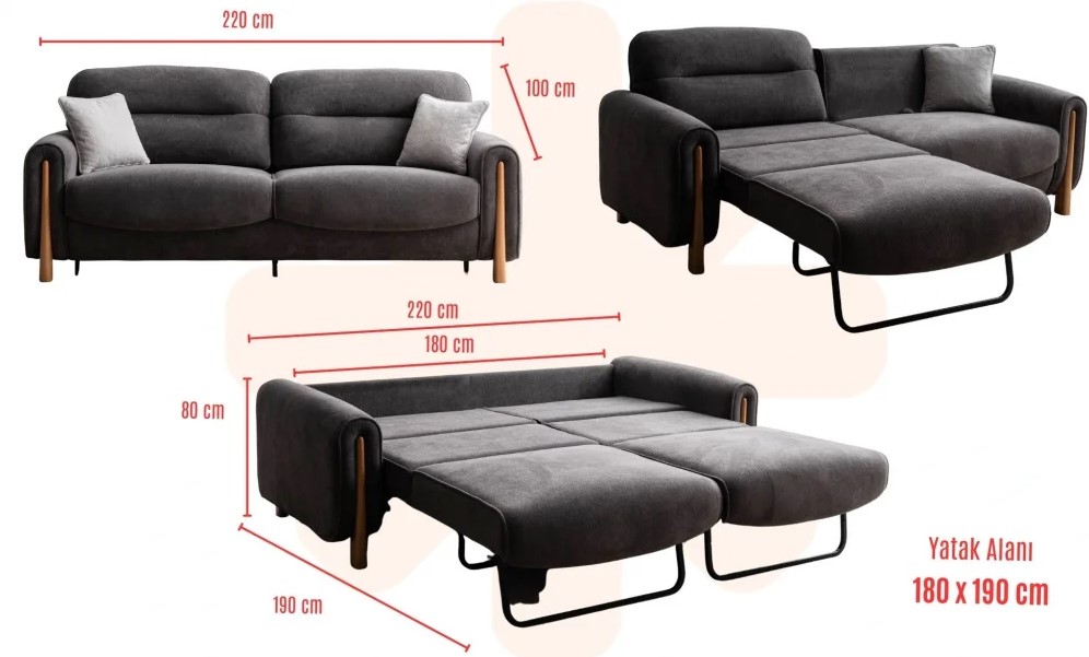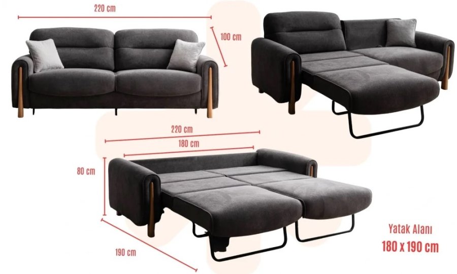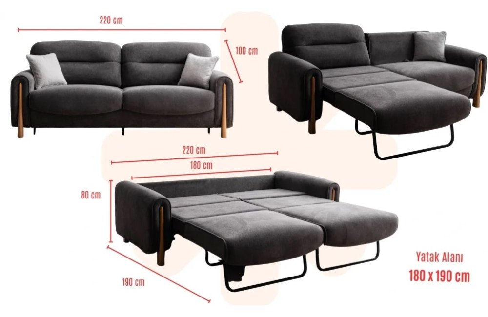 1 ad. yataklı üçlü kanepeden oluşmaktadır.