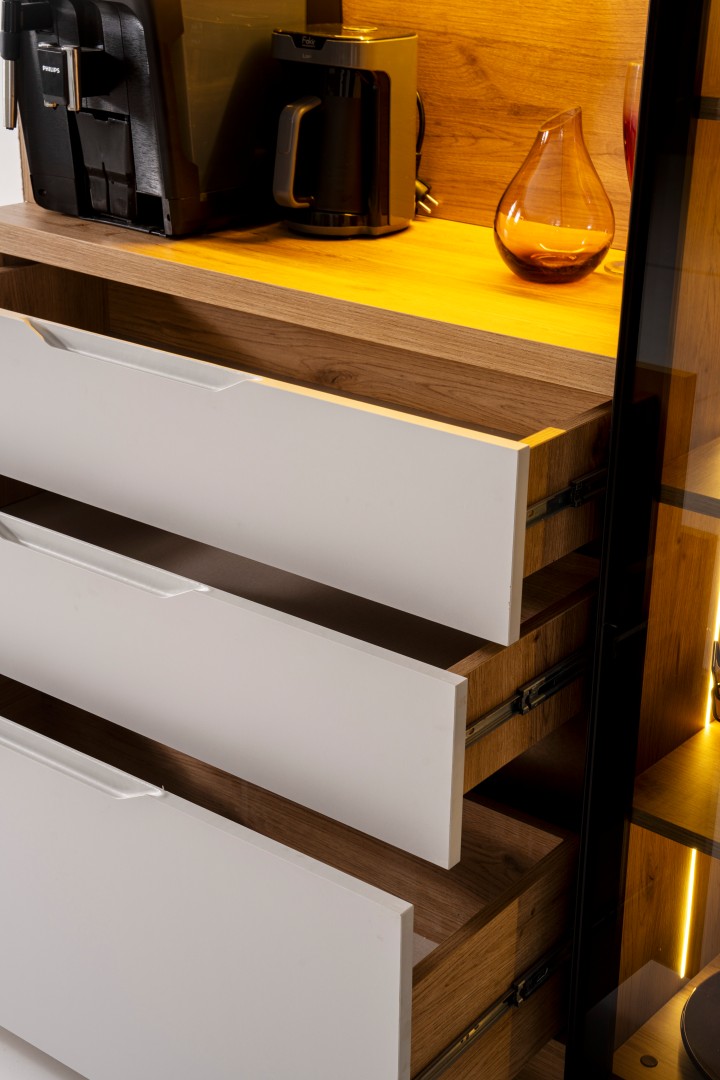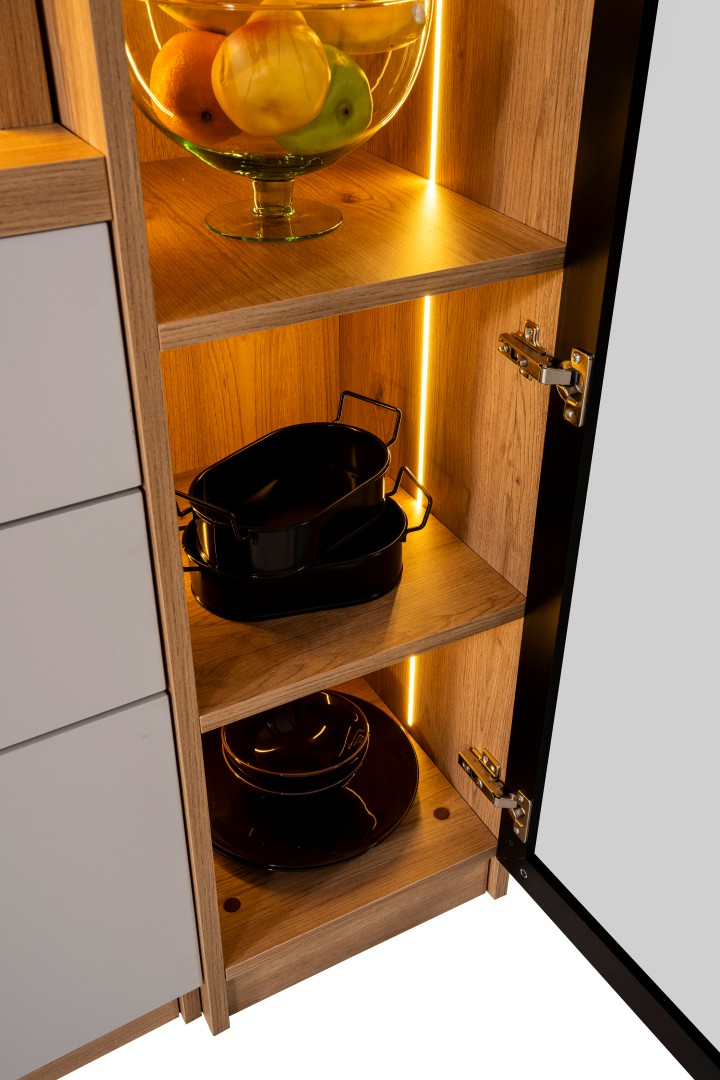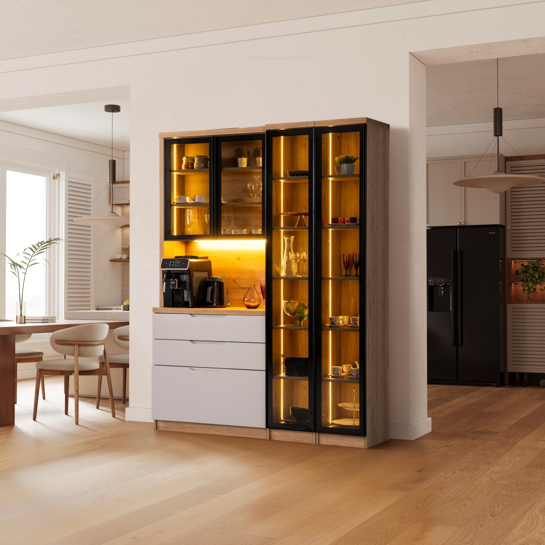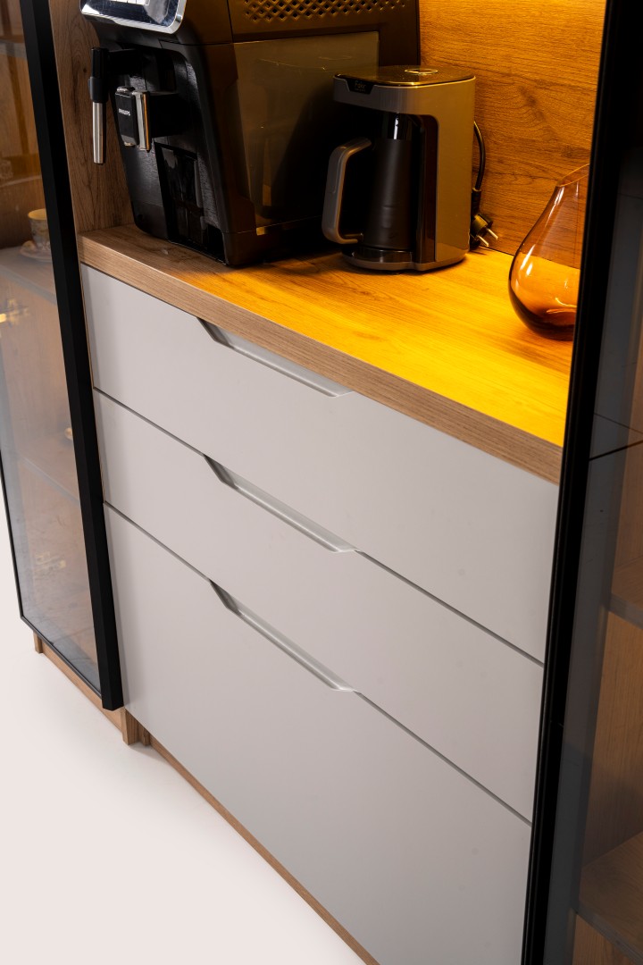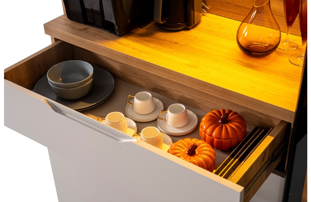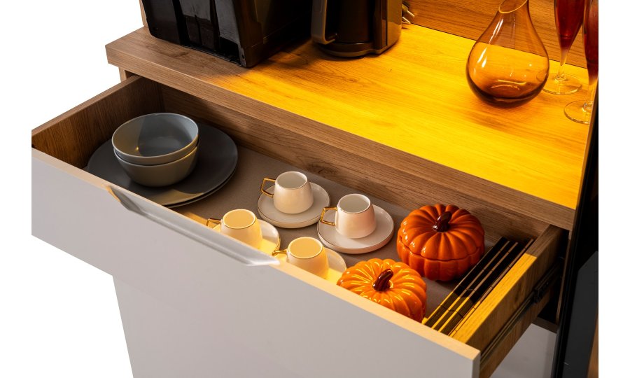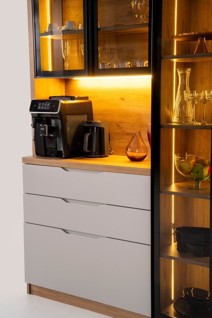 • Kompakt ve Modüler Yapı: Hem mutfakta hem de salon geçişlerinde "Coffee Station" (Kahve İstasyonu) olarak kullanılabilecek ideal ölçüler.