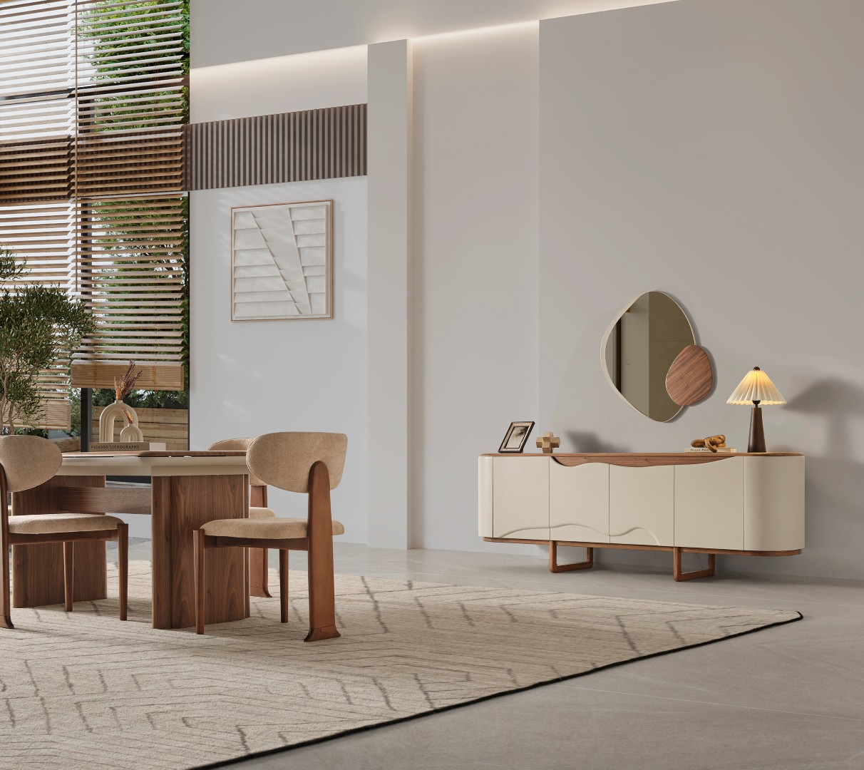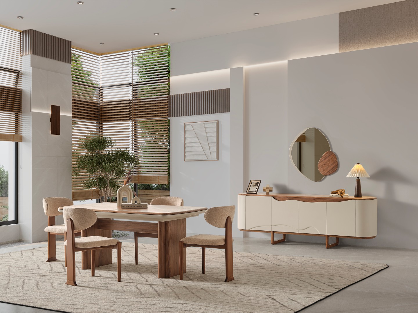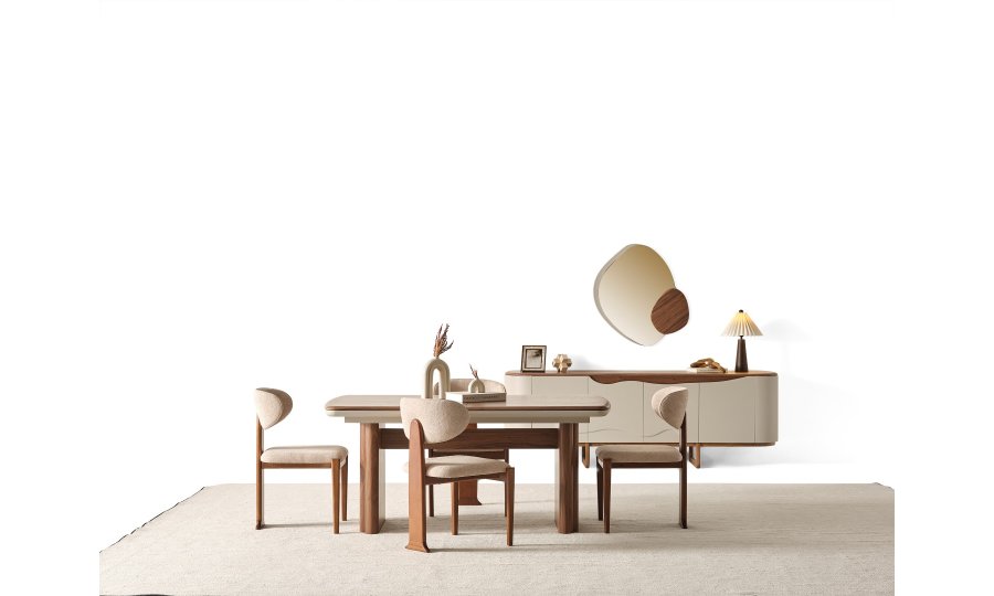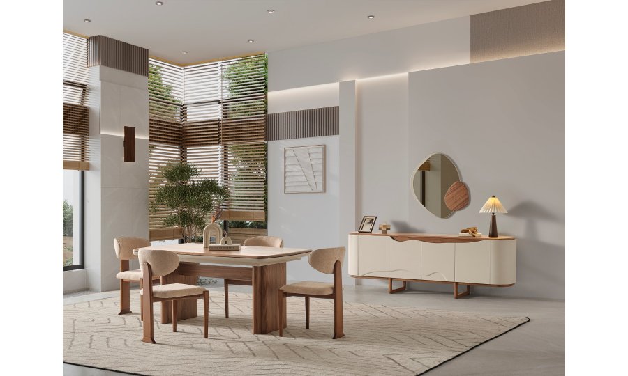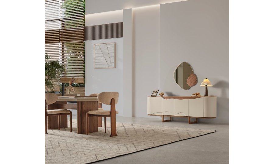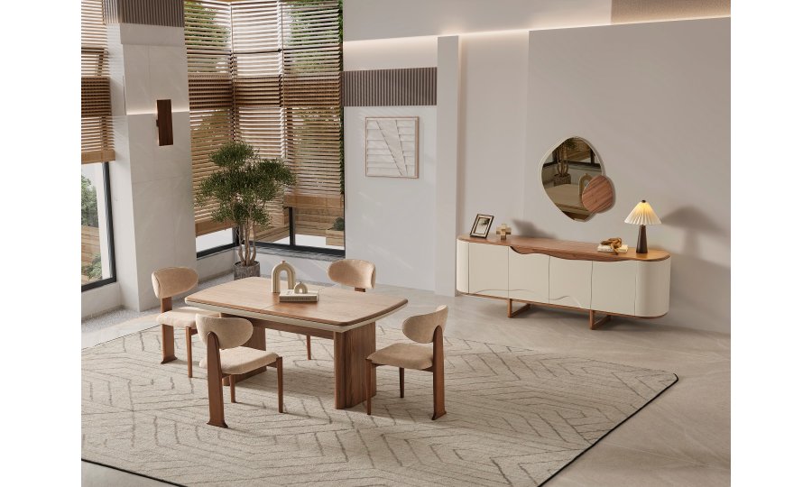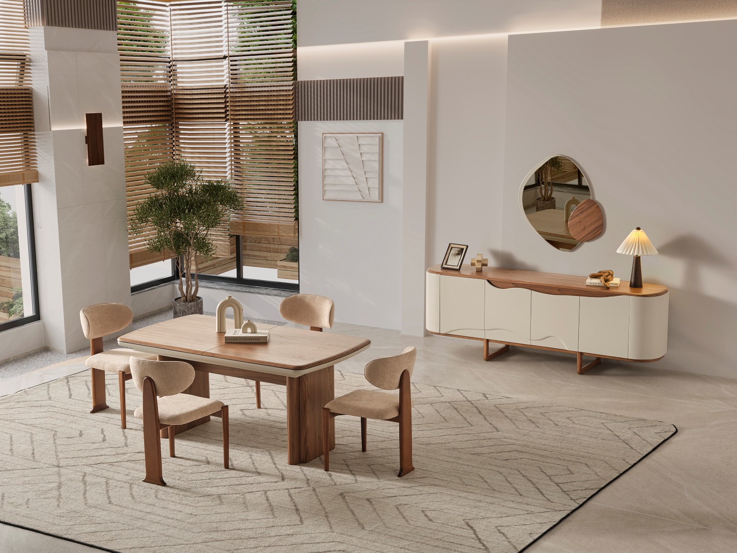 1 ad. konsol ve aynası, 1 ad. masa ve 6 ad. sandalyeden oluşmaktadır.