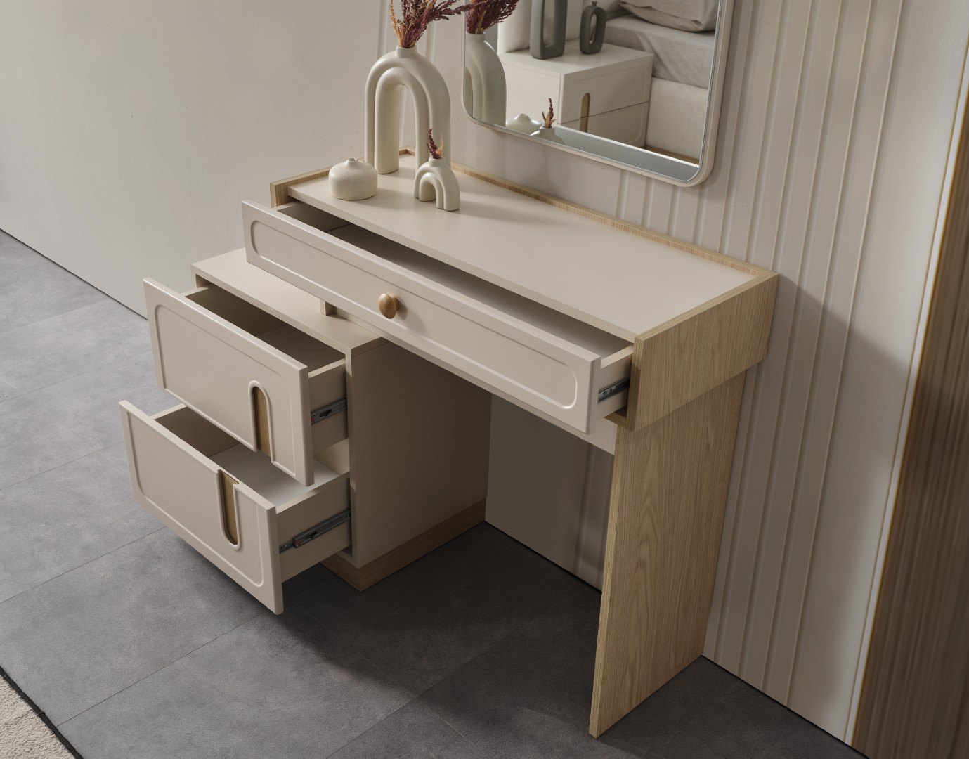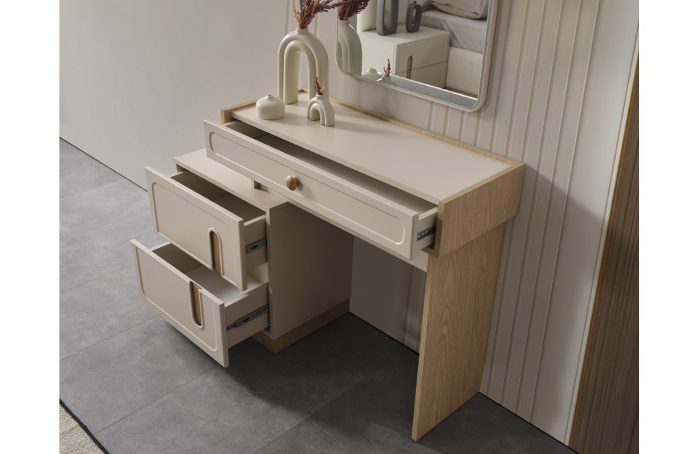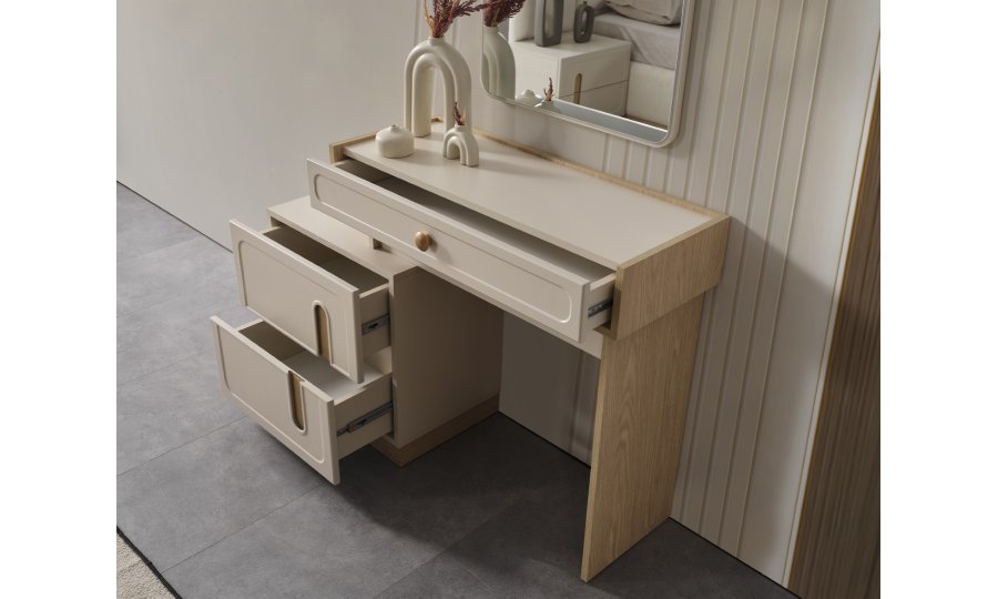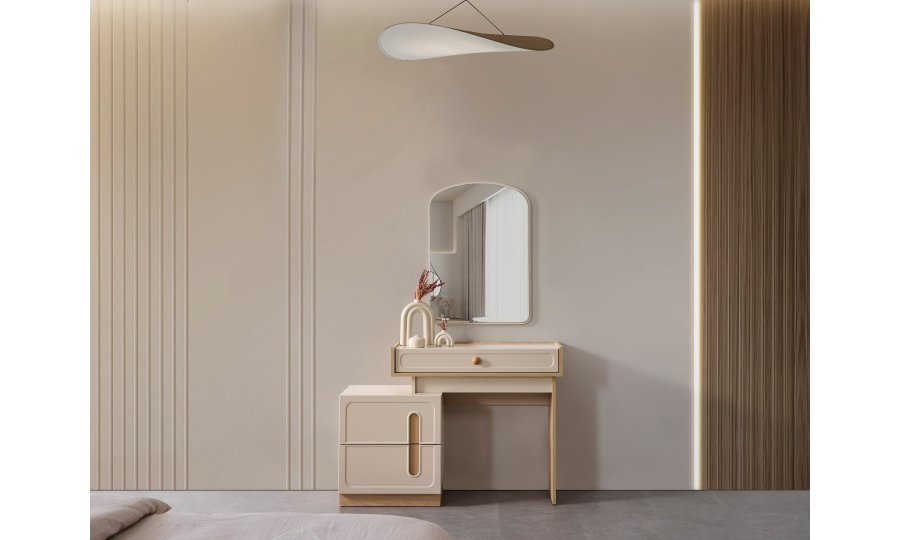 • Şifonyeri makyaj masası şeklinde tasarlanmıştır.