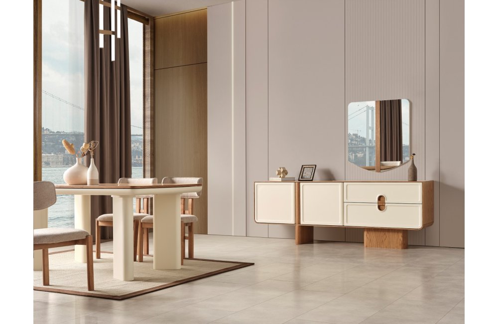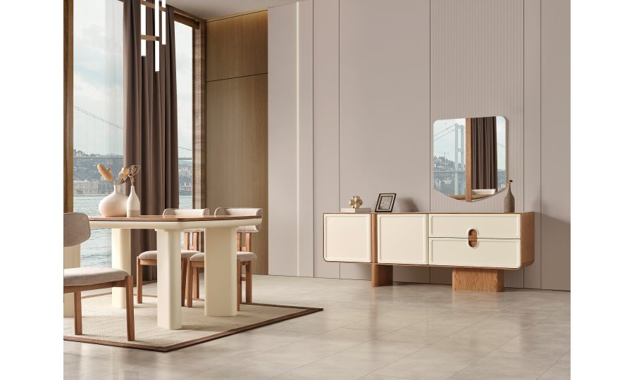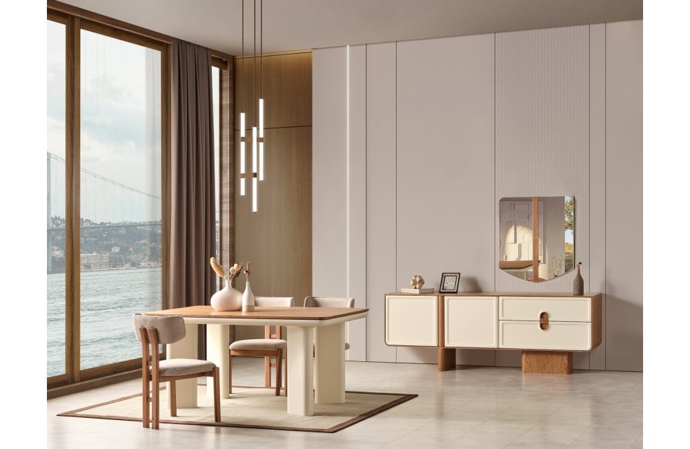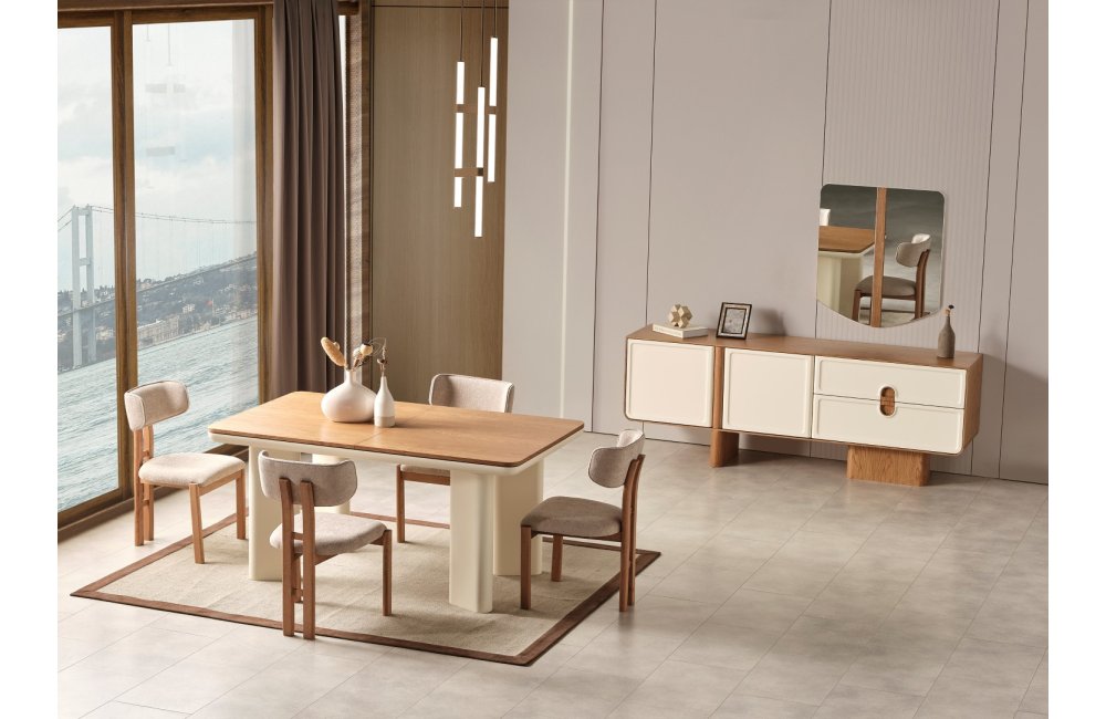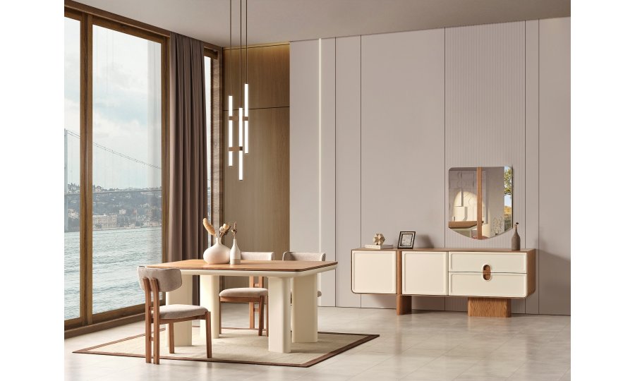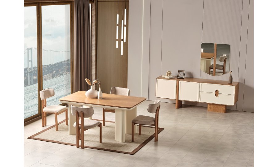 1 ad. konsol ve aynası, 1 ad. masa ve 6 ad. sandalyeden oluşmaktadır.