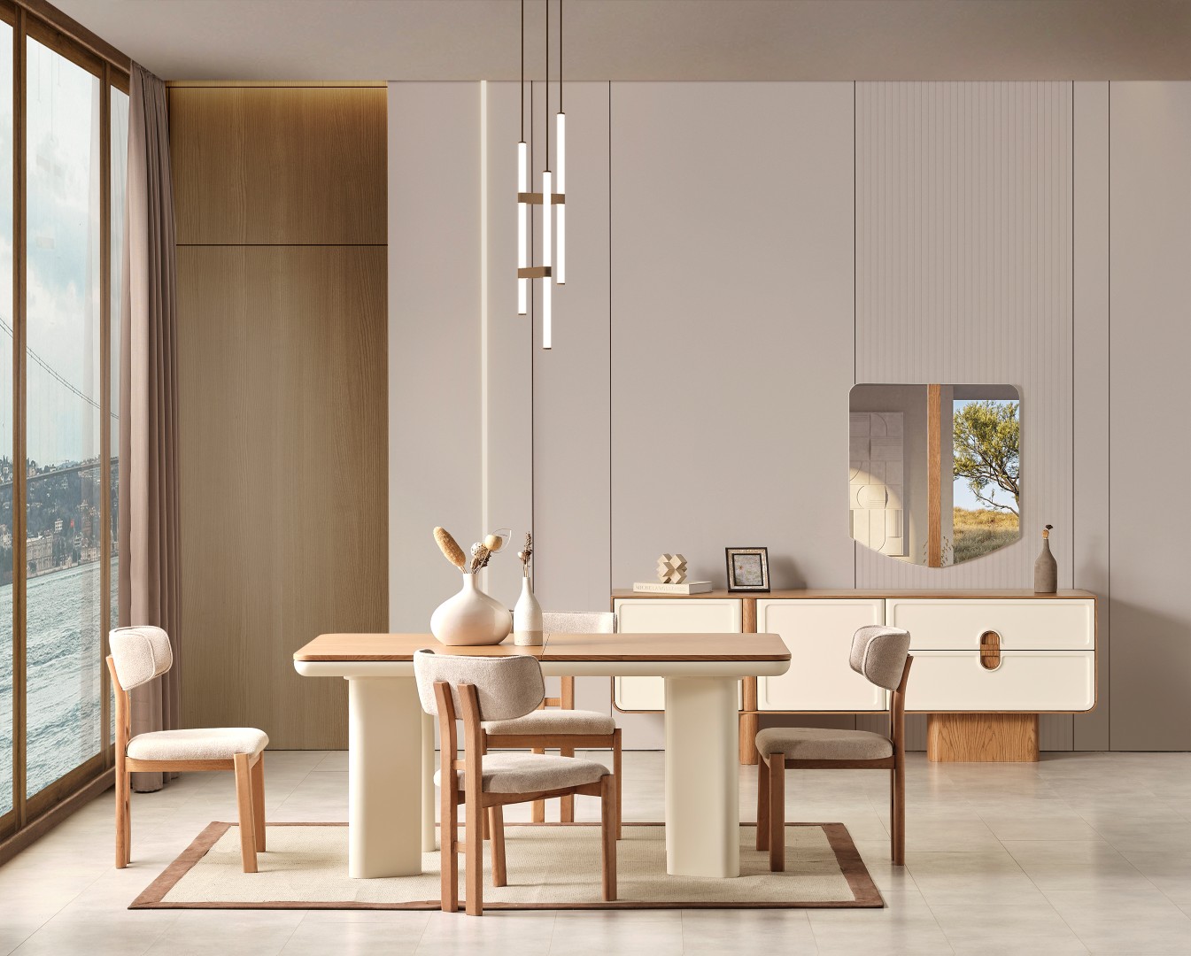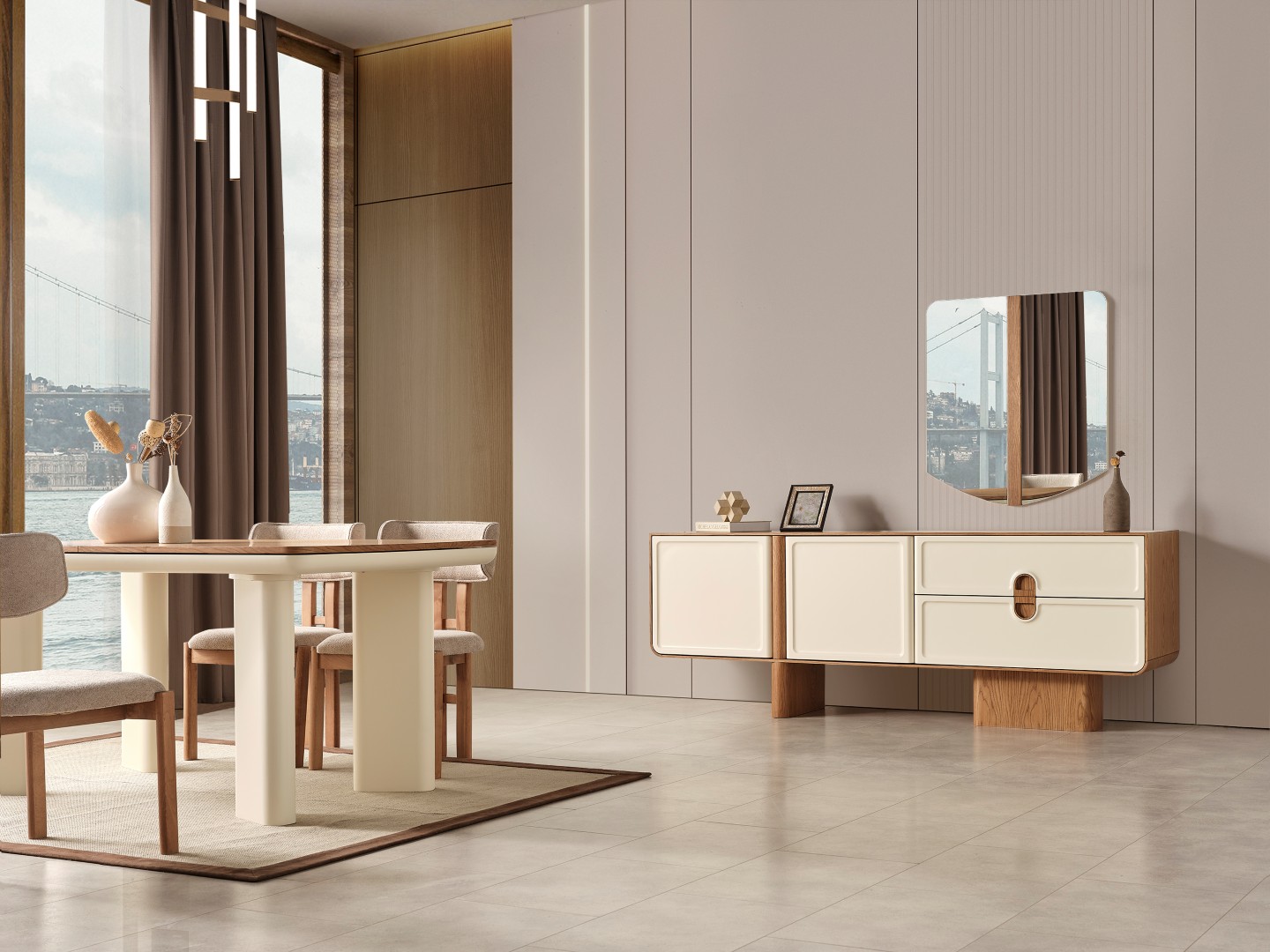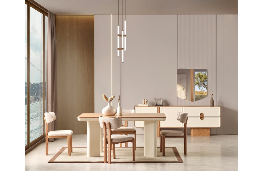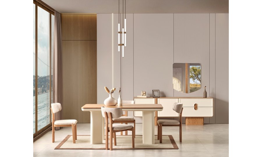 1 ad. konsol ve aynası, 1 ad. masa ve 6 ad. sandalyeden oluşmaktadır.