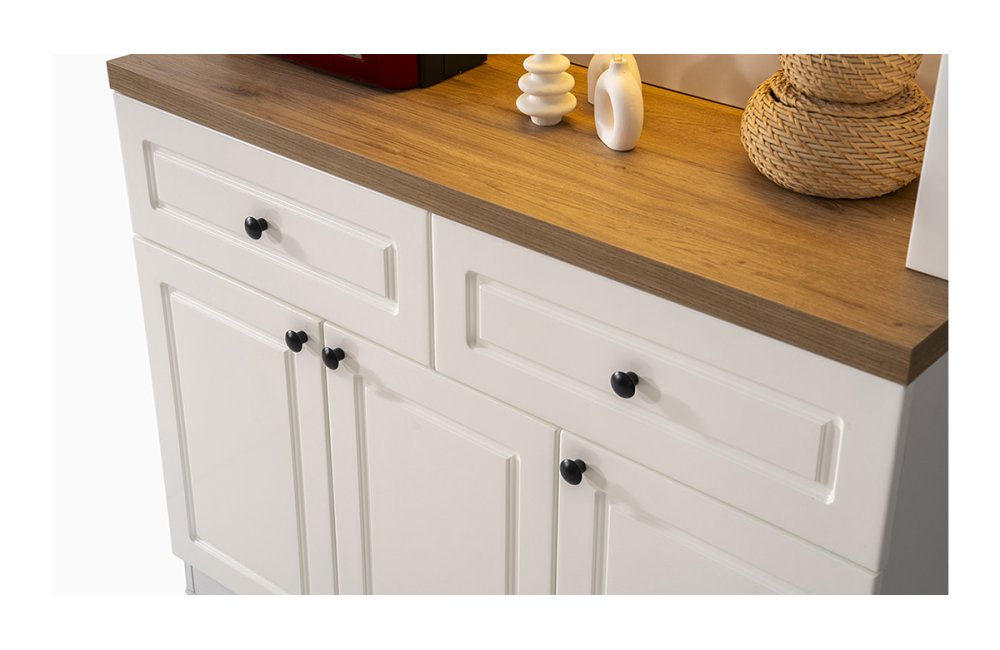 • Country Detaylar: Beyaz panelli kapaklar ve siyah şık kulplar, zamansız bir kır evi (country) tarzını yansıtır.