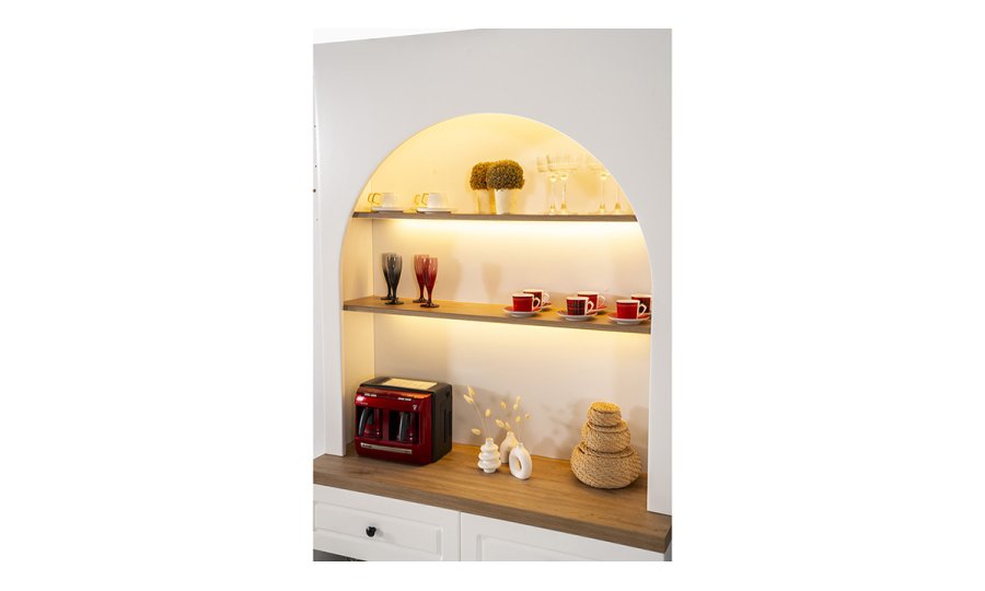 • İkonik Kemerli Tasarım: Üst kısımda yer alan kavisli niş yapısı, klasik mimari dokunuşları modern mobilya tasarımıyla birleştirir.