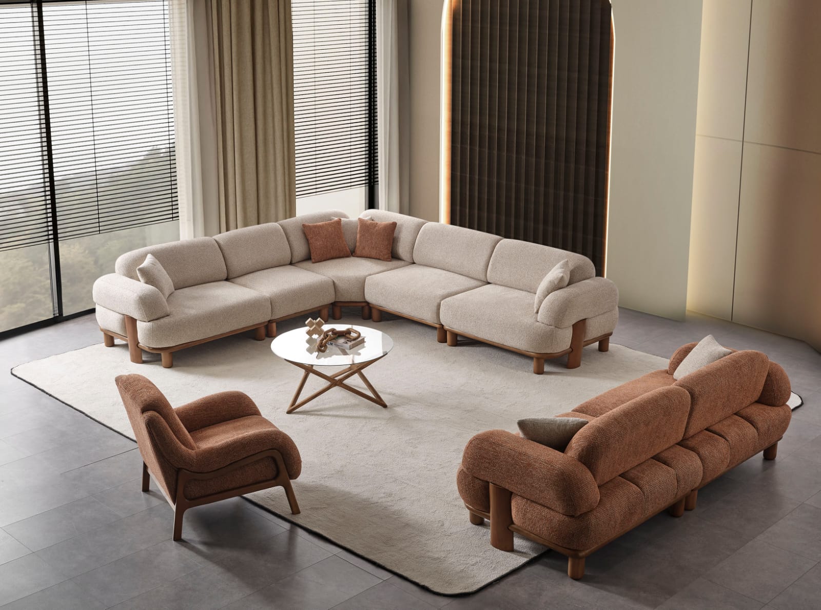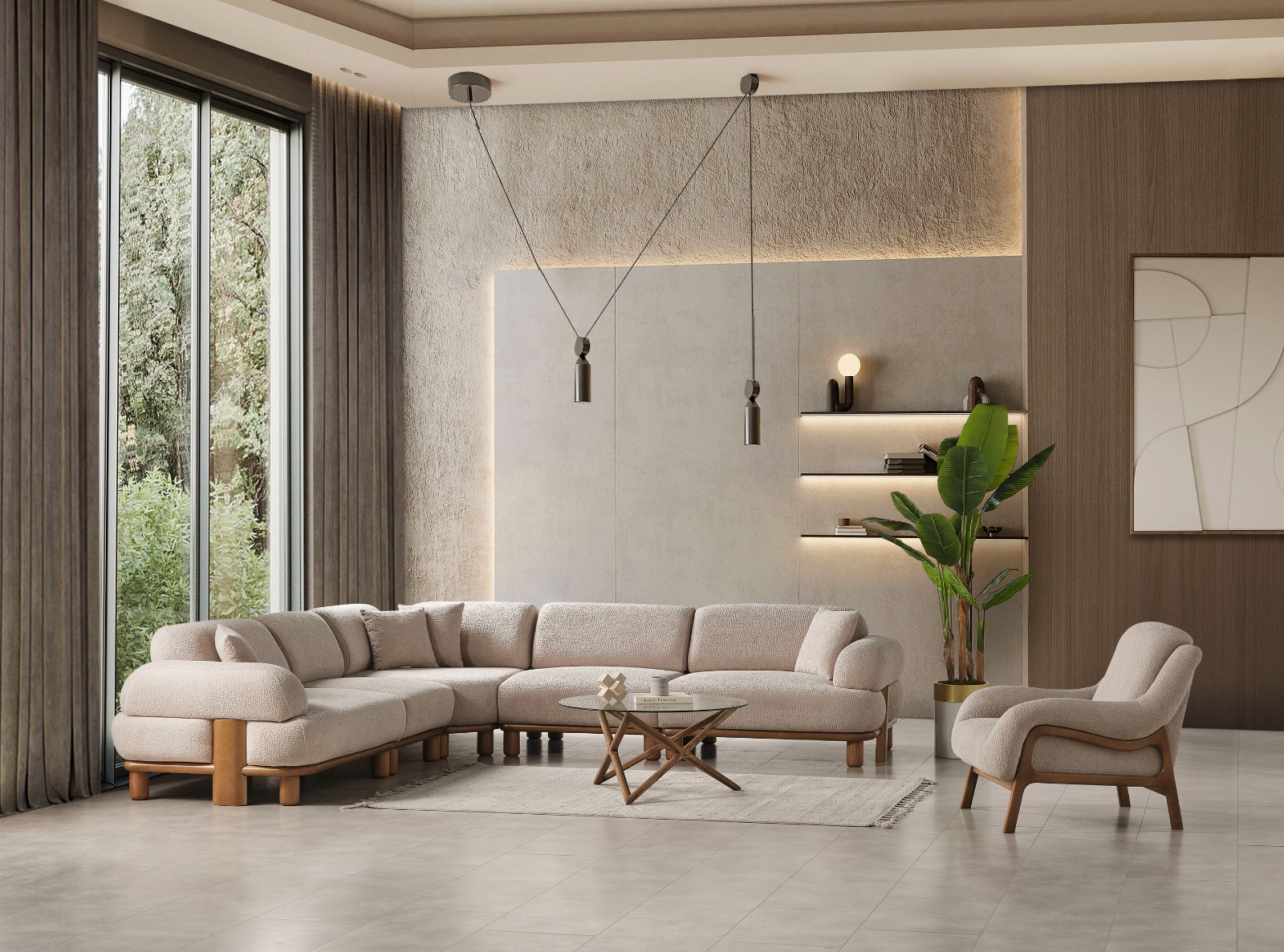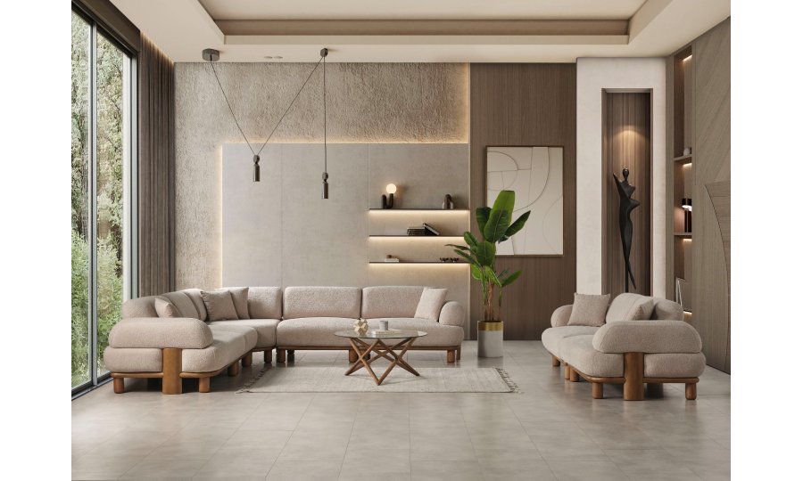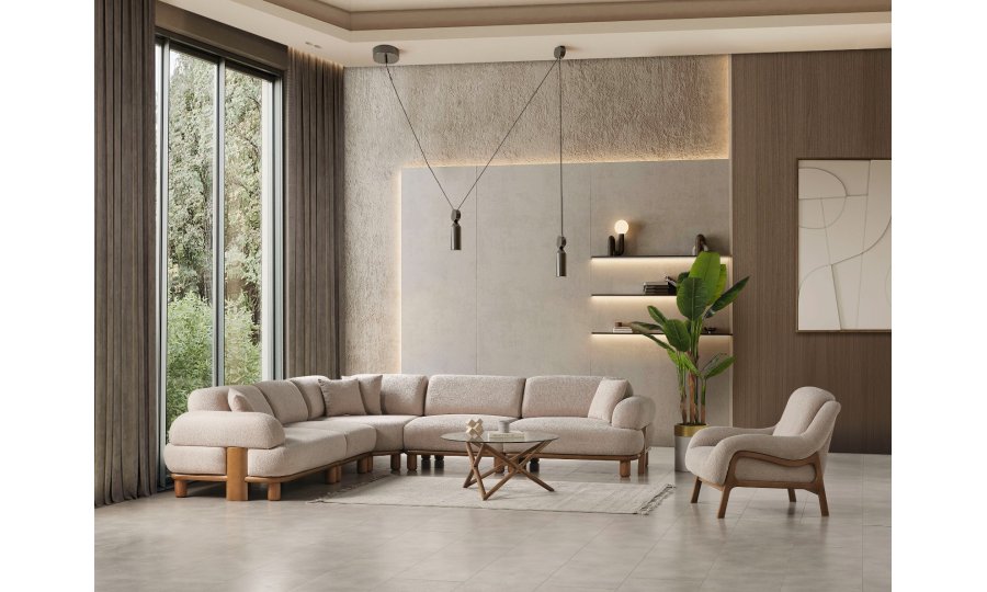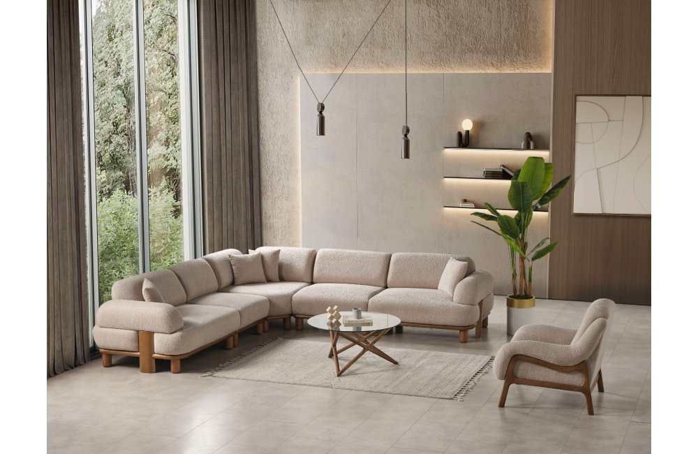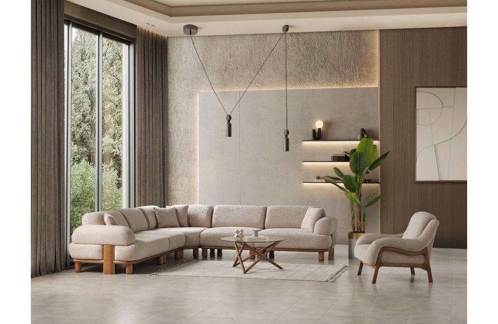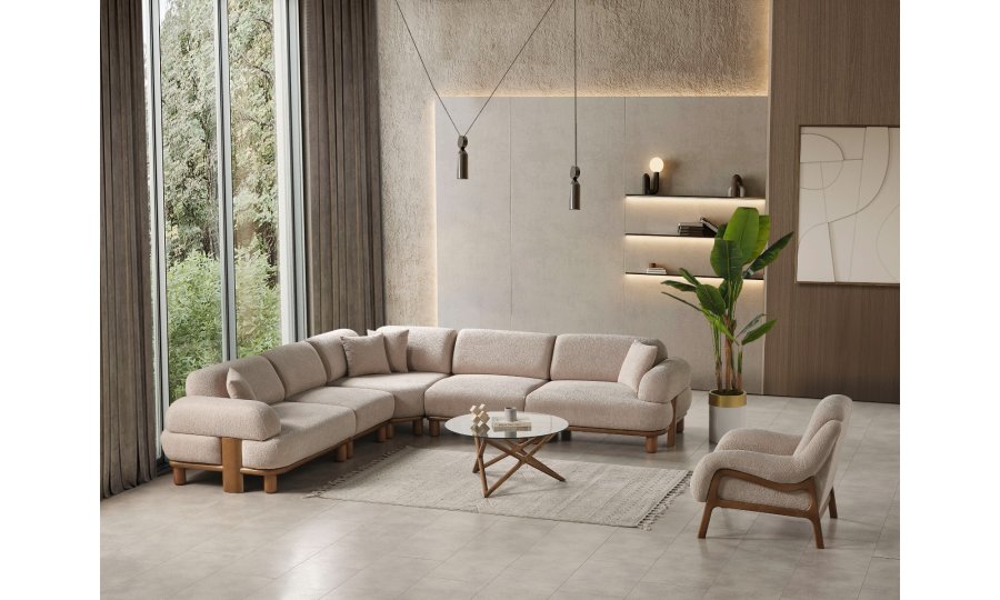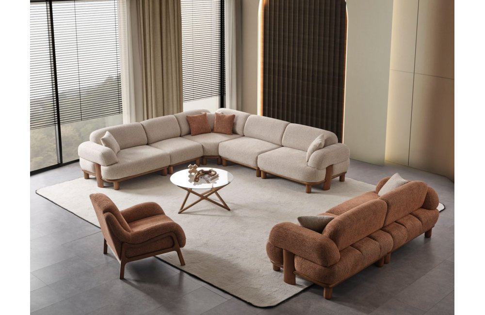 2ad. kollu modül, 1ad. 70cm piyon, 1ad. köşe modül ve 1ad. 90cm piyondan oluşmaktadır. Berjer opsiyonel olarak satılmaktadır.
