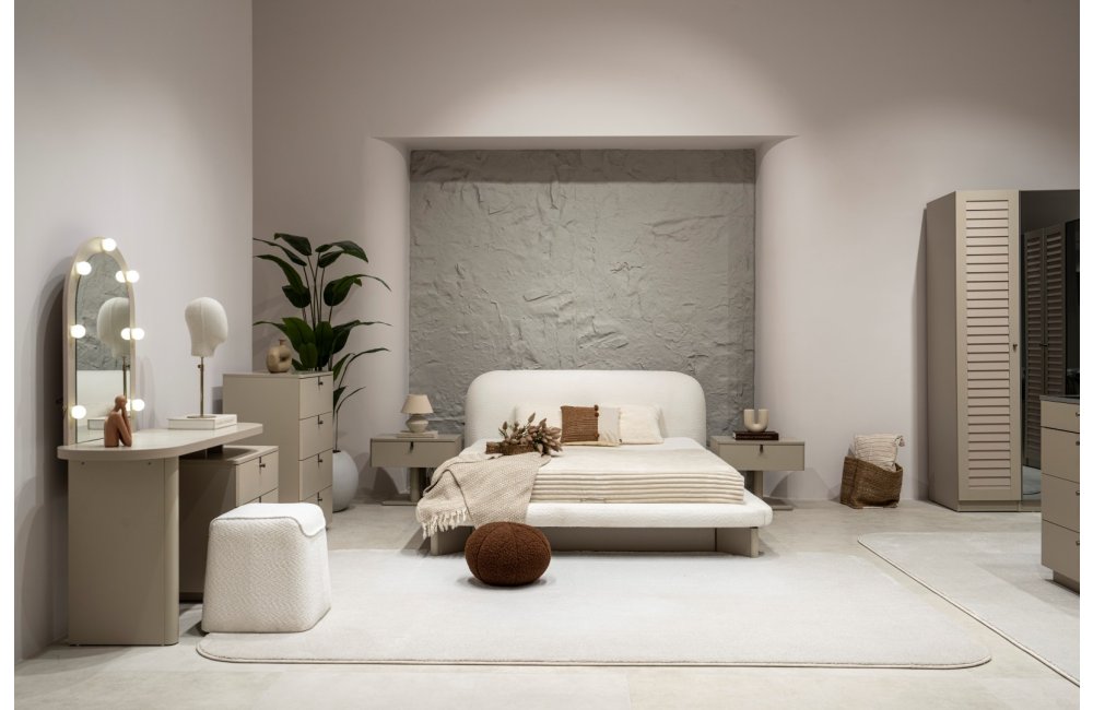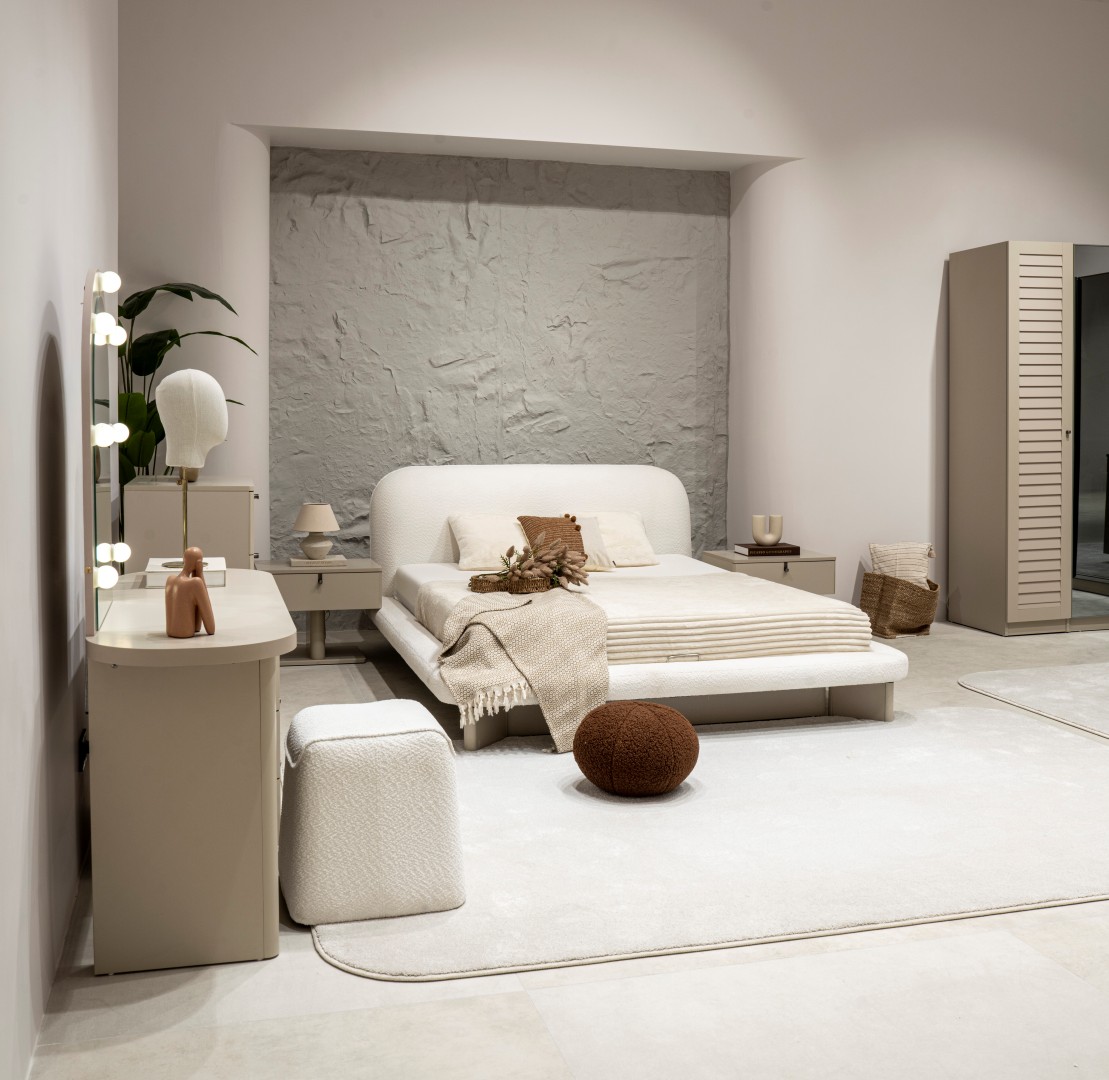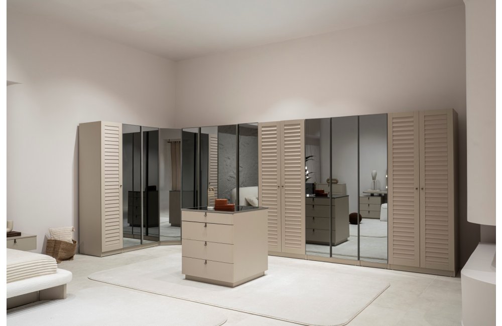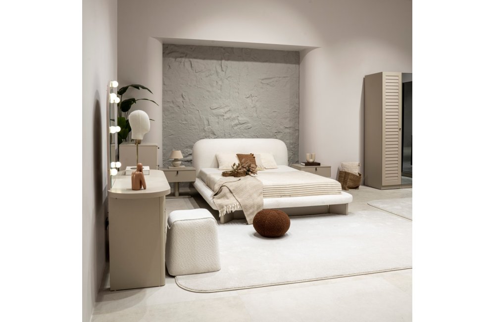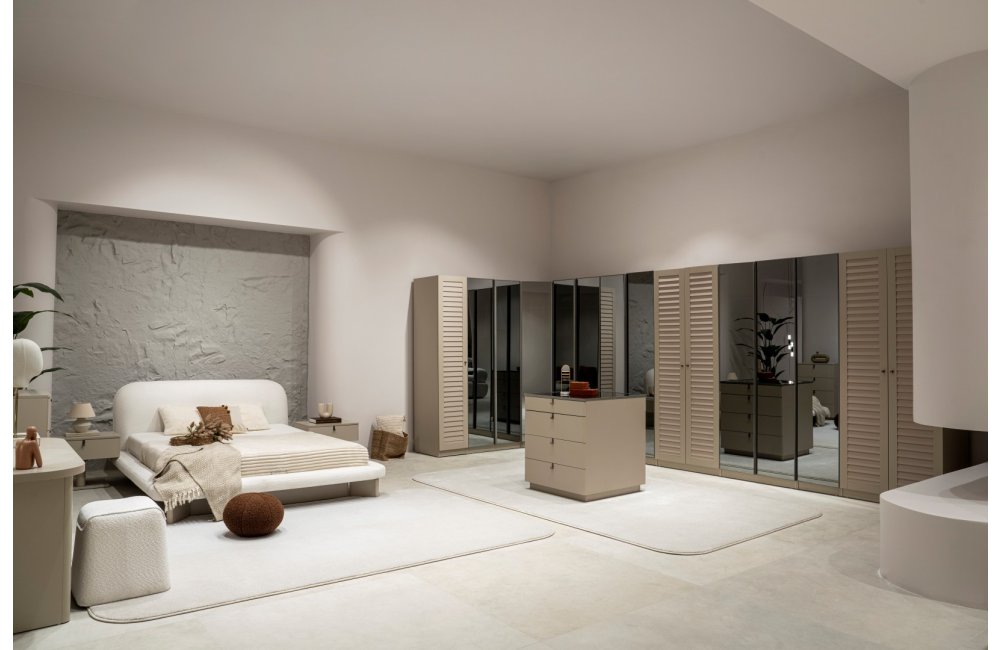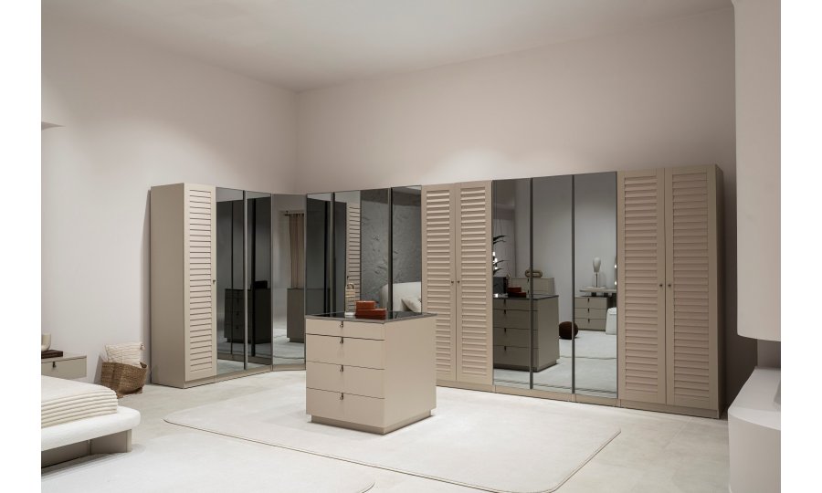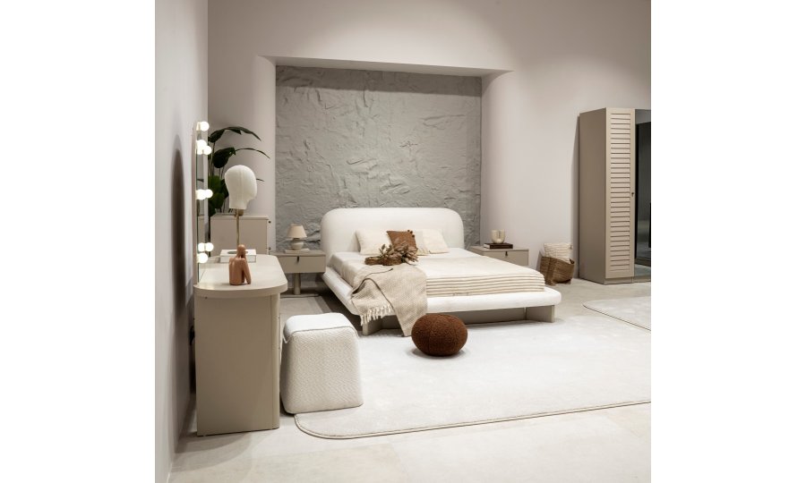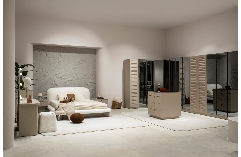 2 ad. tek kapaklı, 2 ad. iki kapaklı çekmeceli, 2 ad. iki kapaklı raflı, 2 ad. iki kapaklı askılıklı, 1 ad. köşe dolap, 1 ad. bazalı karyola (160x200 cm), 1 ad şifonyer, 1 ad şifonyer aynası ve 2 ad. komodinden oluşmaktadır.