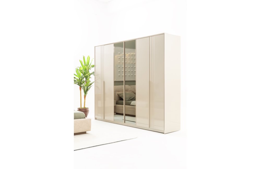1 adet altı kapaklı dolap ,1 adet karyola ,1 adet şifonyer (aynalı) ve 2 adet komodinden oluşmaktadır . Baza sistemi opsiyonel olarak satışa sunulmuştur.