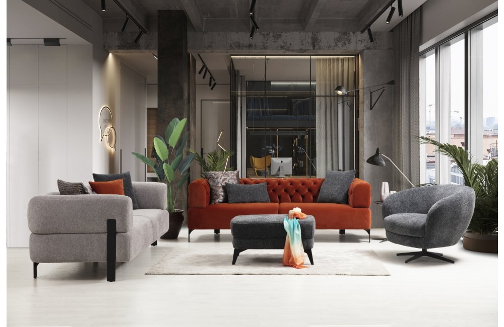 1 Ad. kapitoneli kanepe 1 Ad. düz kanepe 1 Ad. berjerden oluşmaktadır. 4'lü Kanepe, Puf ve berjer opsiyonel olarak sunulmuştur.