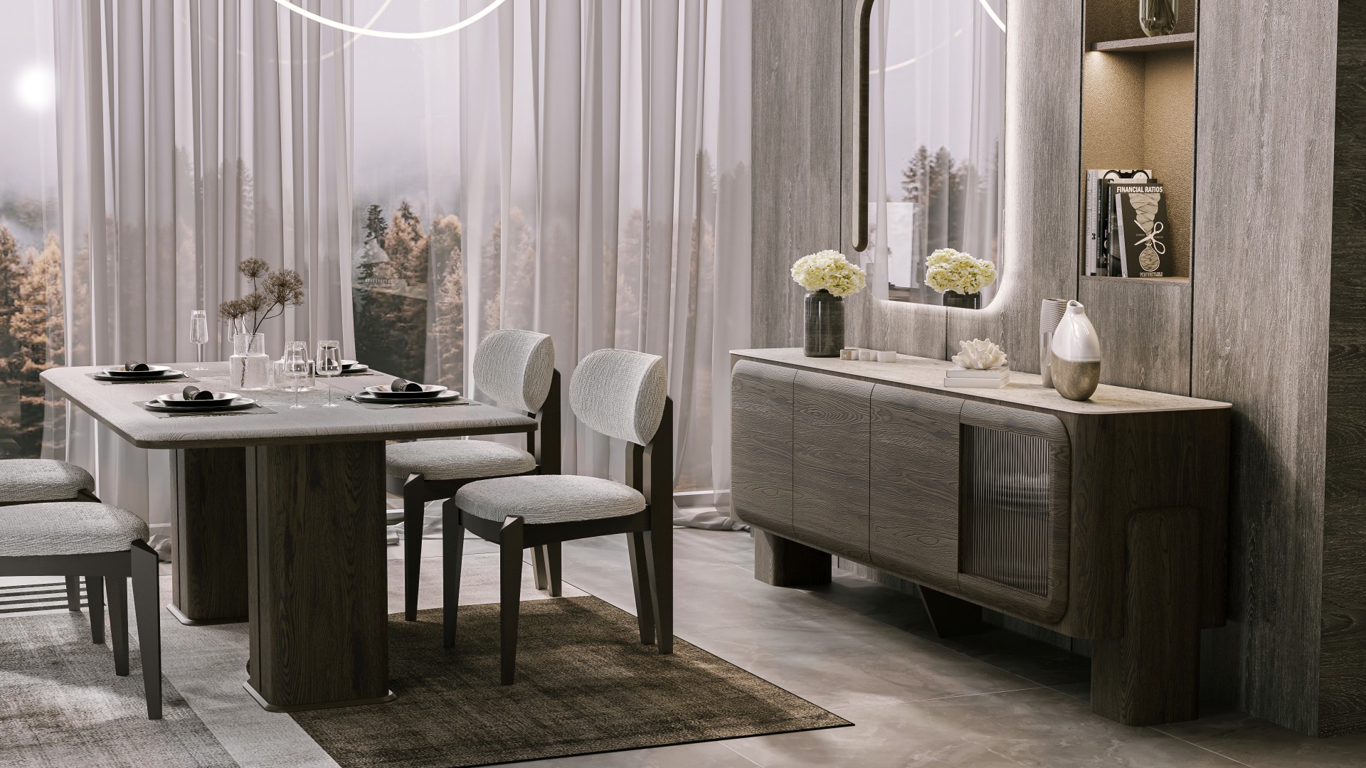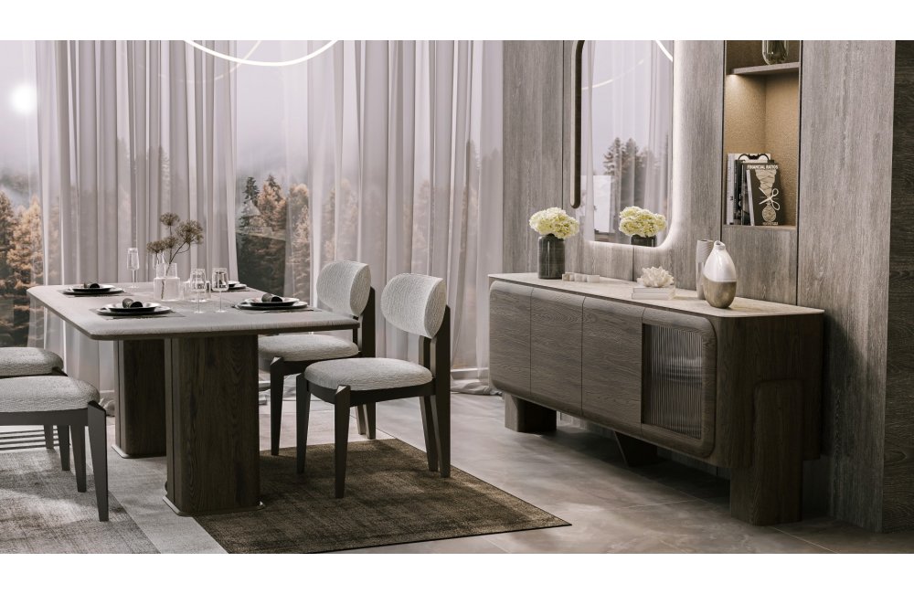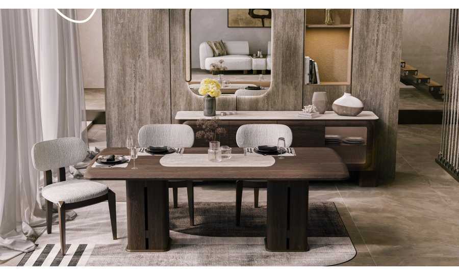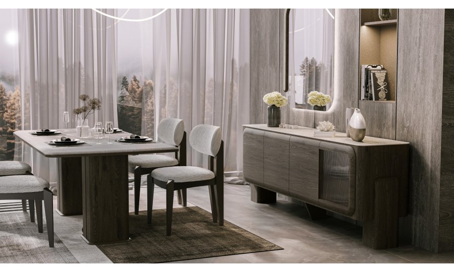 1 ad. konsol (aynalı), 1 ad. sabit masa ve 6 ad. sandalyeden oluşmaktadır.