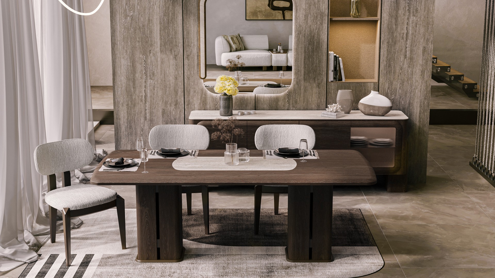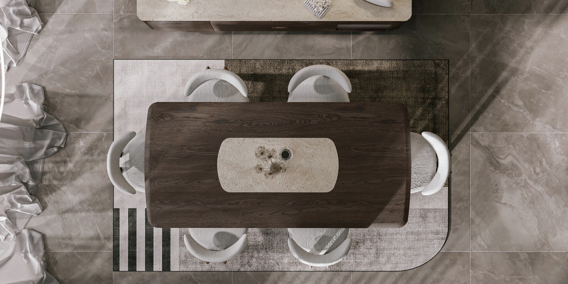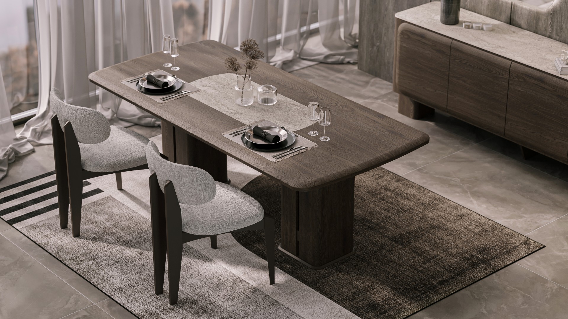 1 ad. konsol (aynalı), 1 ad. sabit masa ve 6 ad. sandalyeden oluşmaktadır.