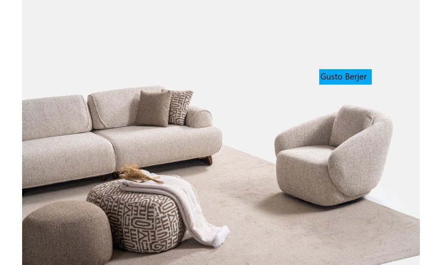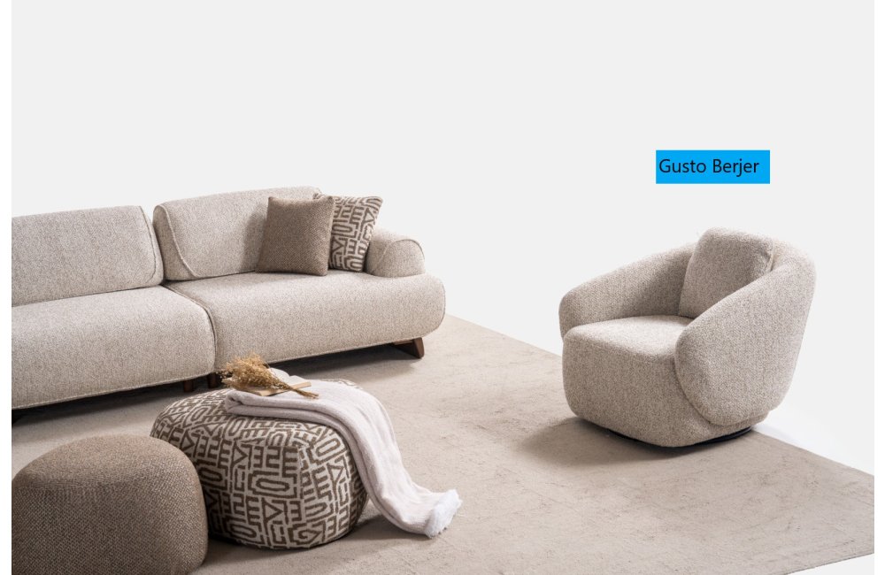 1ad. dörtlü kanepe, 1ad. üçlü kanepe ve 1ad. berjerden oluşmaktadır. 2li kanepe ve gusto berjer opsiyonel satılmaktadır.
