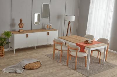 1ad. konsol(Aynalı), 1ad. masa ve 6ad. sandalyeden oluşmaktadır. Açılır masa opsiyonel satılmaktadır.