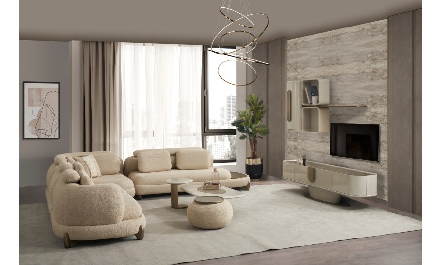 1 ad. TV ünitesinden (ünite alt blok, ünite üst kapaklı blok, 2 ad. ünite üst kutu ve ünite raf) oluşmaktadır.