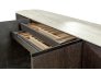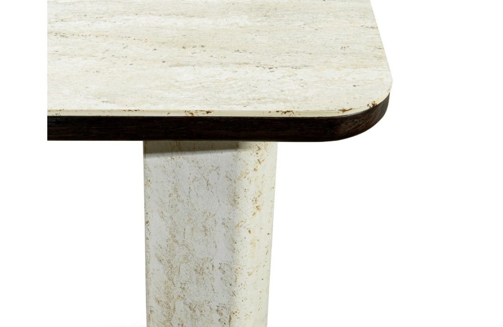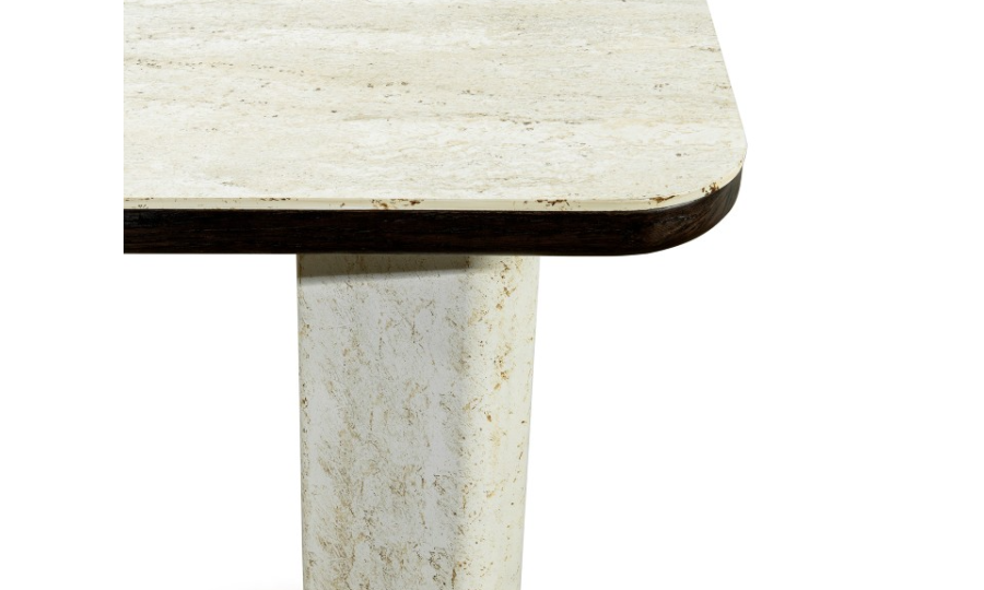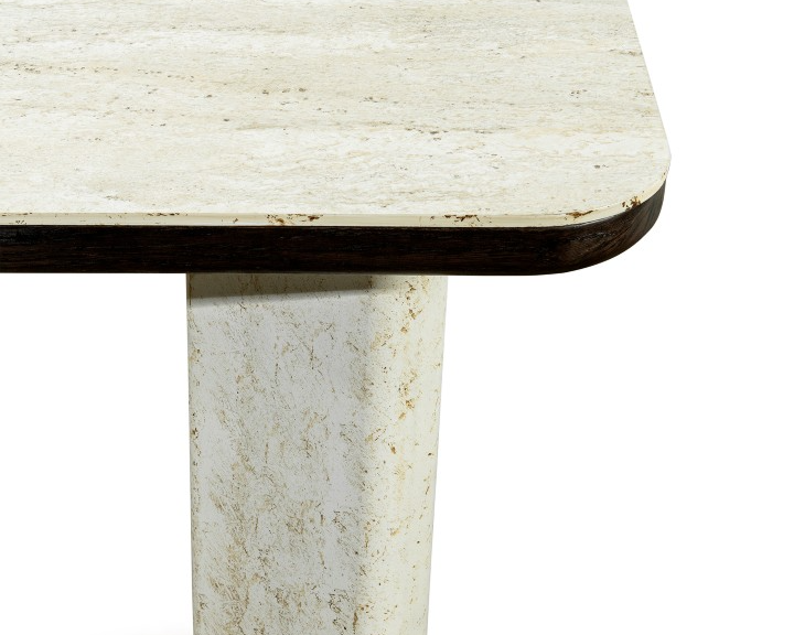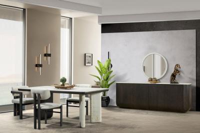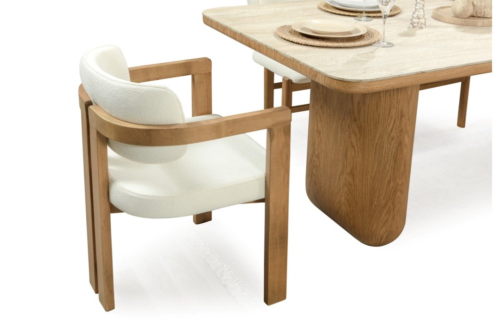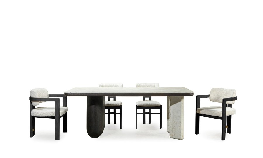 • Traverten Detaylar: Yemek masasının ayaklarında kullanılan traverten dokulu bloklar, doğal taş estetiğini modern mühendislikle birleştirir.