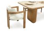 • Ergonomik Sandalyeler: Ahşap iskeletli, sırtı kavisli ve bouclé kumaş döşemeli sandalyeler, uzun süreli yemeklerde üst düzey konfor sunar.