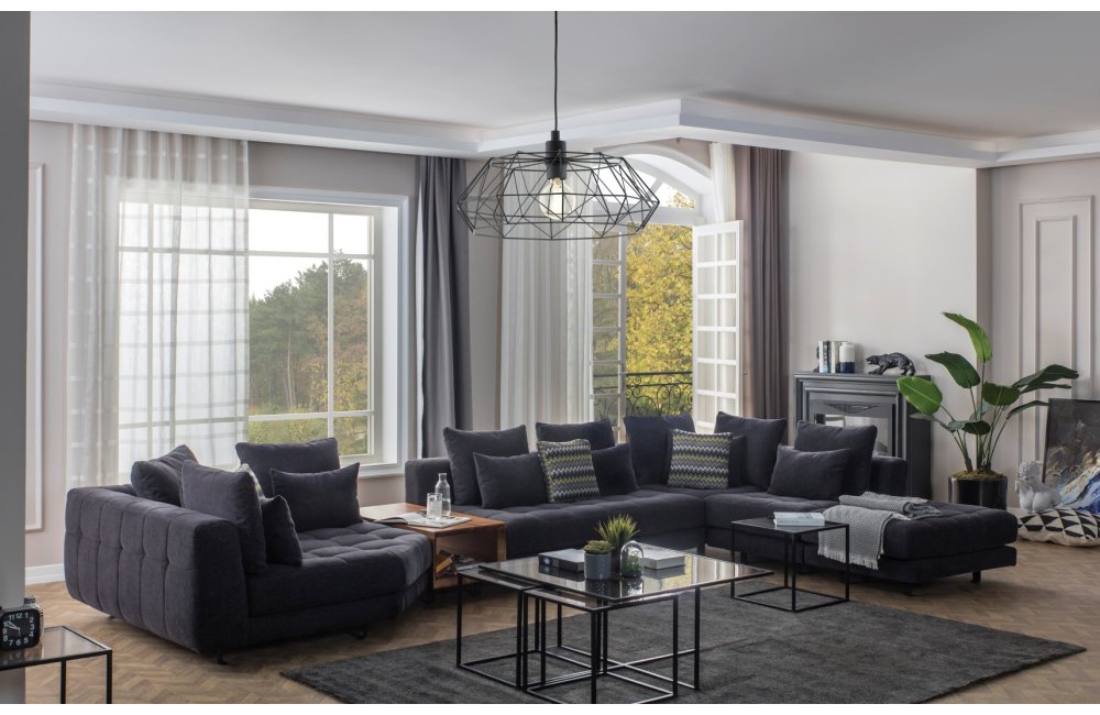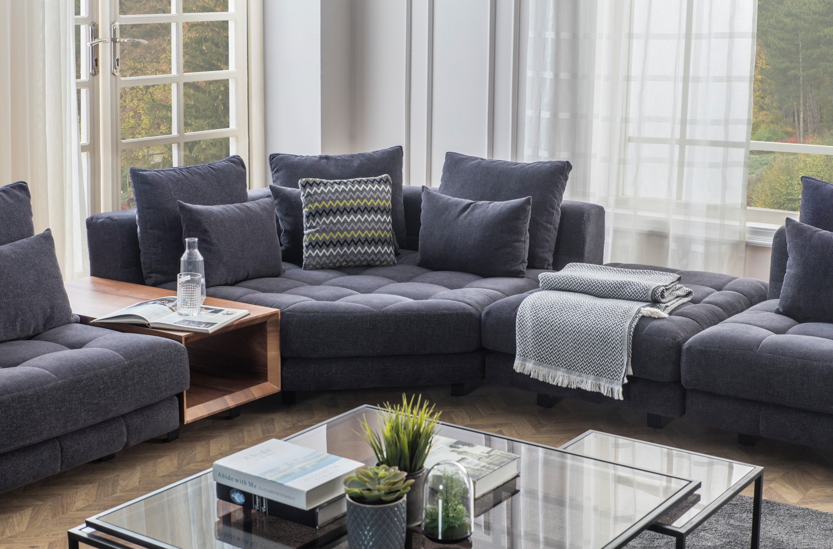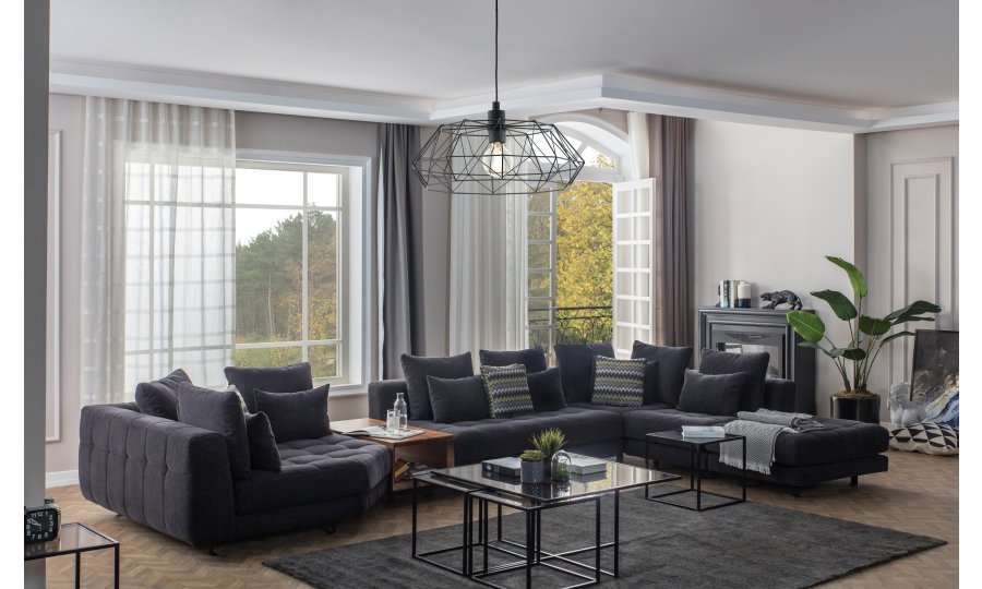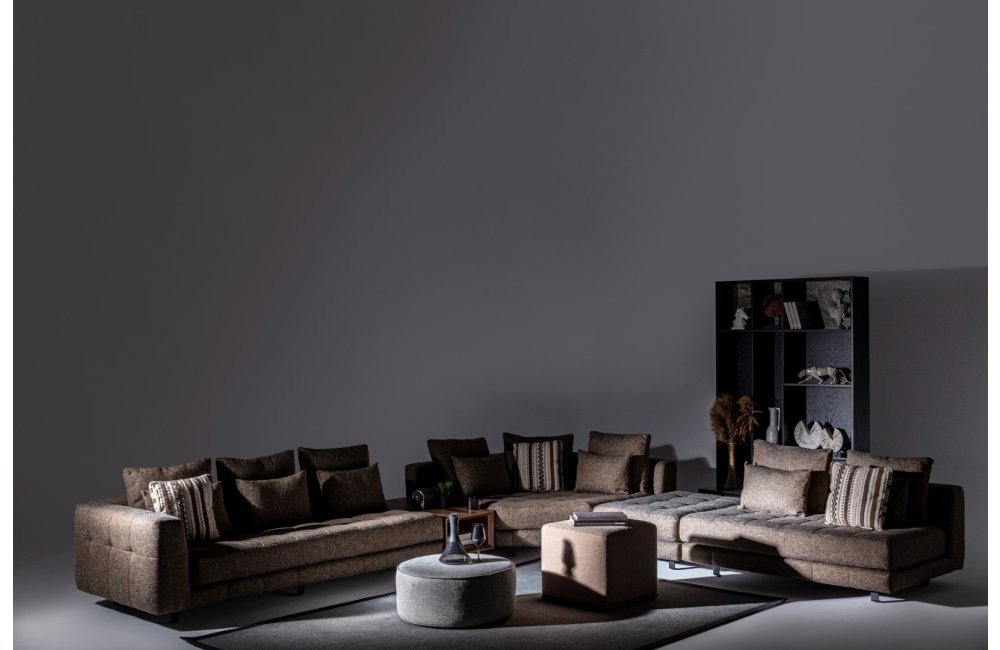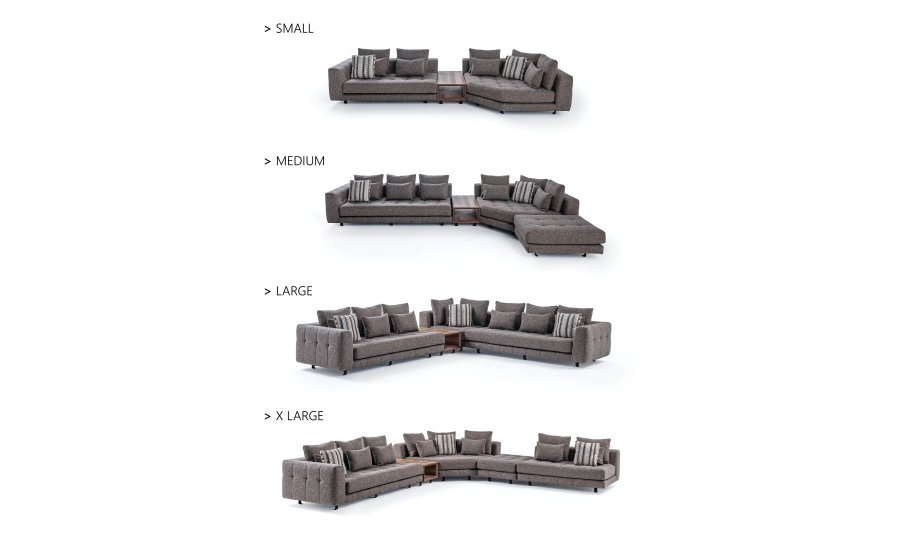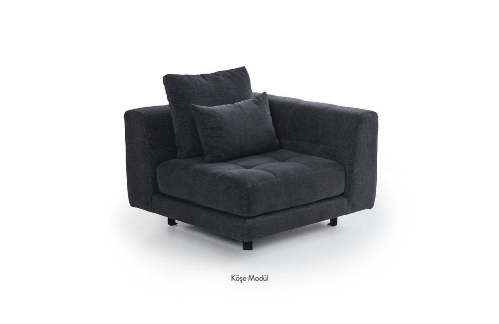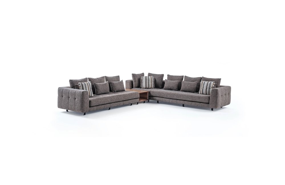 2 Ad. 3'lü Kollu Modül, 1 Ad. Ahşap Sehpa ve 1 Ad. Köşe Modülden oluşmaktadır. Diğer parçalar opsiyonel olarak satışa sunulmuştur.
