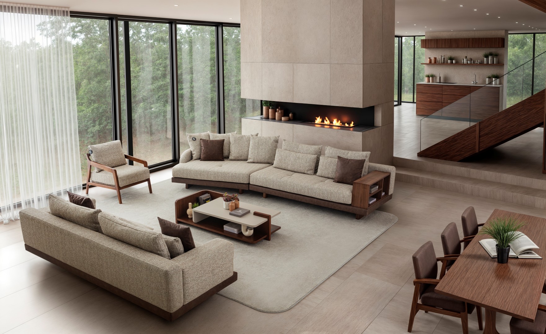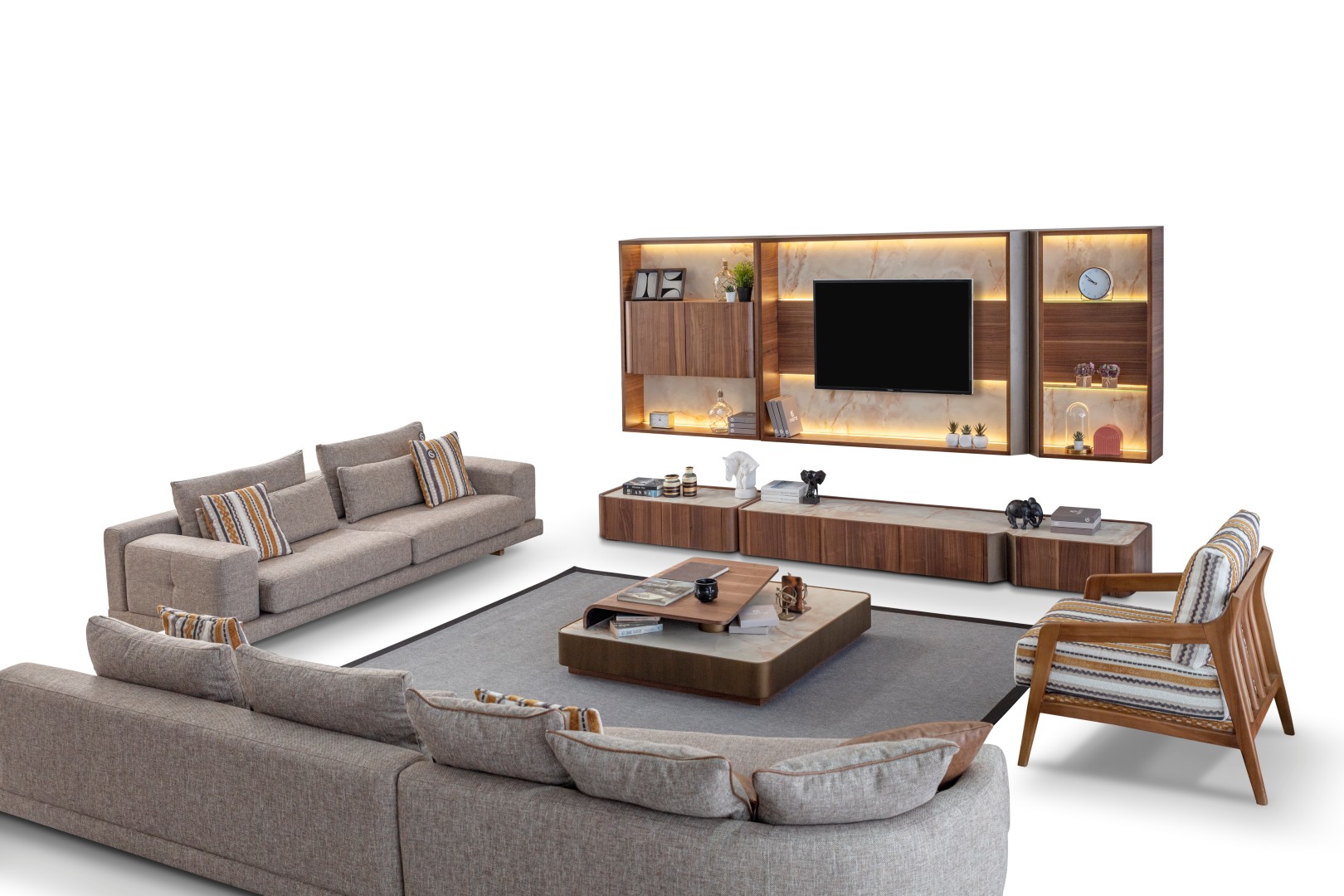 1 ad. 3'lü koltuk, 1 ad. 2'li tek kollu modül, 1 ad. relax modül ve 1 ad. berjerden oluşmaktadır.