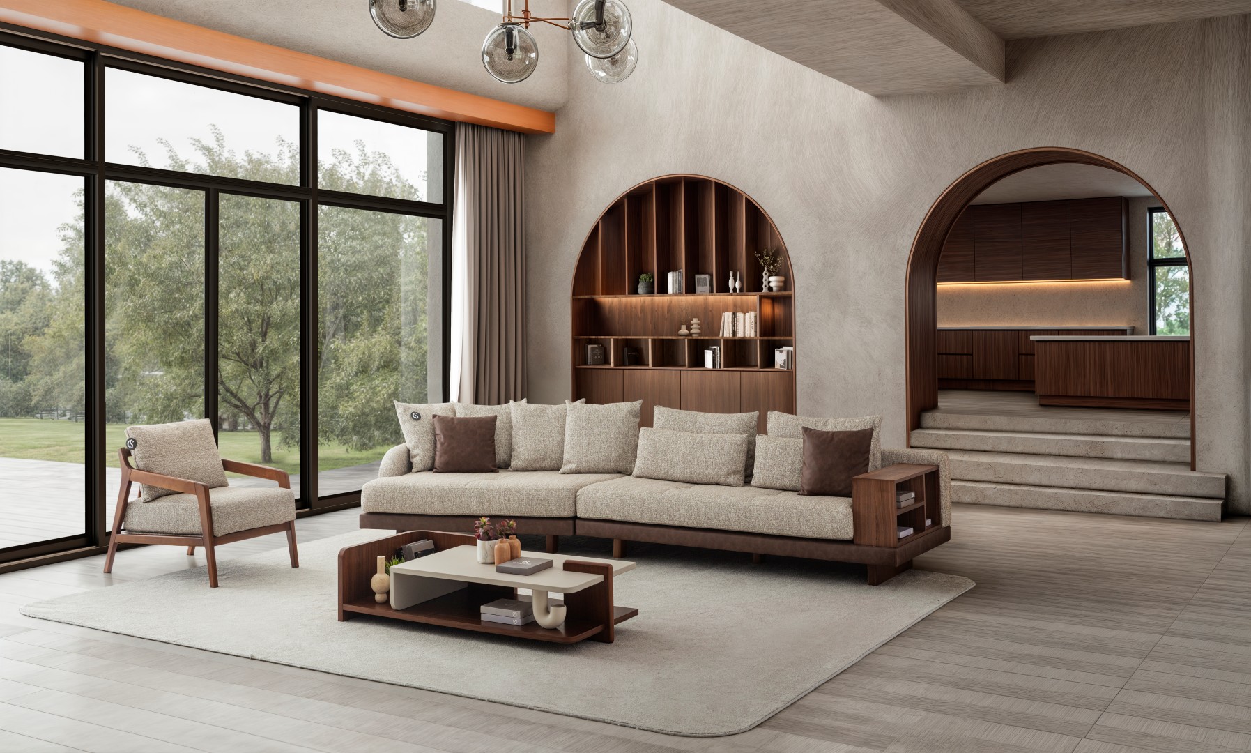 3'lü Tek Kollu Modül 240 cm 105 cm 63 cm