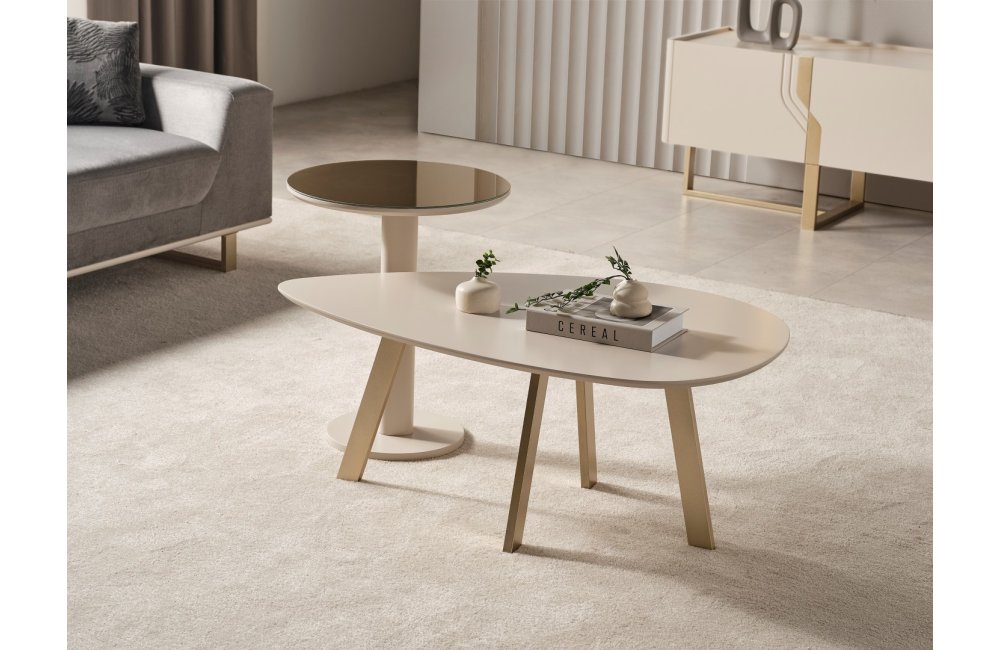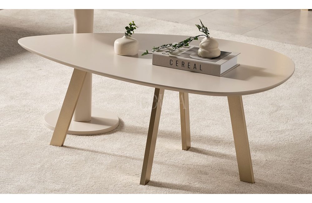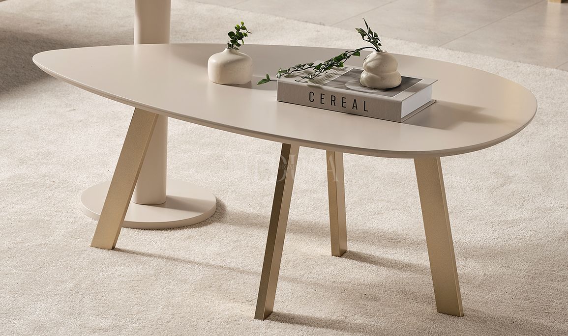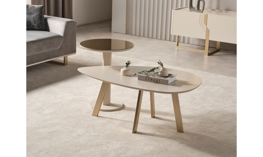 • Orta Sehpa: MDF malzeme üzeri lake boyalı vizon bej rengi ile üretilmiştir. Ayaklar metal malzemeden üretilmiştir.