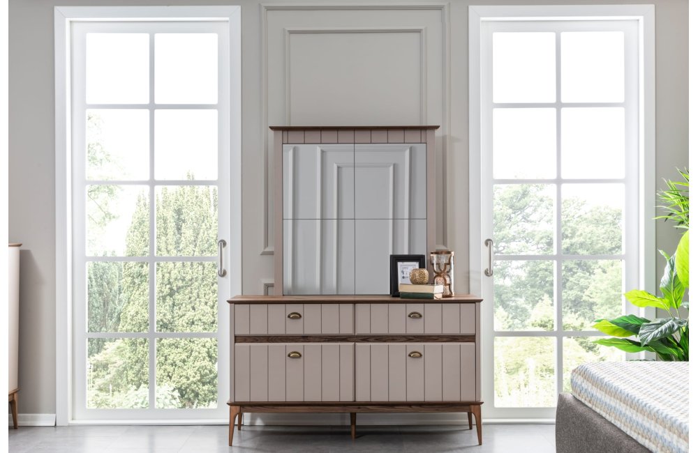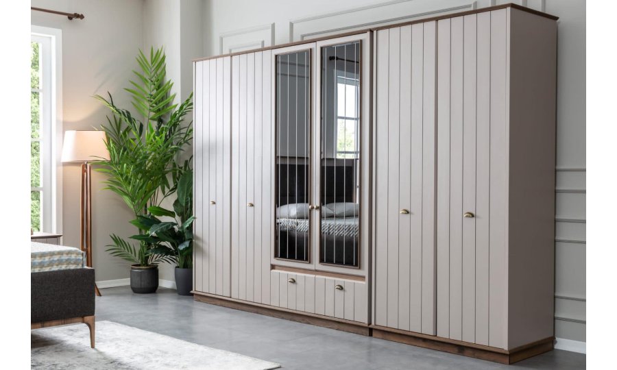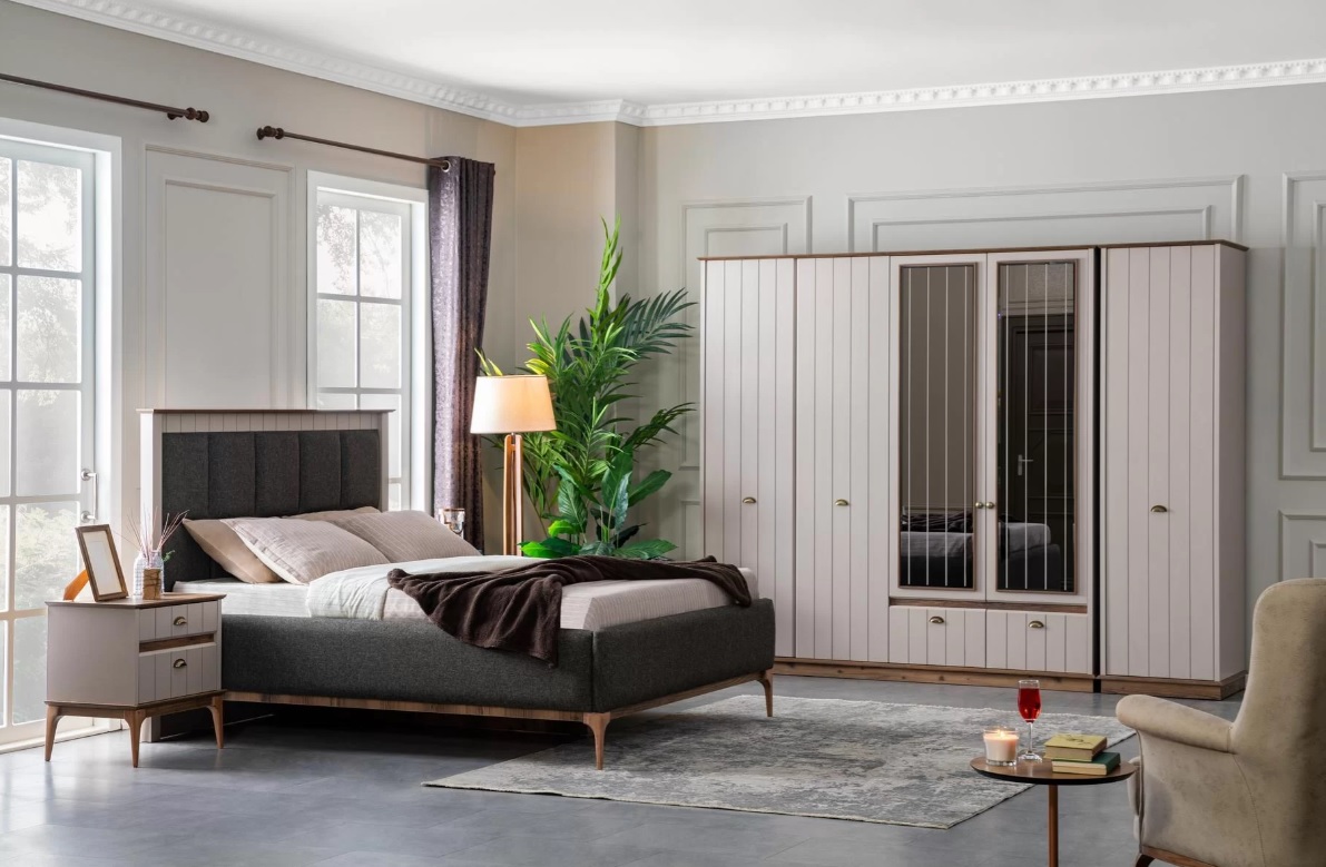 1ad.4 kapılı dolap,1ad.ikili dolap,1ad.karyola bazalı, 2ad.komodin,şifonyer ve aynasından oluşmaktadır.