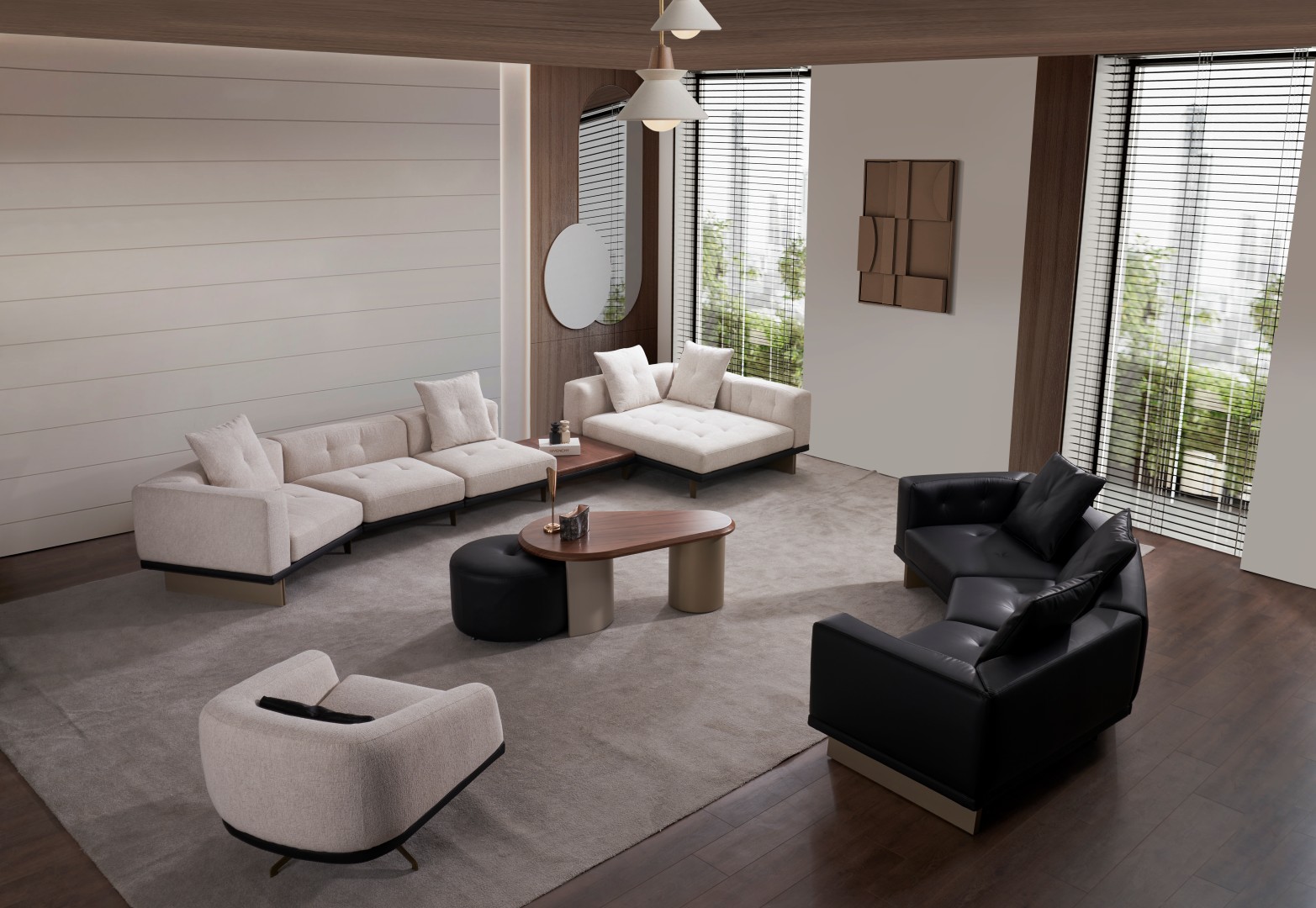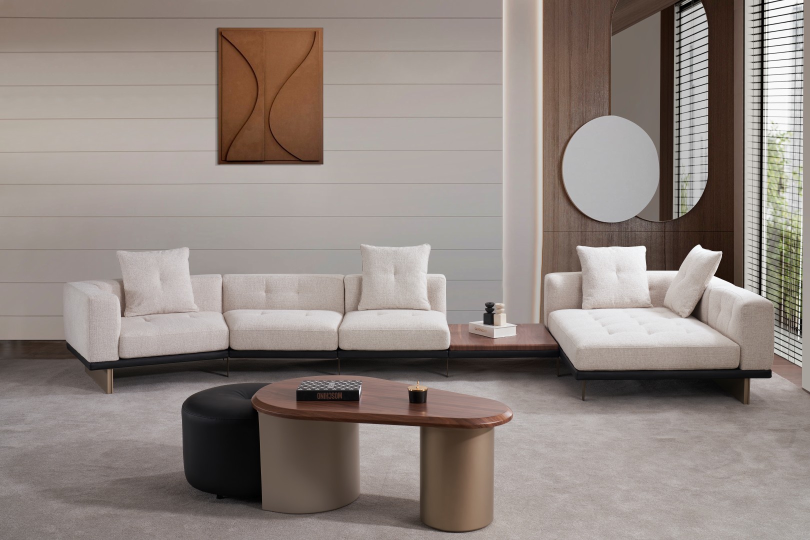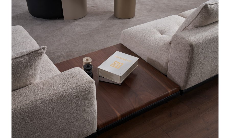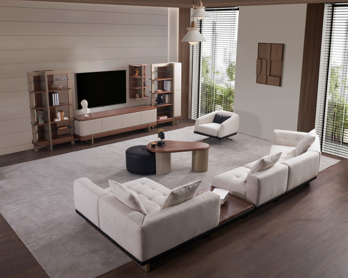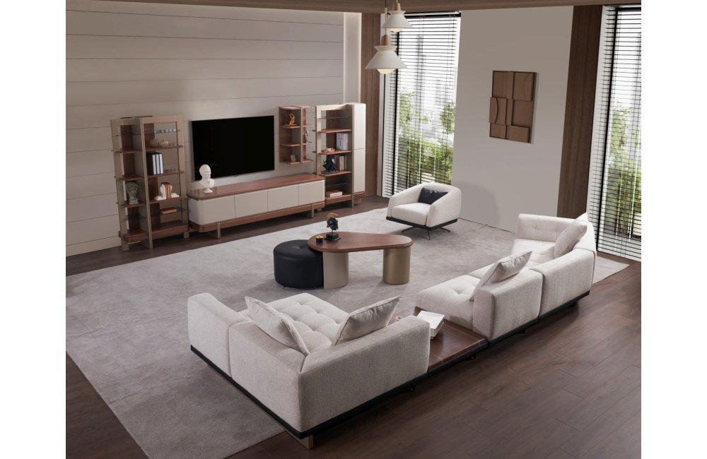 1 ad. açılı kollu modül, 1 ad. açılı orta modül, 1 ad. orta modül, 1 ad. relax modül ve 1 ad. ara sehpadan oluşmaktadır.