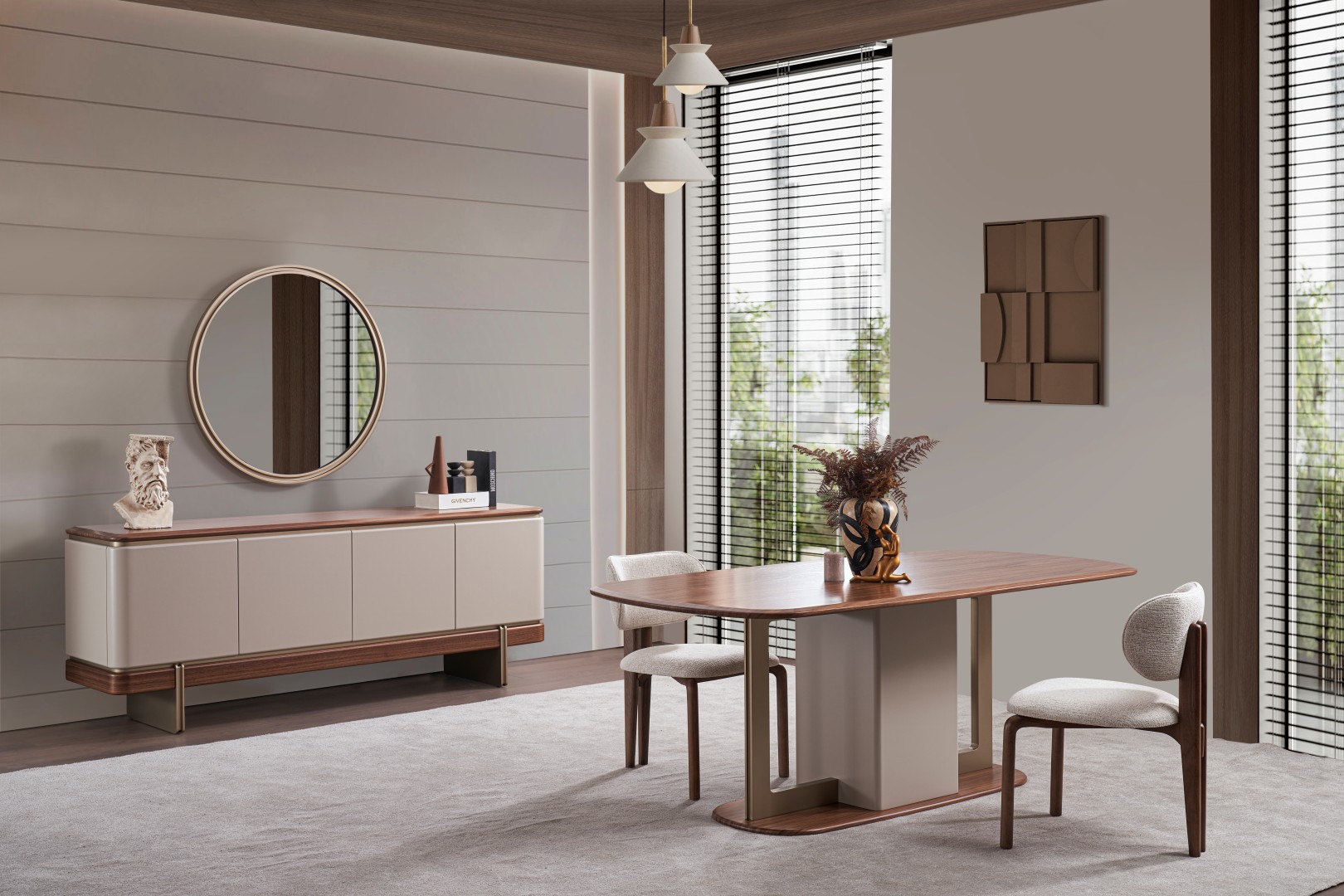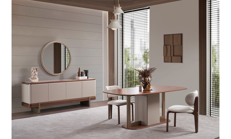 1 ad. konsol ve aynası, 1 ad. masa ve 6 ad. sandalyeden oluşmaktadır.