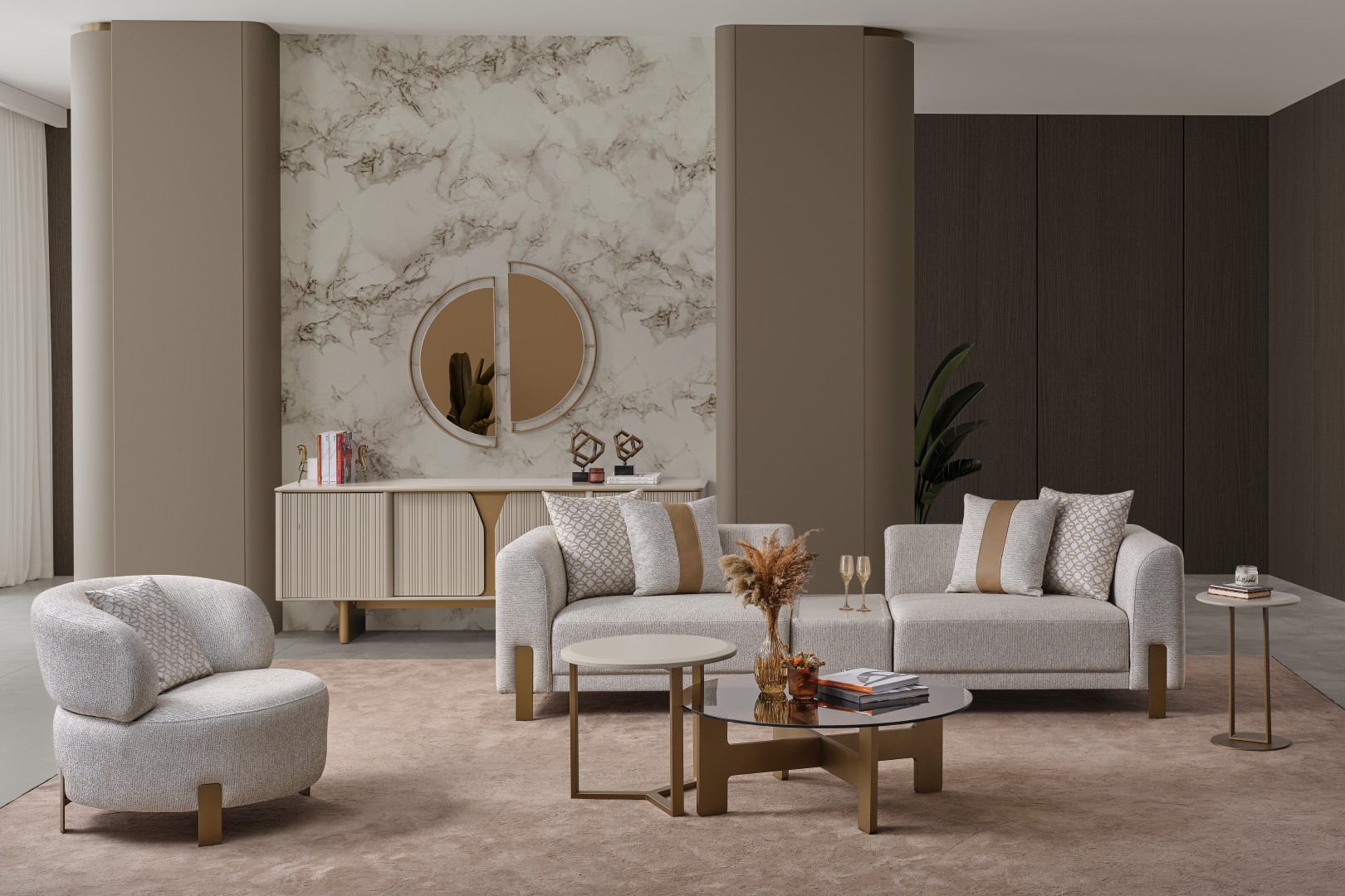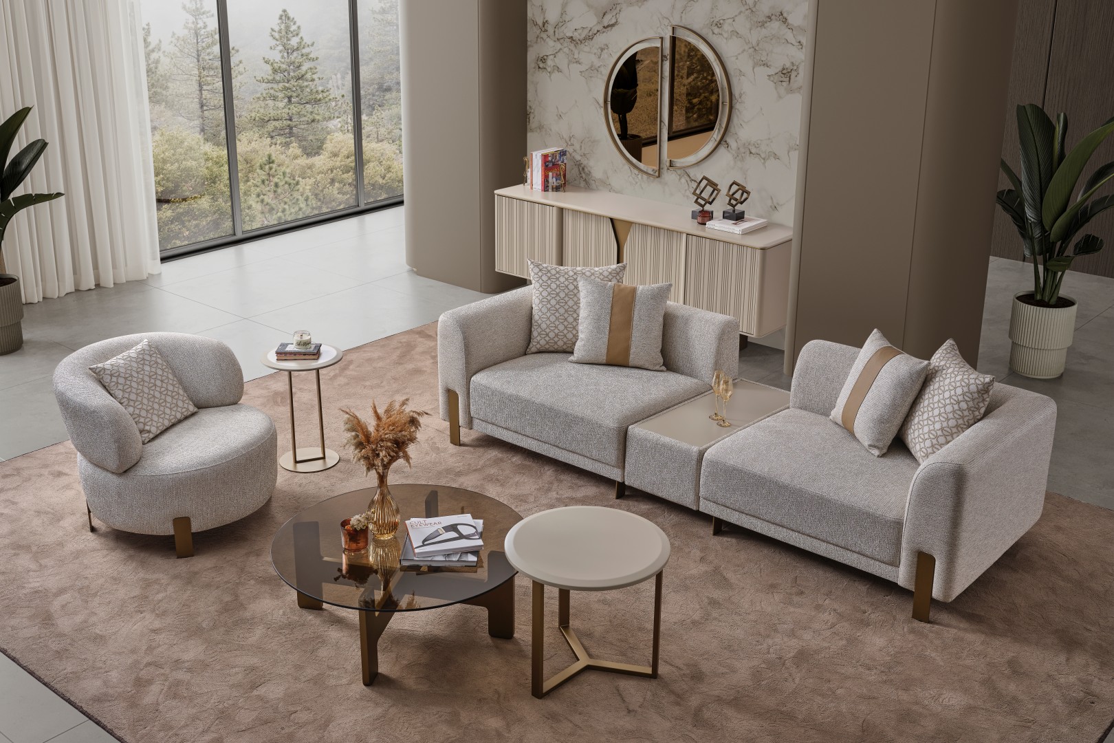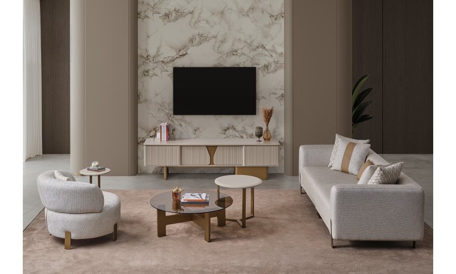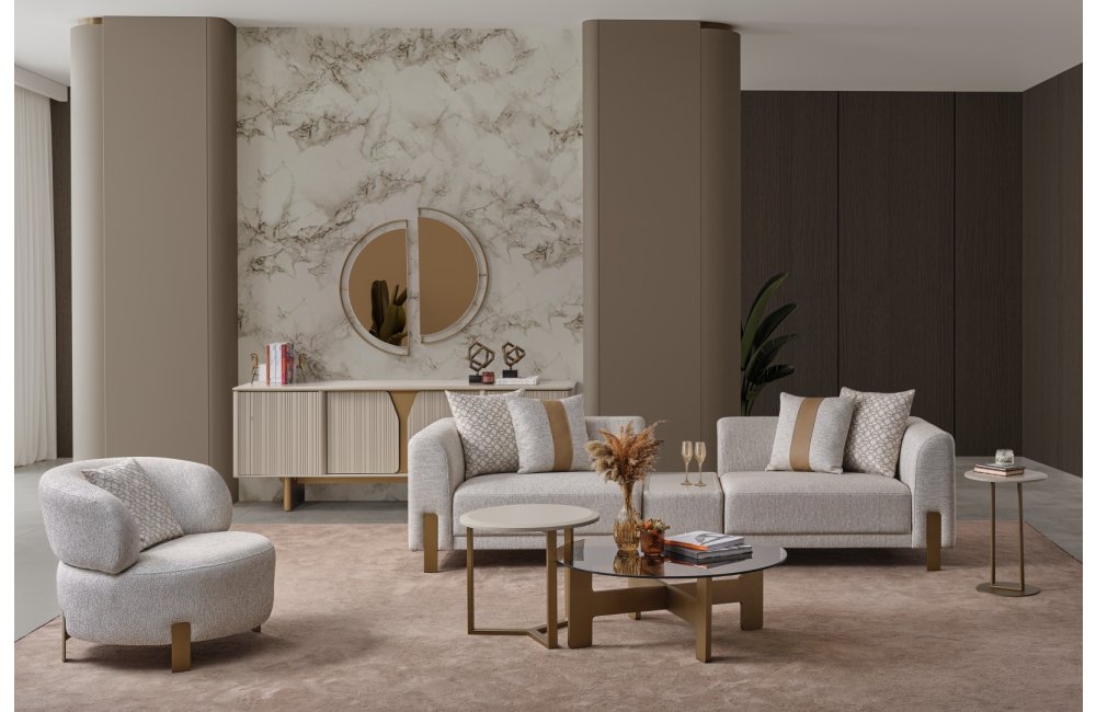 • İkonik Berjer Tasarımı: Takımın tamamlayıcısı olan yuvarlak hatlı berjer, sırtı tam kavrayan formuyla okuma köşeleriniz için vazgeçilmez bir parça adayıdır.