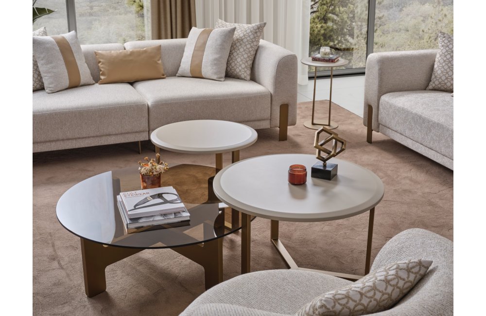 • Ayak Yapısı: Alt kısmında Hermes serisinin imzası olan heykelsi blok ayak tasarımı bulunur. Bronz kaplamalı bu geniş gövde, sehpaya sarsılmaz bir duruş ve lüks bir ağırlık katar.