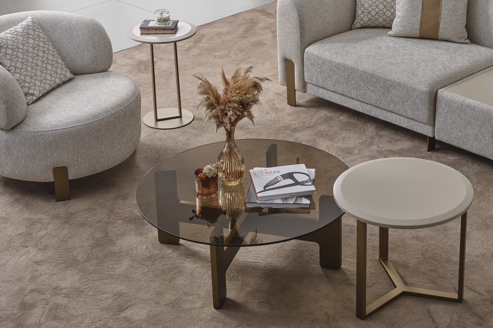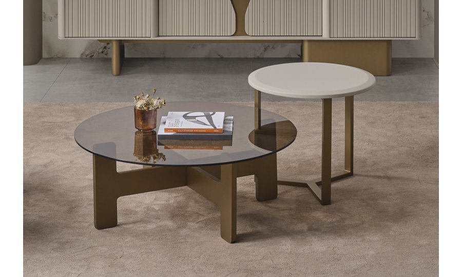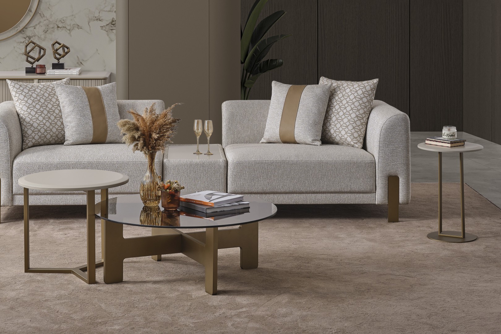 • Ayak Yapısı: Üçlü metal konstrüksiyon ayak yapısı, modern ve endüstriyel bir şıklık sunar. Bronz metalin ışıltısını en belirgin yansıtan modüldür.