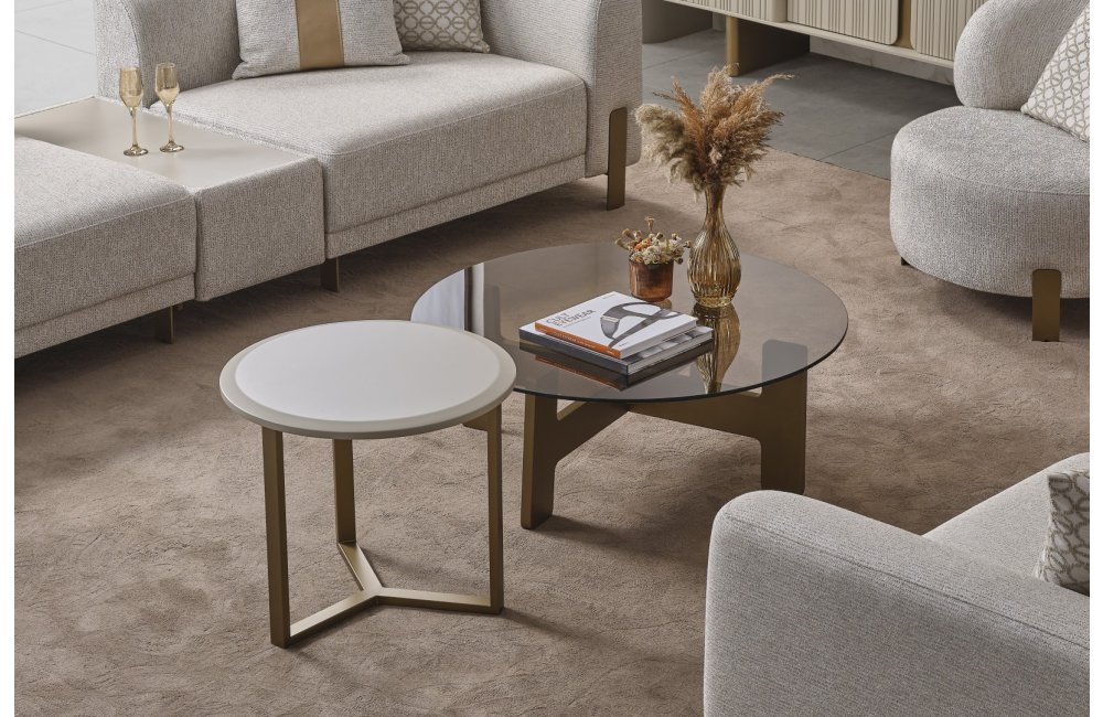 • Malzeme: Büyük boy sehpa ile aynı vizon tonunda ve mat dokudadır.
