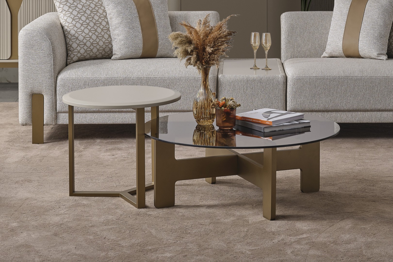 • Çok Yönlü Kullanım: İster bir arada görkemli bir orta sehpa olarak, ister ayrı ayrı yan sehpa olarak kullanarak dekorasyonunuzda özgürlüğün tadını çıkarın.