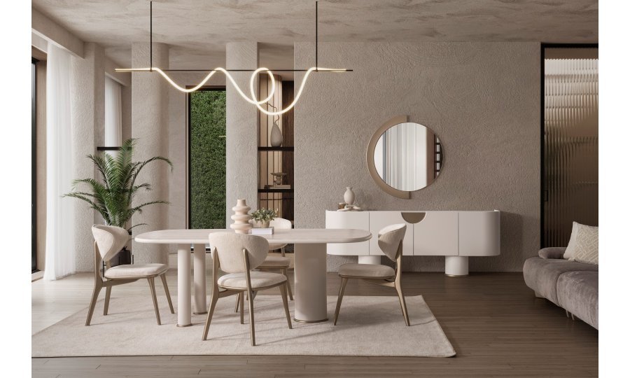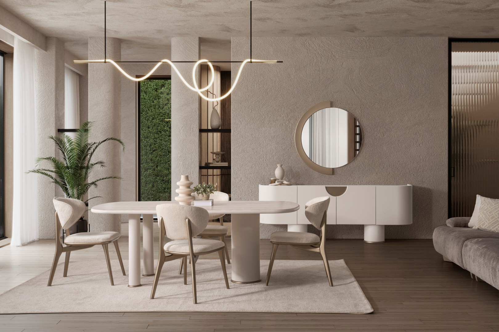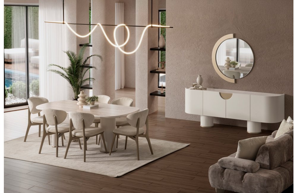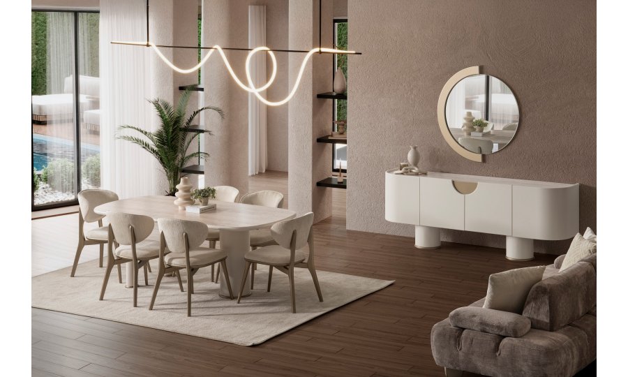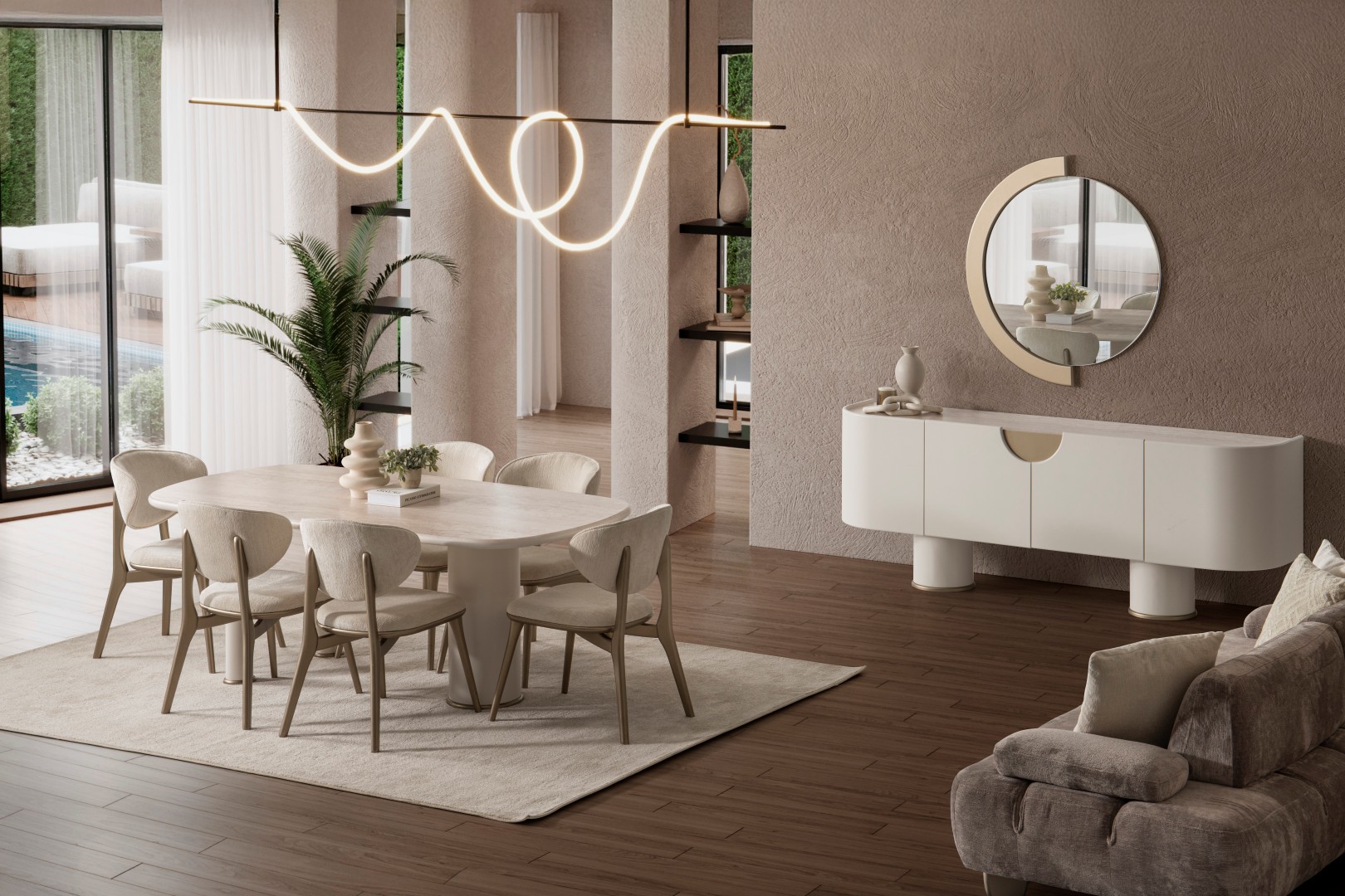 1 ad. konsol ve aynası, 1 ad. masa ve 6 ad. sandalyeden oluşmaktadır.