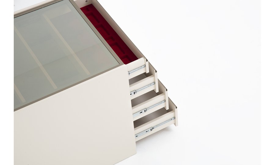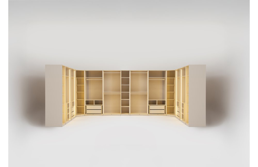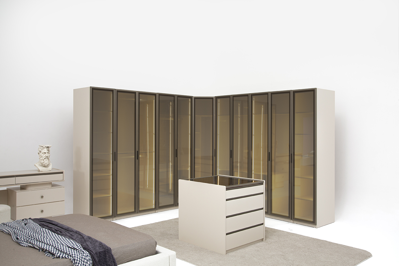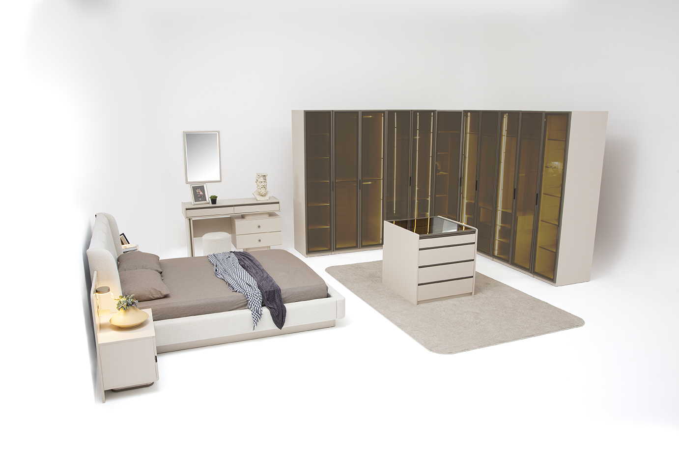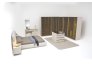 2ad. 2 ahşap kapaklı dolap, 1ad. 2 cam kapaklı dolap, 1ad. köşe cam kapaklı dolaptan oluşmaktadır. 2 kapaklı ayna dolap, köşe ahşap kapaklı dolap ve tek kapaklı ahşap dolap opsiyonel satılmaktadır.