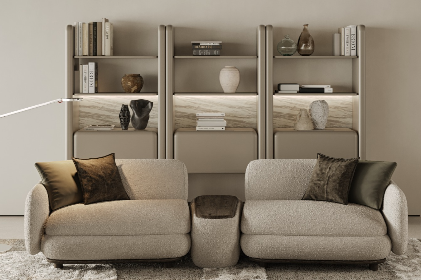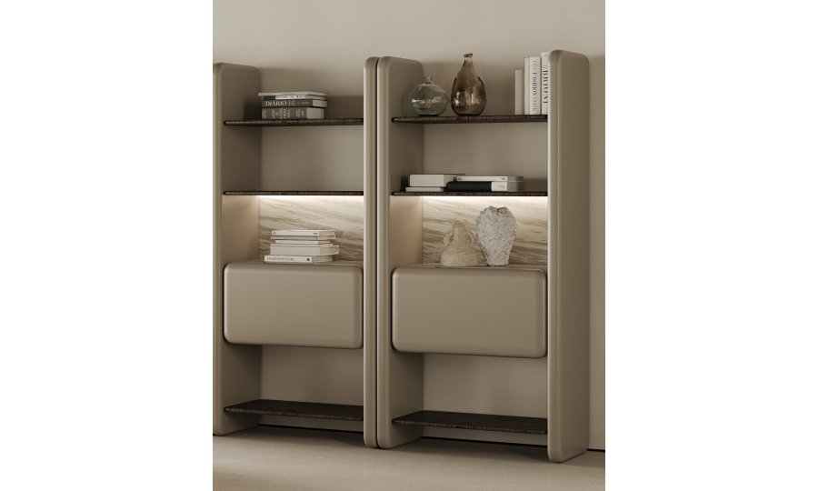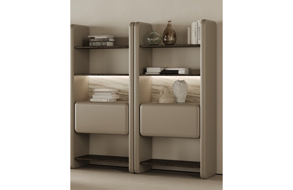 • Dinamik Modüler Yapı: Tekli modüller halinde sunulan tasarımı sayesinde, mekanın genişliğine göre yan yana eklenerek kişiselleştirilmiş bir kütüphane oluşturma imkanı sağlar.