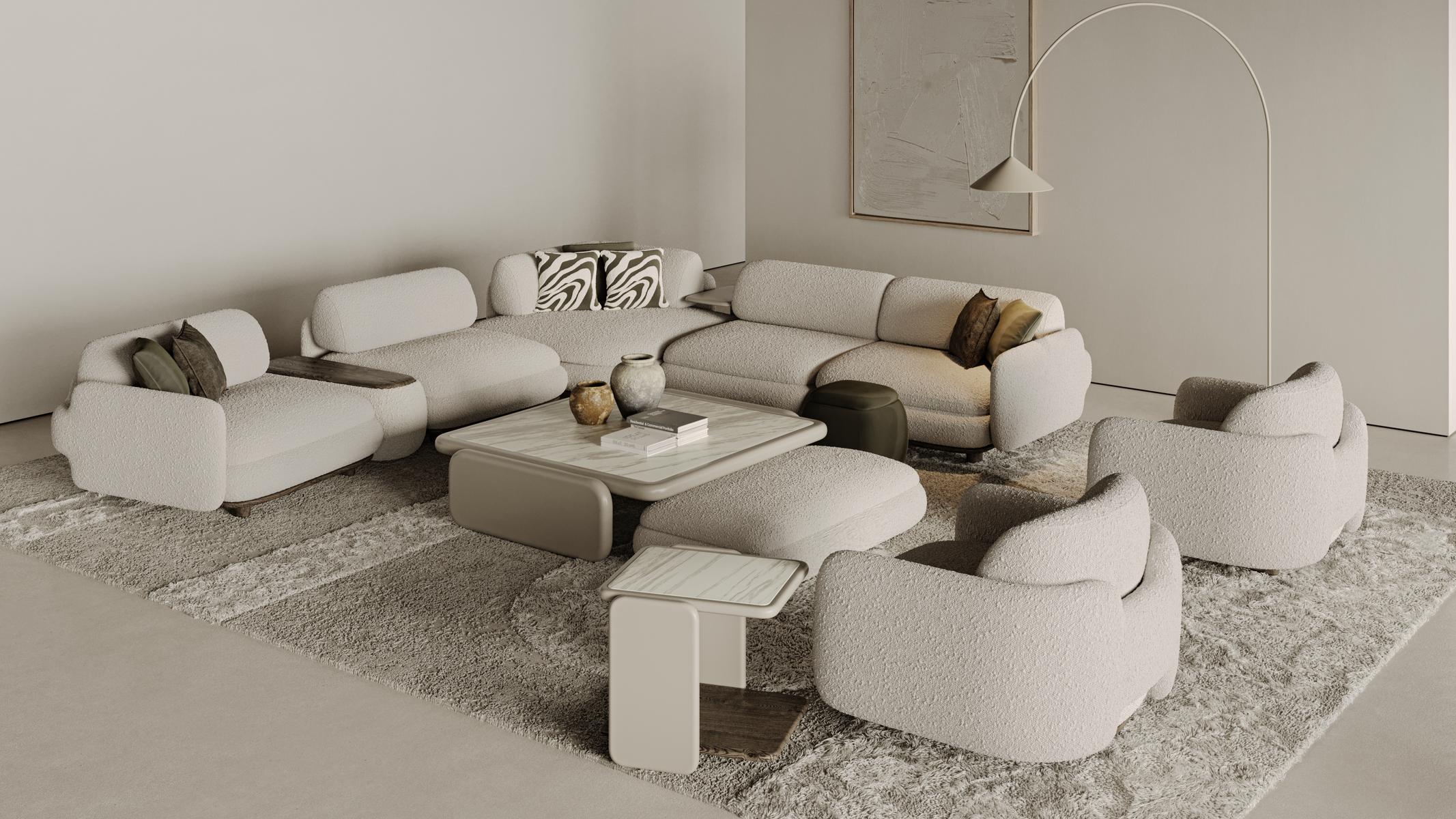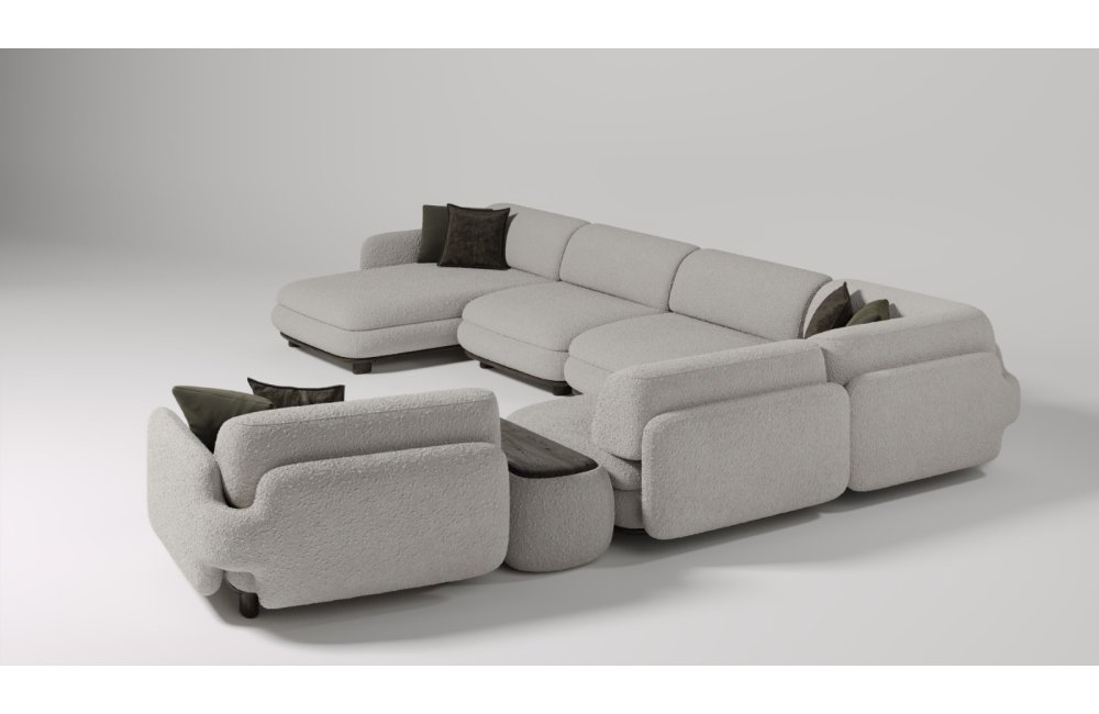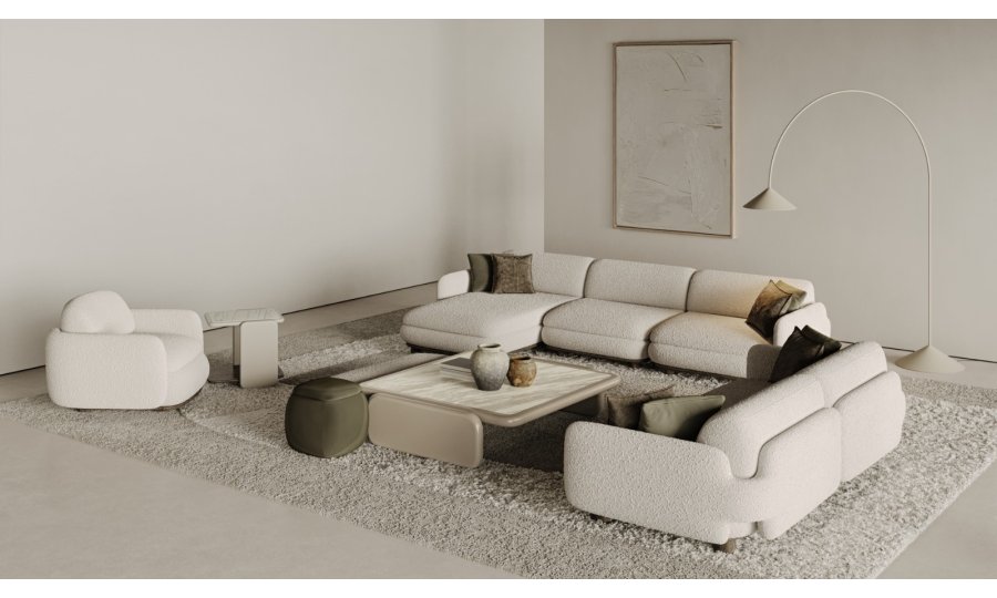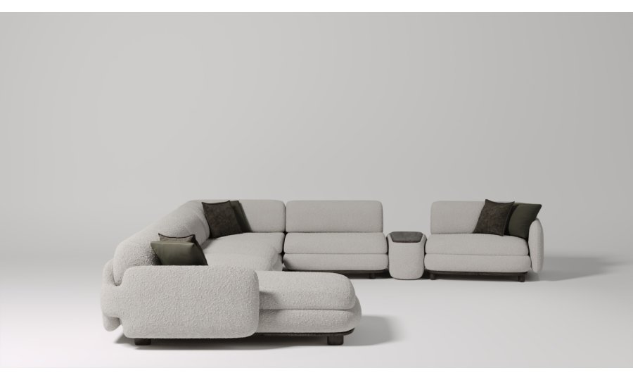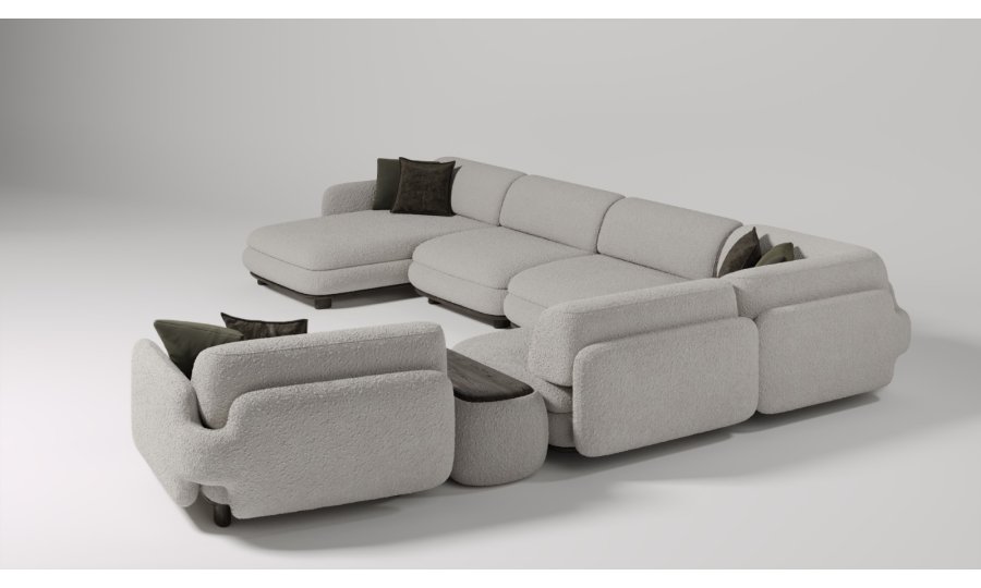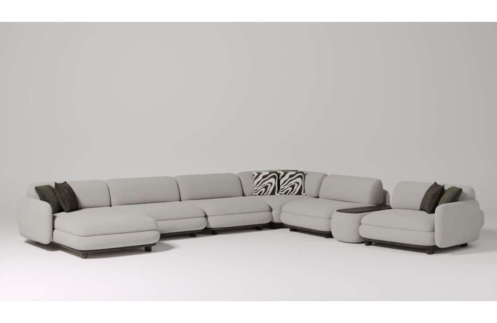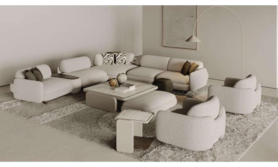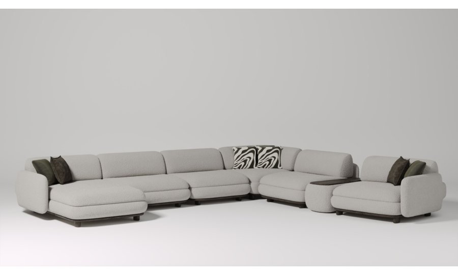 1 ad. relax modül, 2 ad. 95'lik kolsuz modül, 1 ad. 105'lik köşe modül ve 1 ad. 95'lik kolsuz modül, 1 ad. ara sehpa modül ve 1 ad. 130'luk kollu modülden oluşmaktadır.