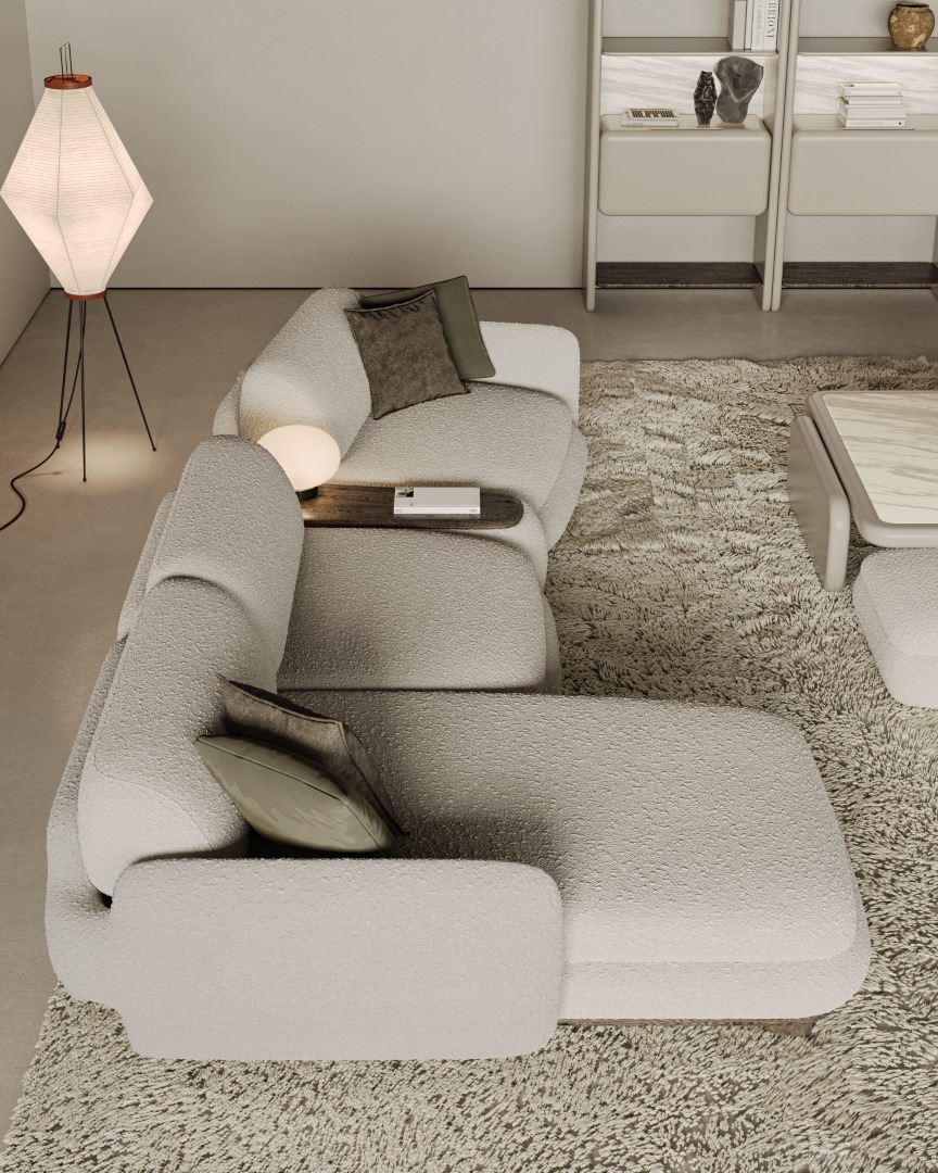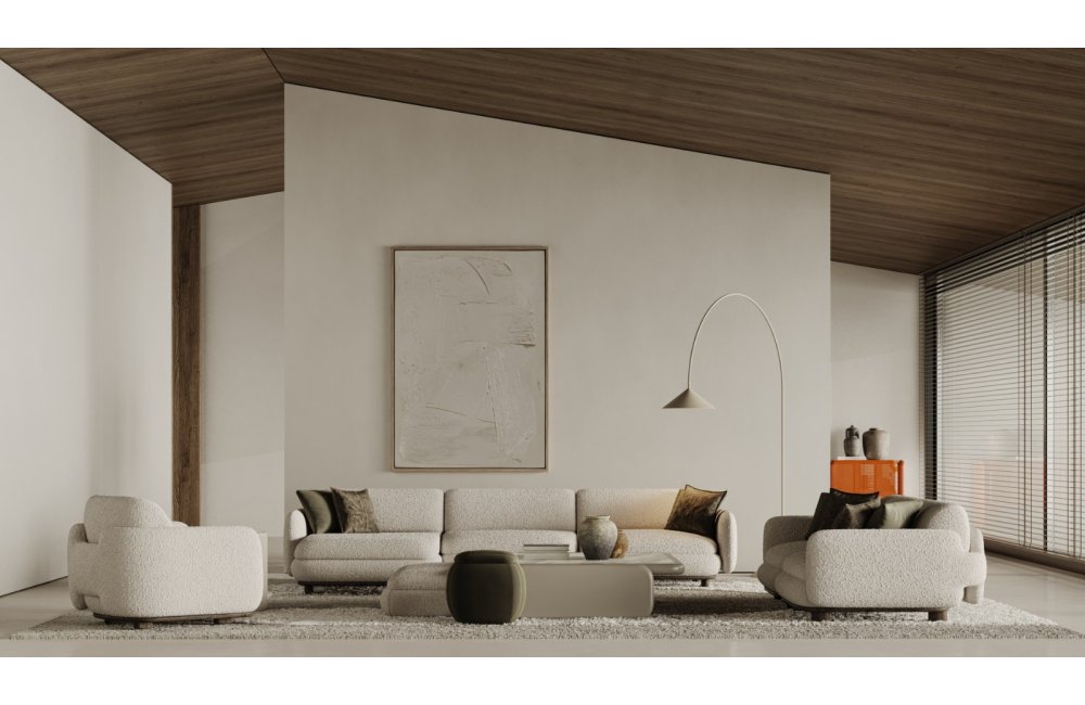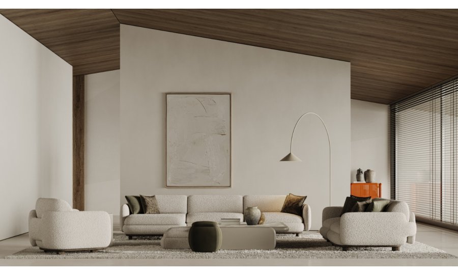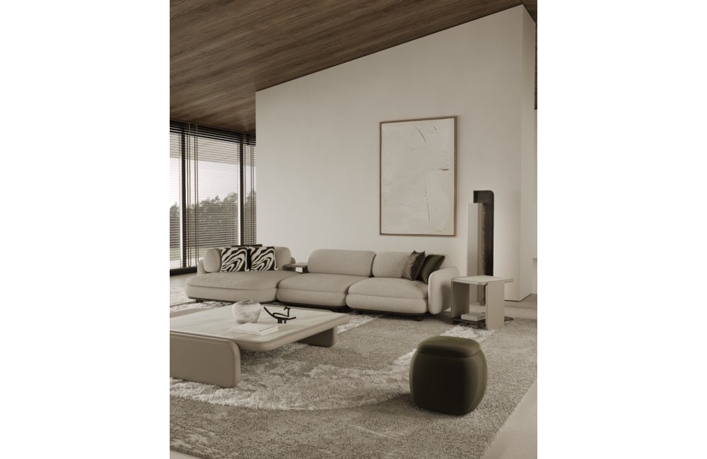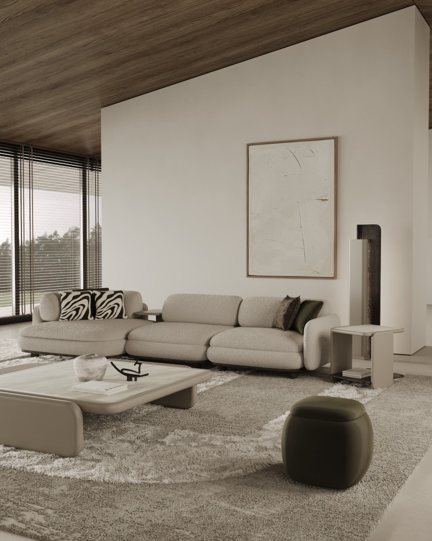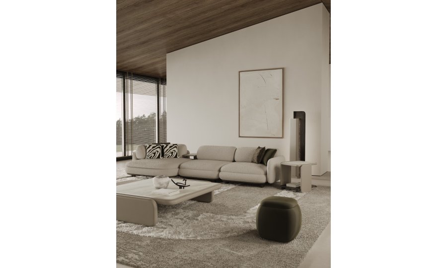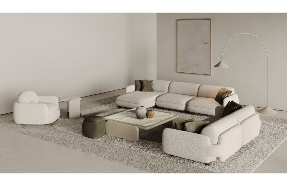 1 ad. relax modül, 2 ad. 95'lik kolsuz modül, 1 ad. 105'lik köşe modül ve 1 ad. 95'lik kolsuz modül, 1 ad. ara sehpa modül ve 1 ad. 130'luk kollu modülden oluşmaktadır.