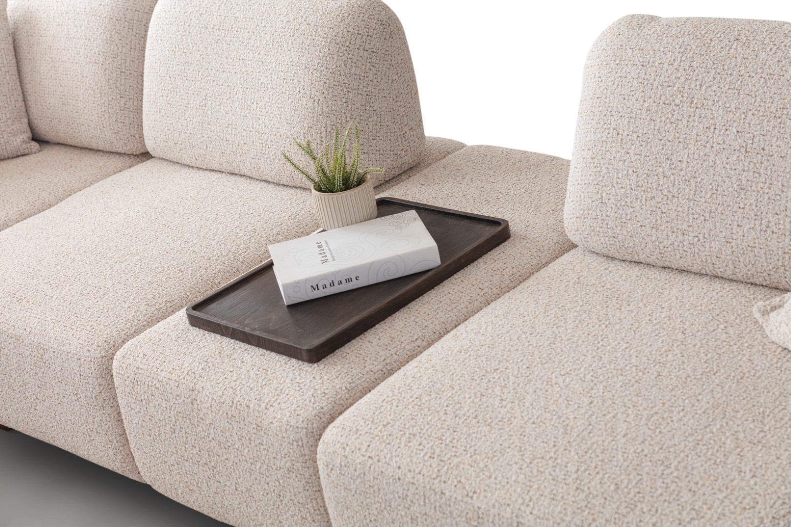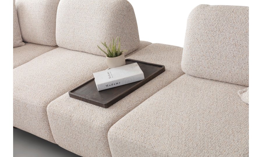 1ad. Sağ kollu modül, 1ad. 90cm ara modül, 1ad. köşe modül ve 1ad. sol kollu modülden oluşmaktadır. 70cm ara modül, 50cm sehpa puf ve berjer opsiyonel satılmaktadır.
