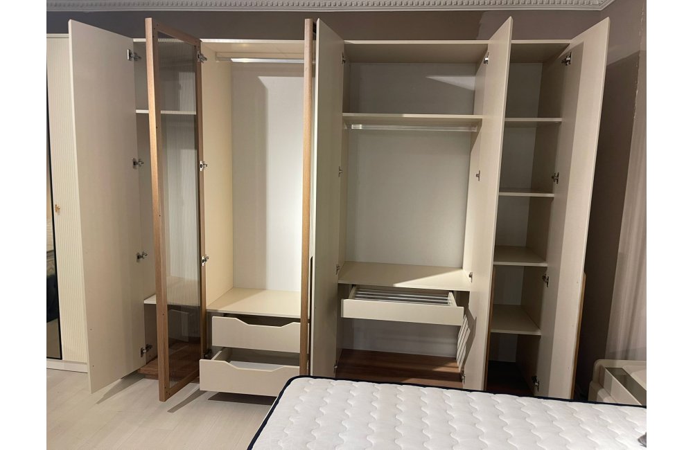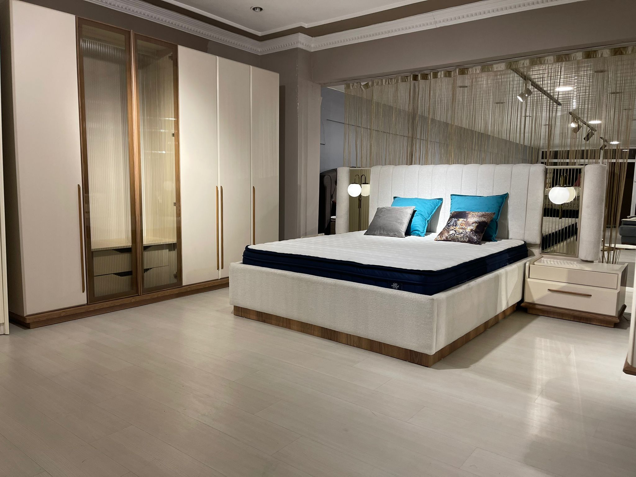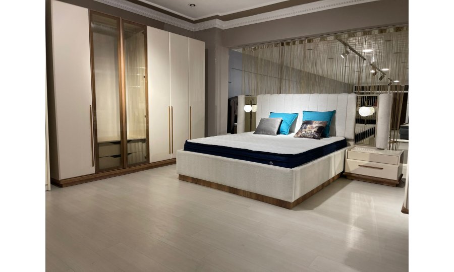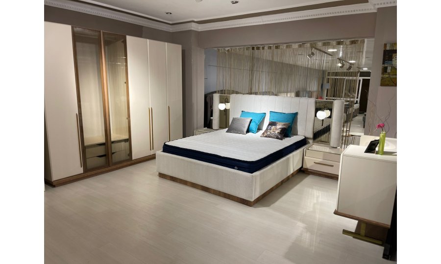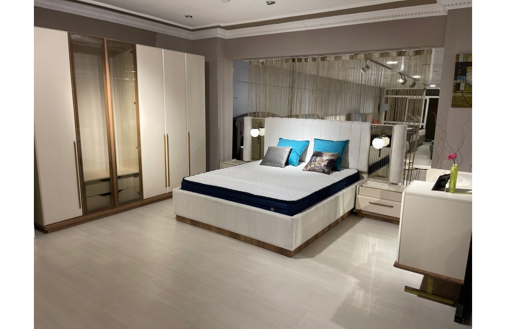 1ad. dolap, 1ad. bazalı karyola, 1ad. şifonyer (aynalı), 2ad. komodin ve komopin panolarından oluşmaktadır.