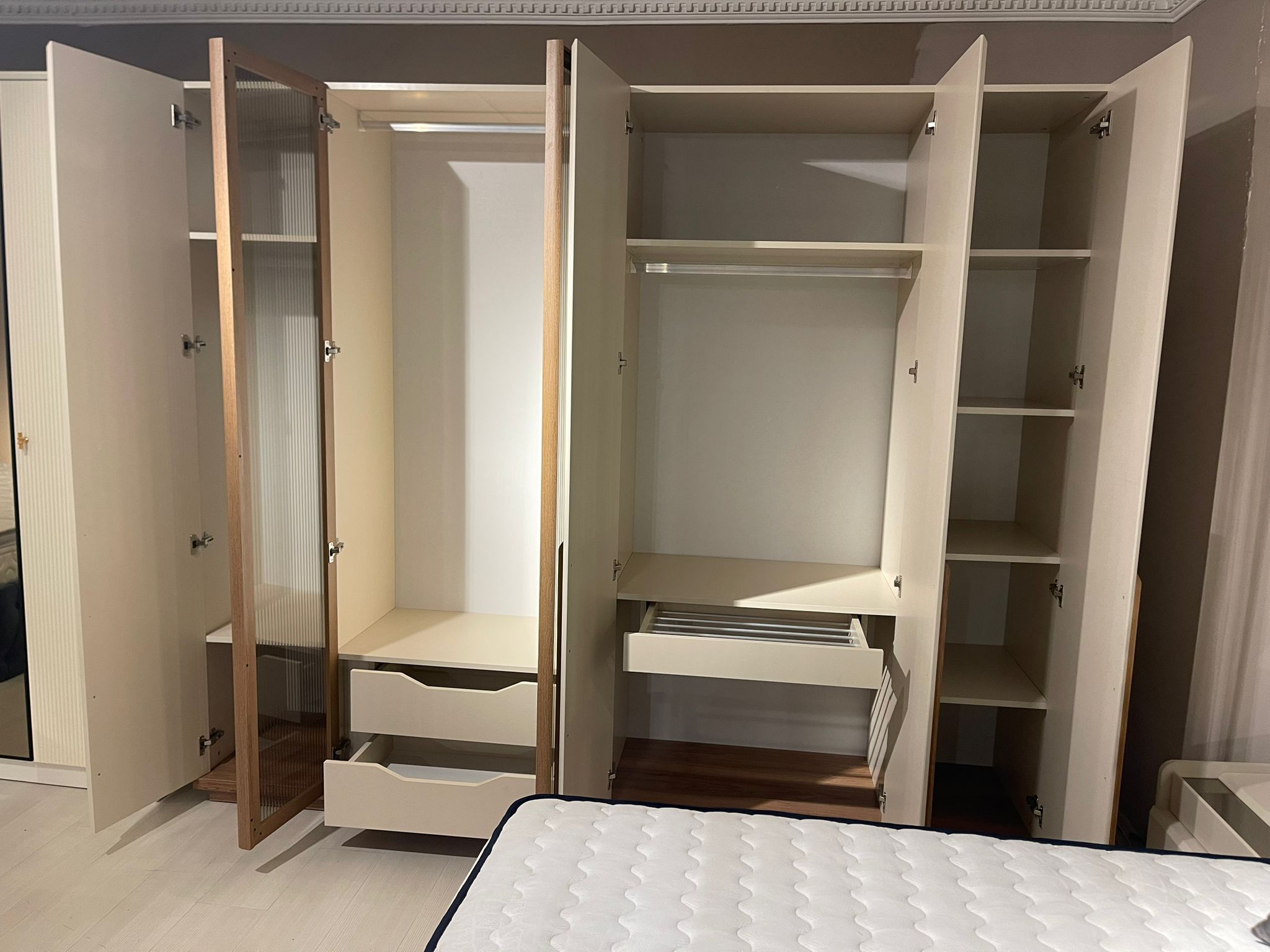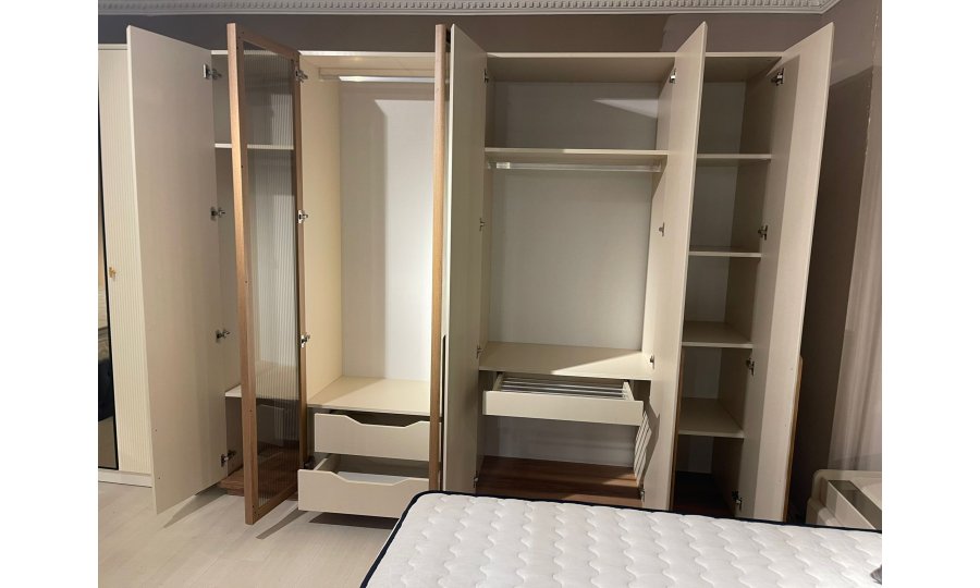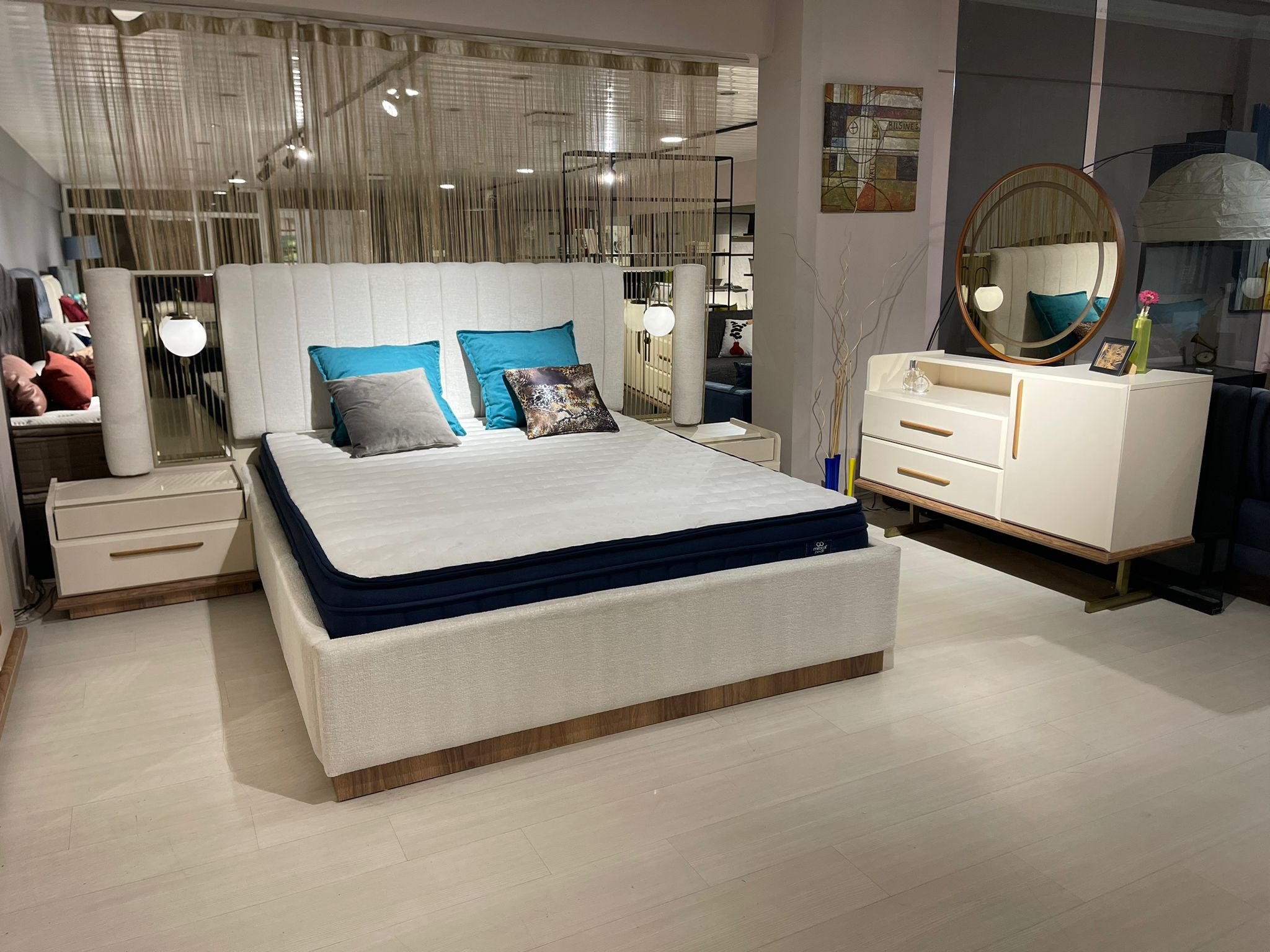 1ad. dolap, 1ad. bazalı karyola, 1ad. şifonyer (aynalı), 2ad. komodin ve komopin panolarından oluşmaktadır.